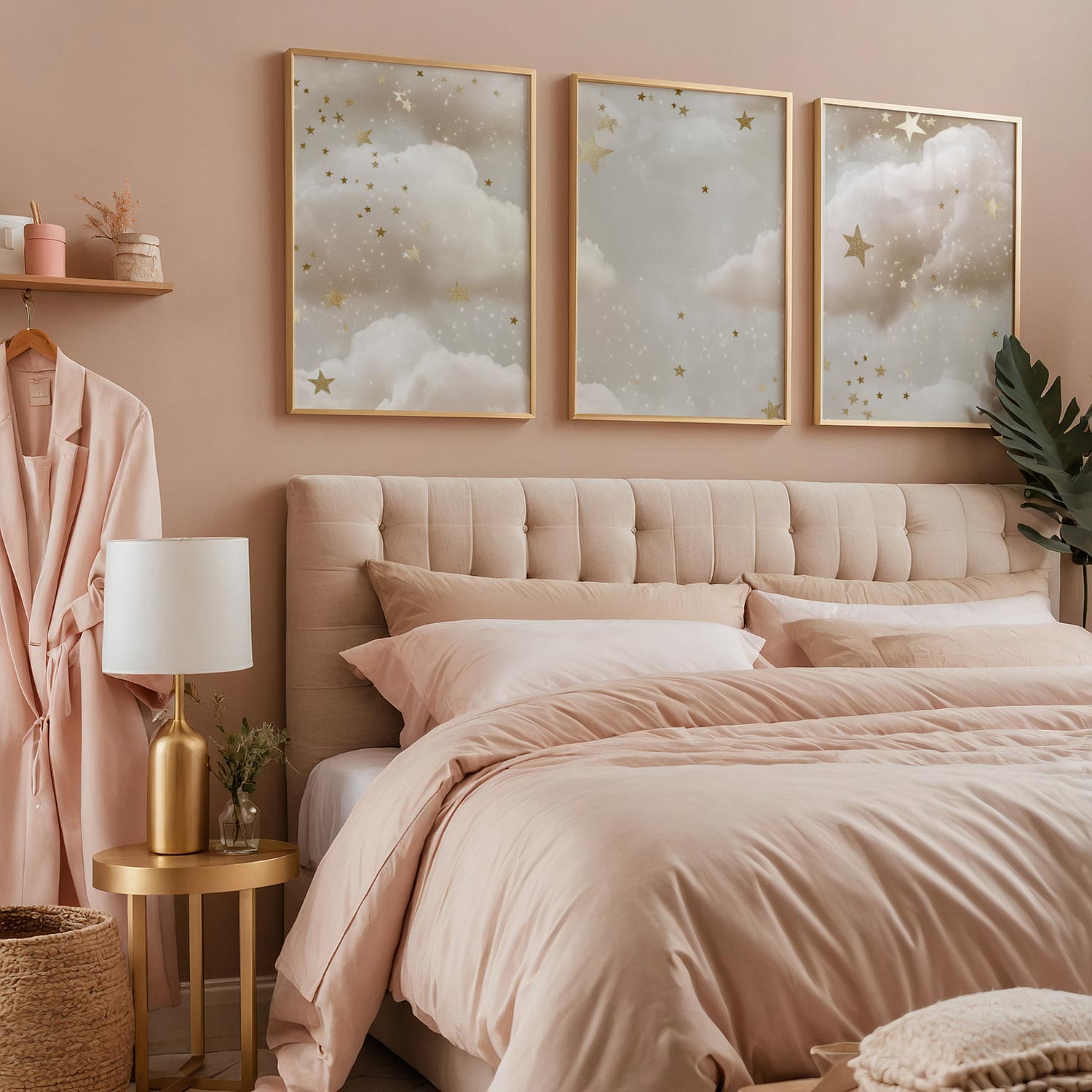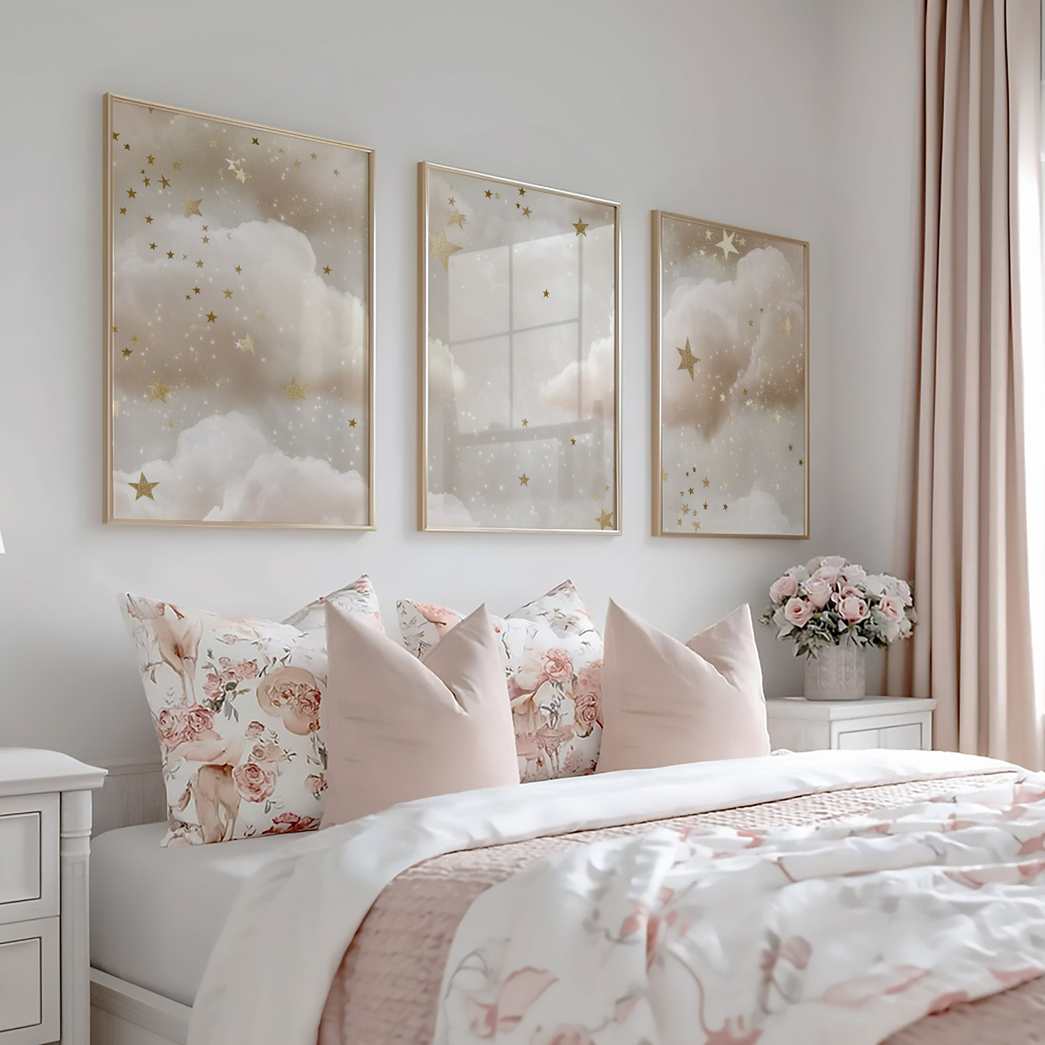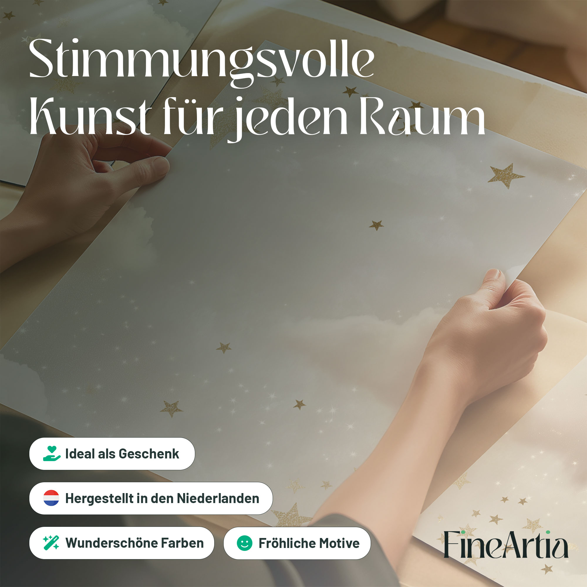 Magische Sterrenhemel: Dromerige Gouden Sterren en Wolken