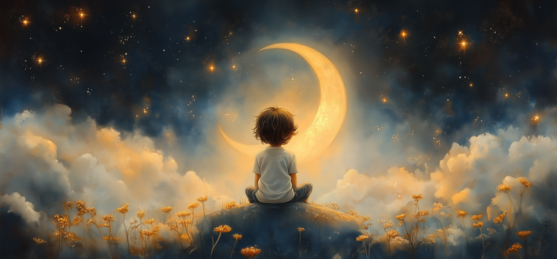 Terug naar collectie Posters Magische Sterrennacht met Dromende Jongen