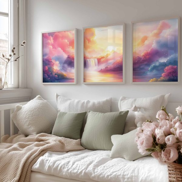 Magische Waterval in Dromerige Roze Gloed