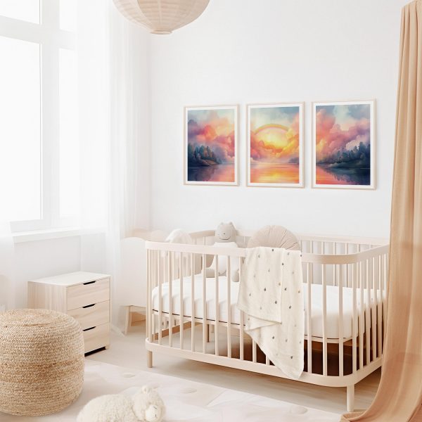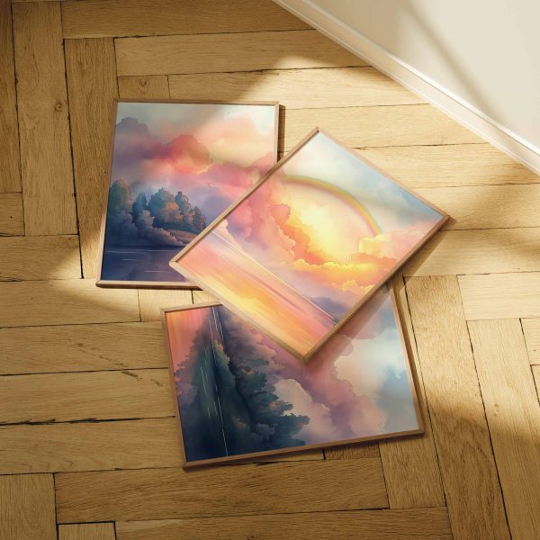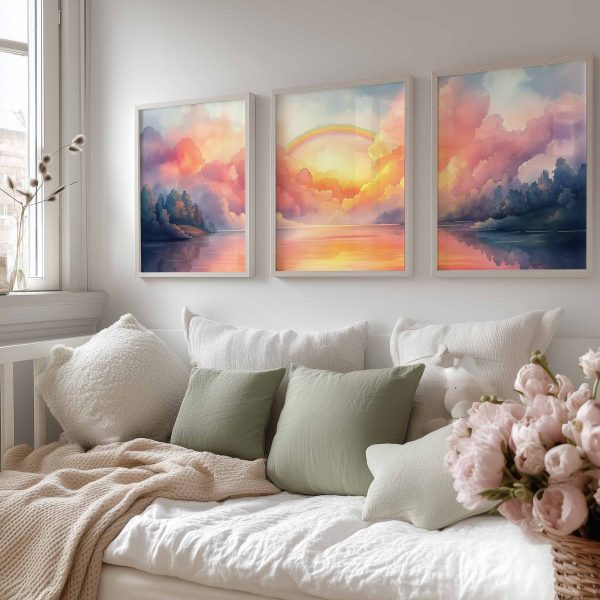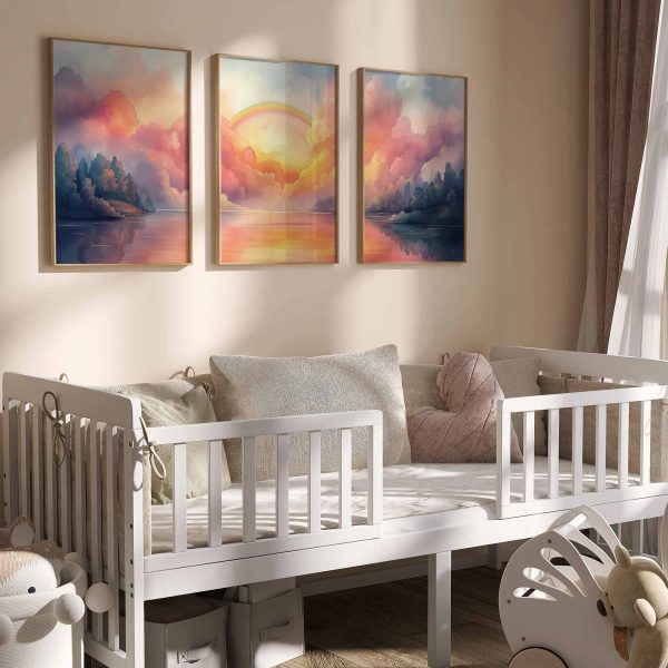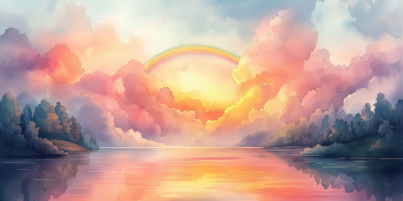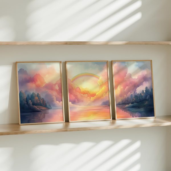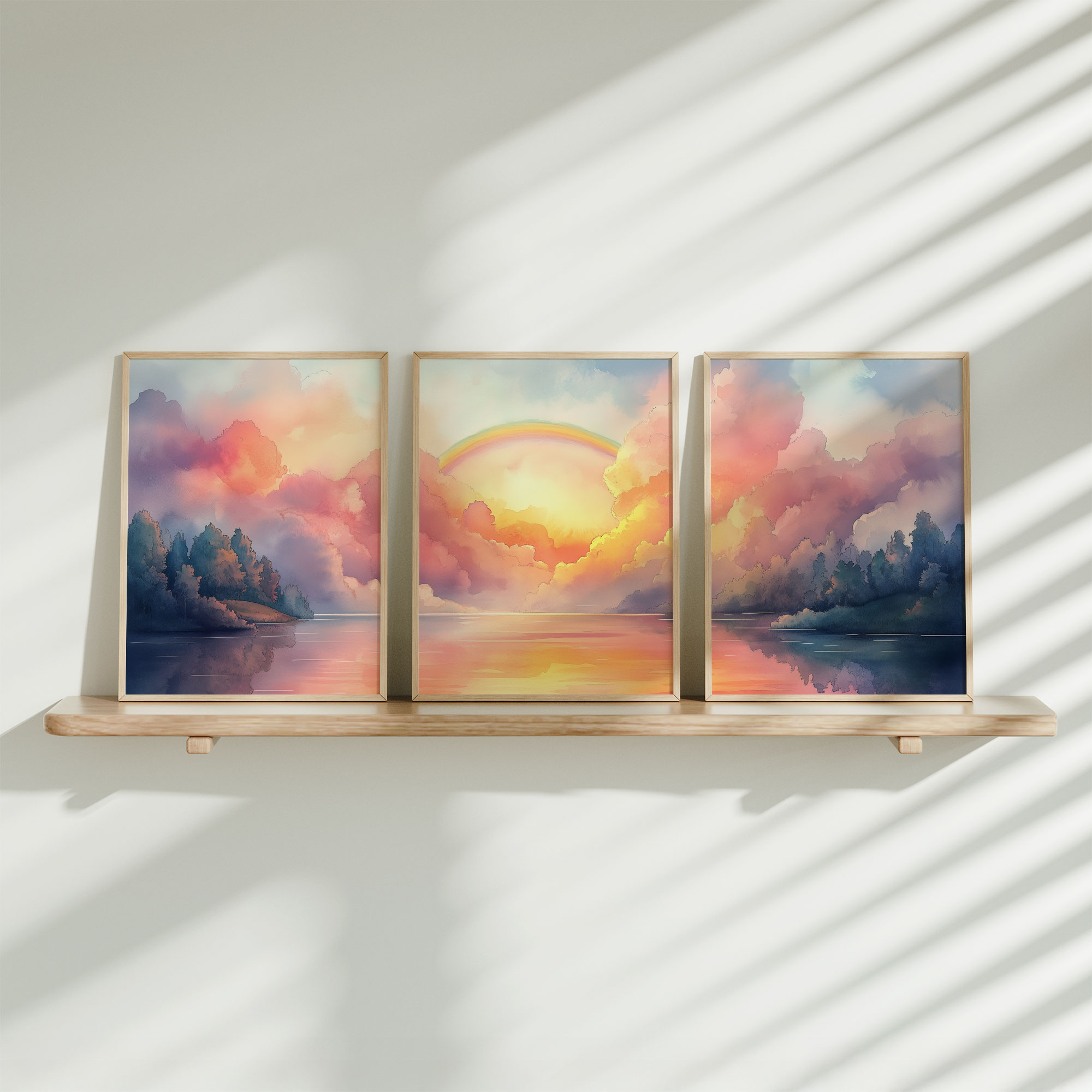 Terug naar collectie Posters Magische Zonsondergang met Regenboog en Meer