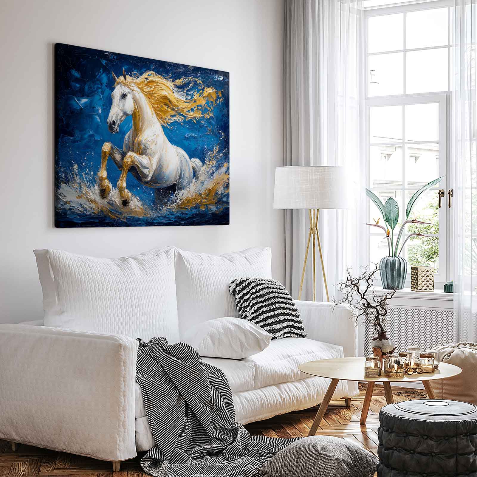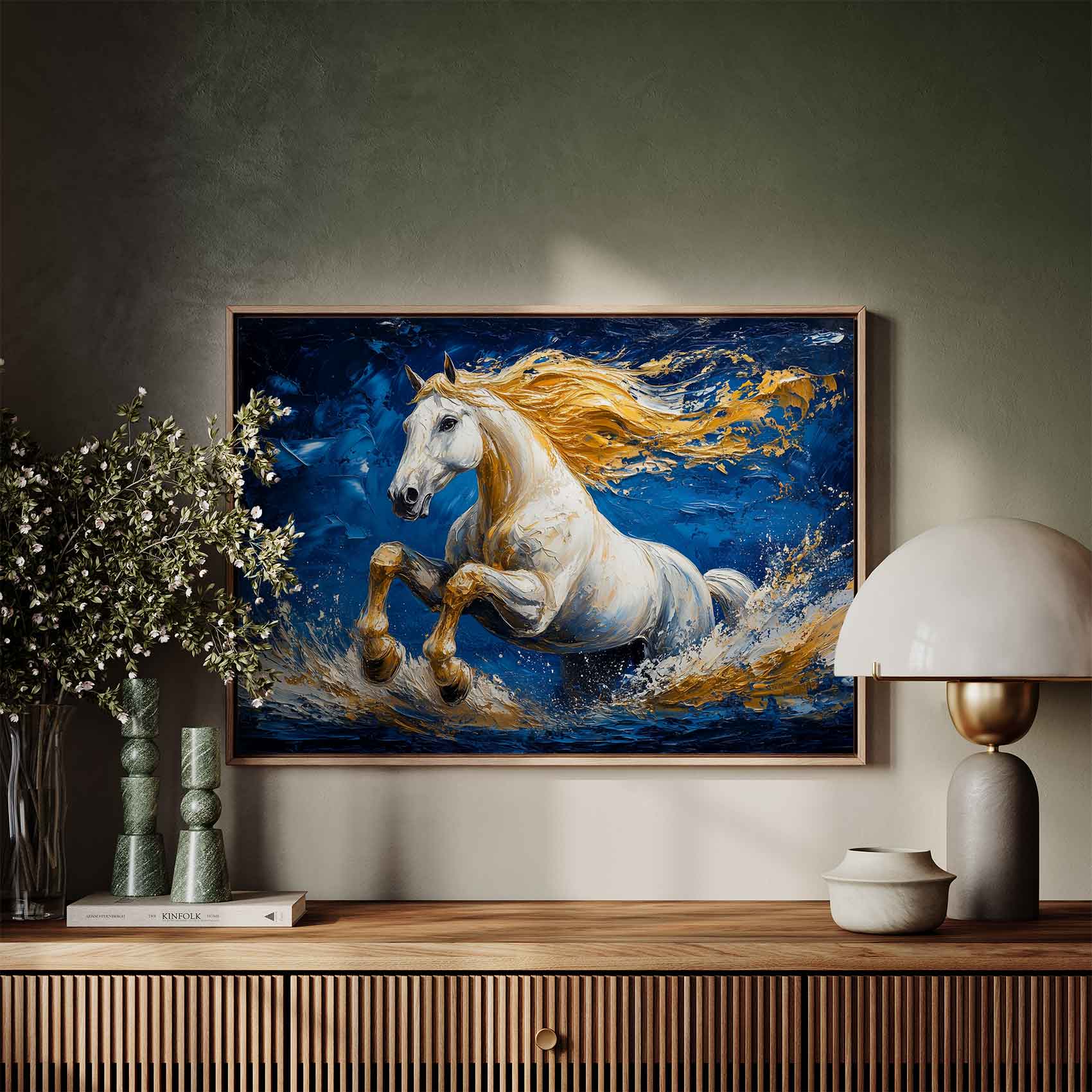 Terug naar collectie Canvas Majestueus Gouden Galopperend Paard