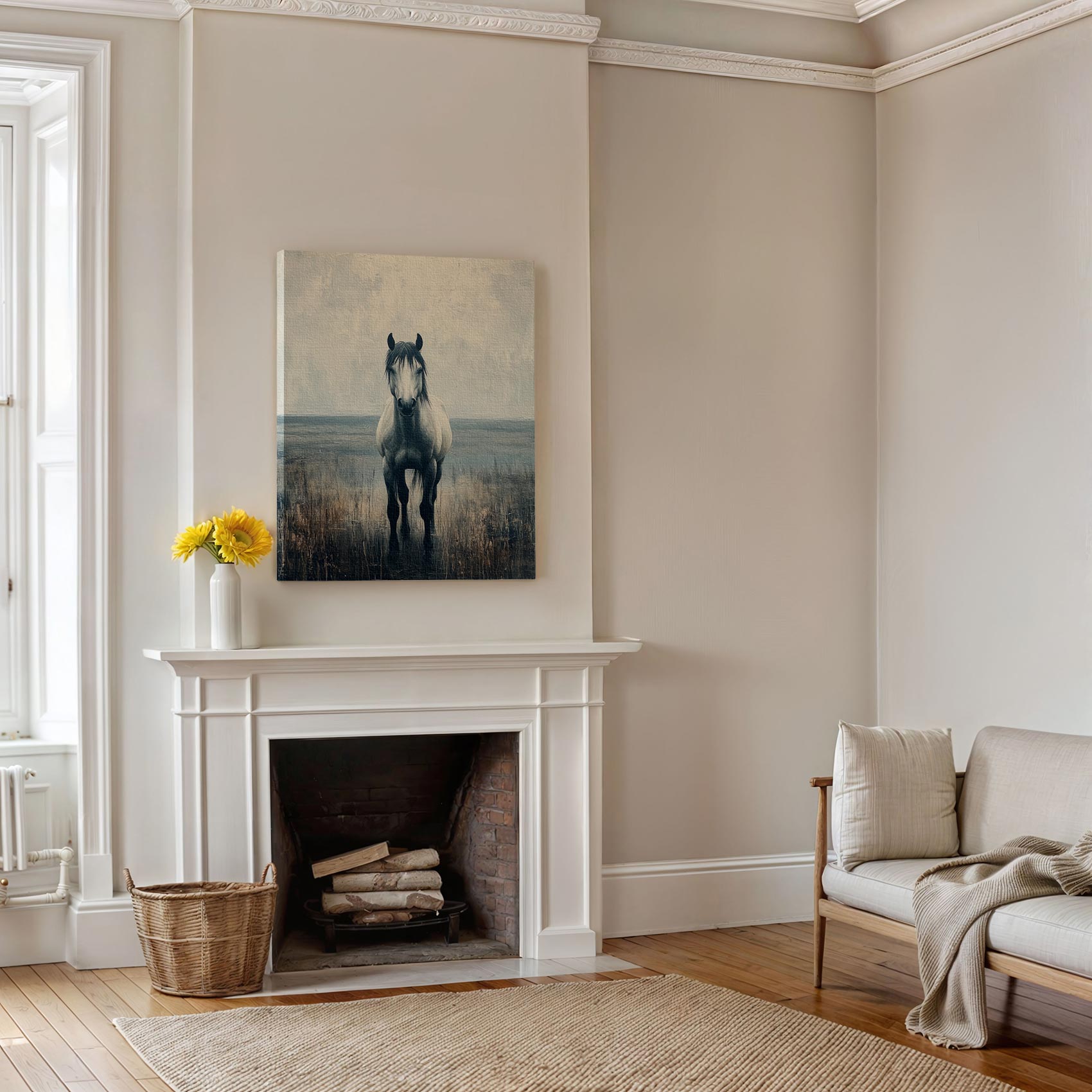 Majestueus wit paard in veld