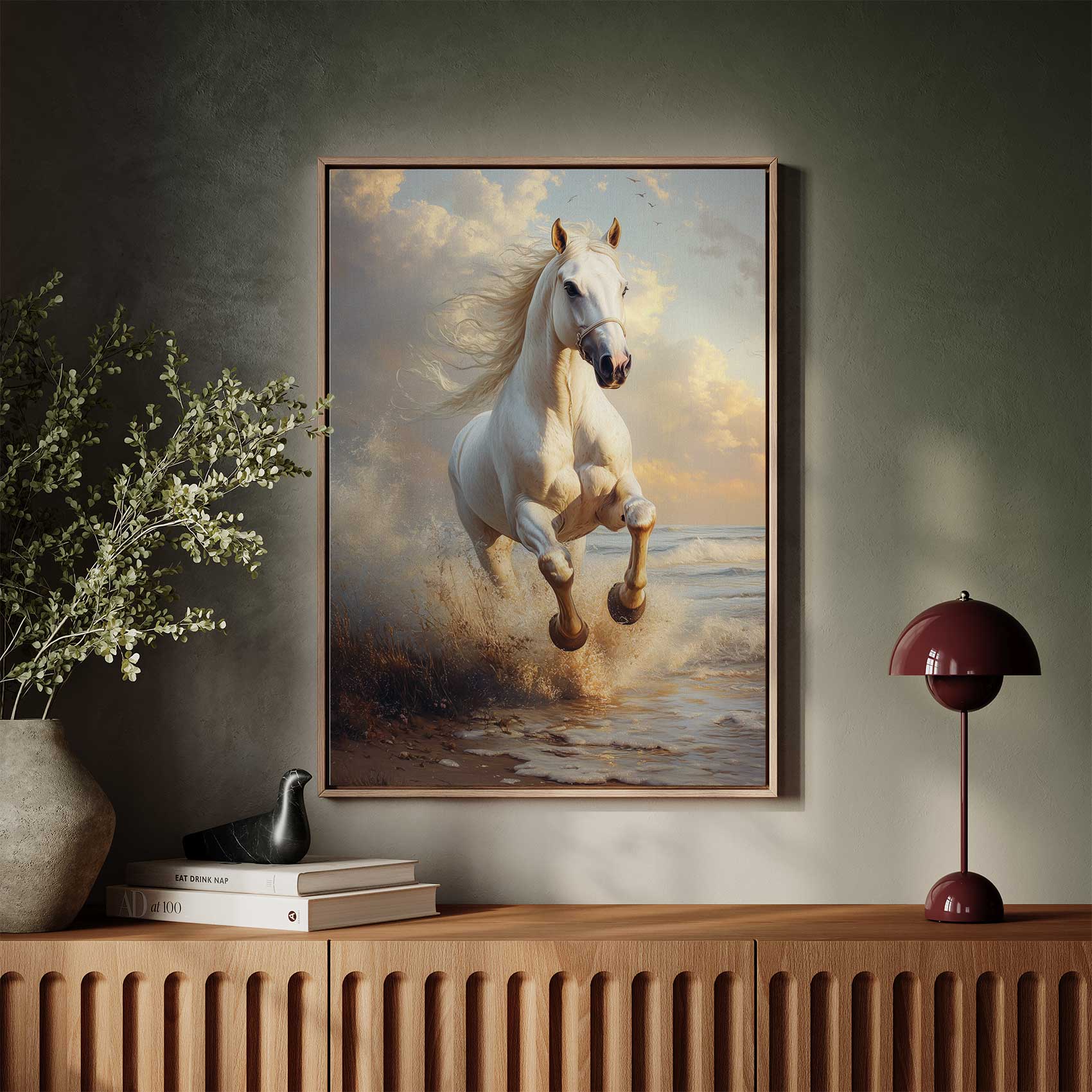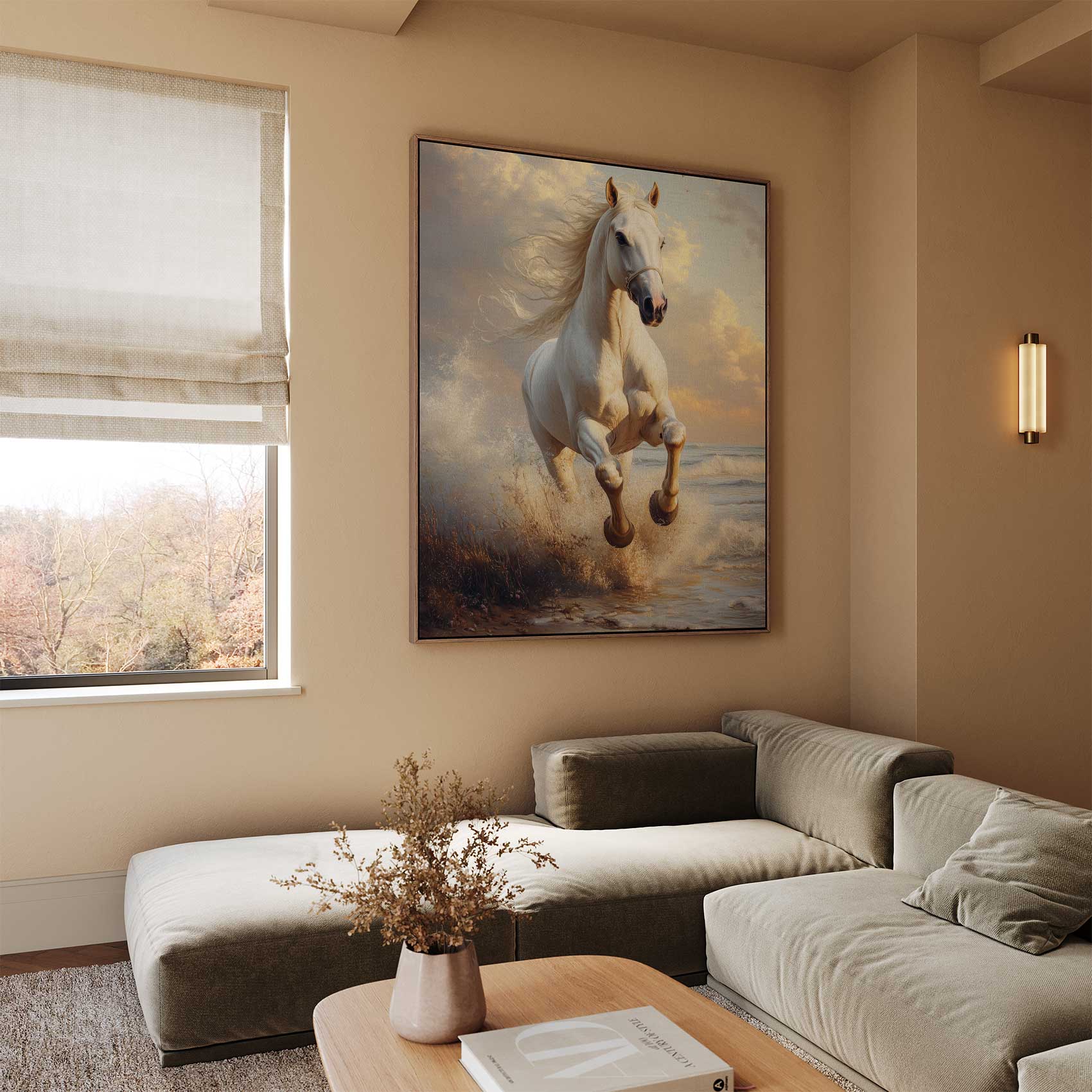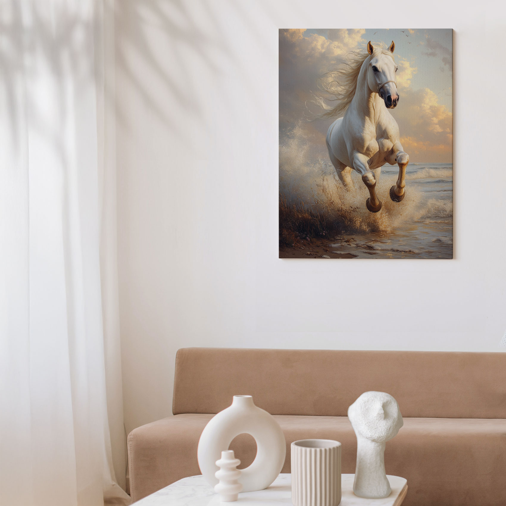 Majestueus wit strandpaard
