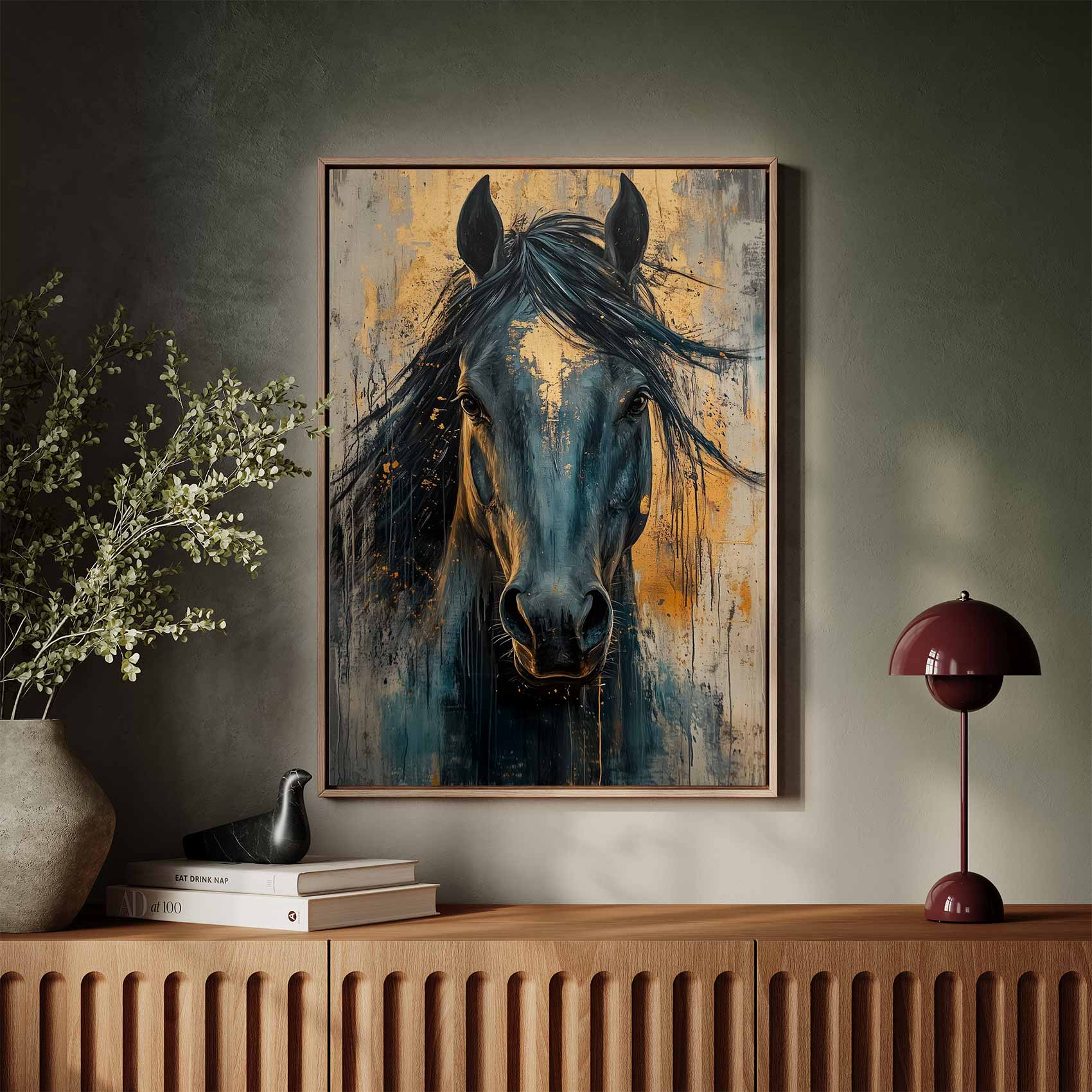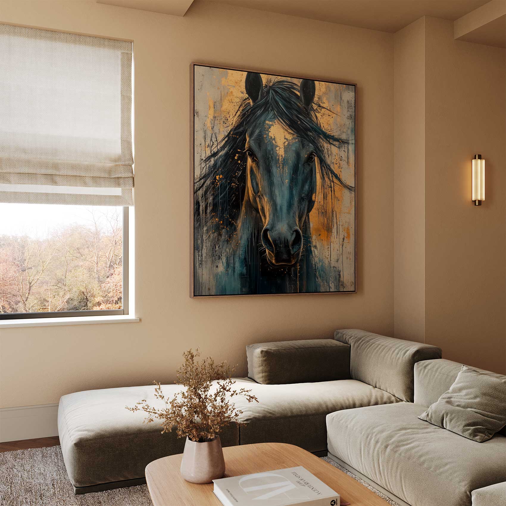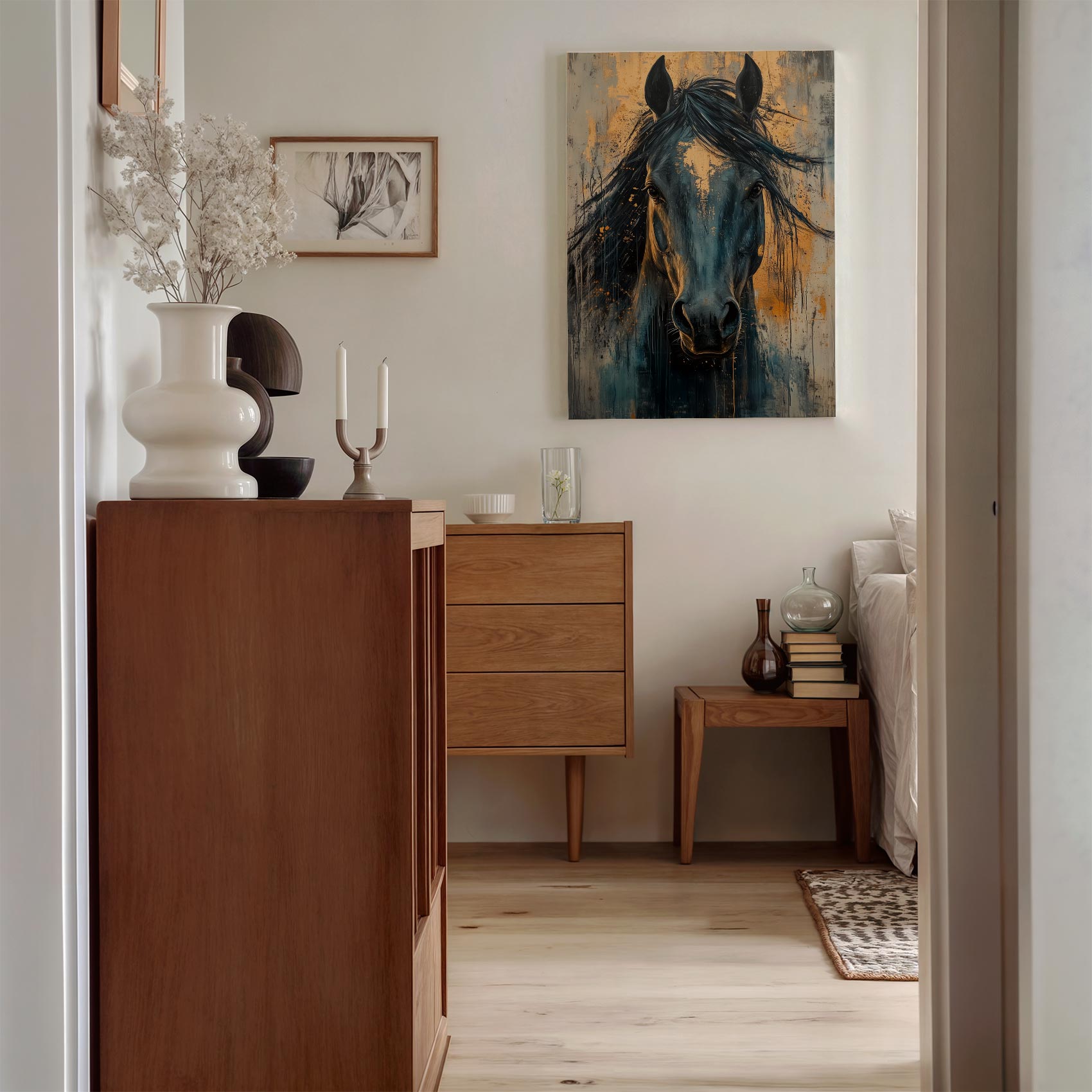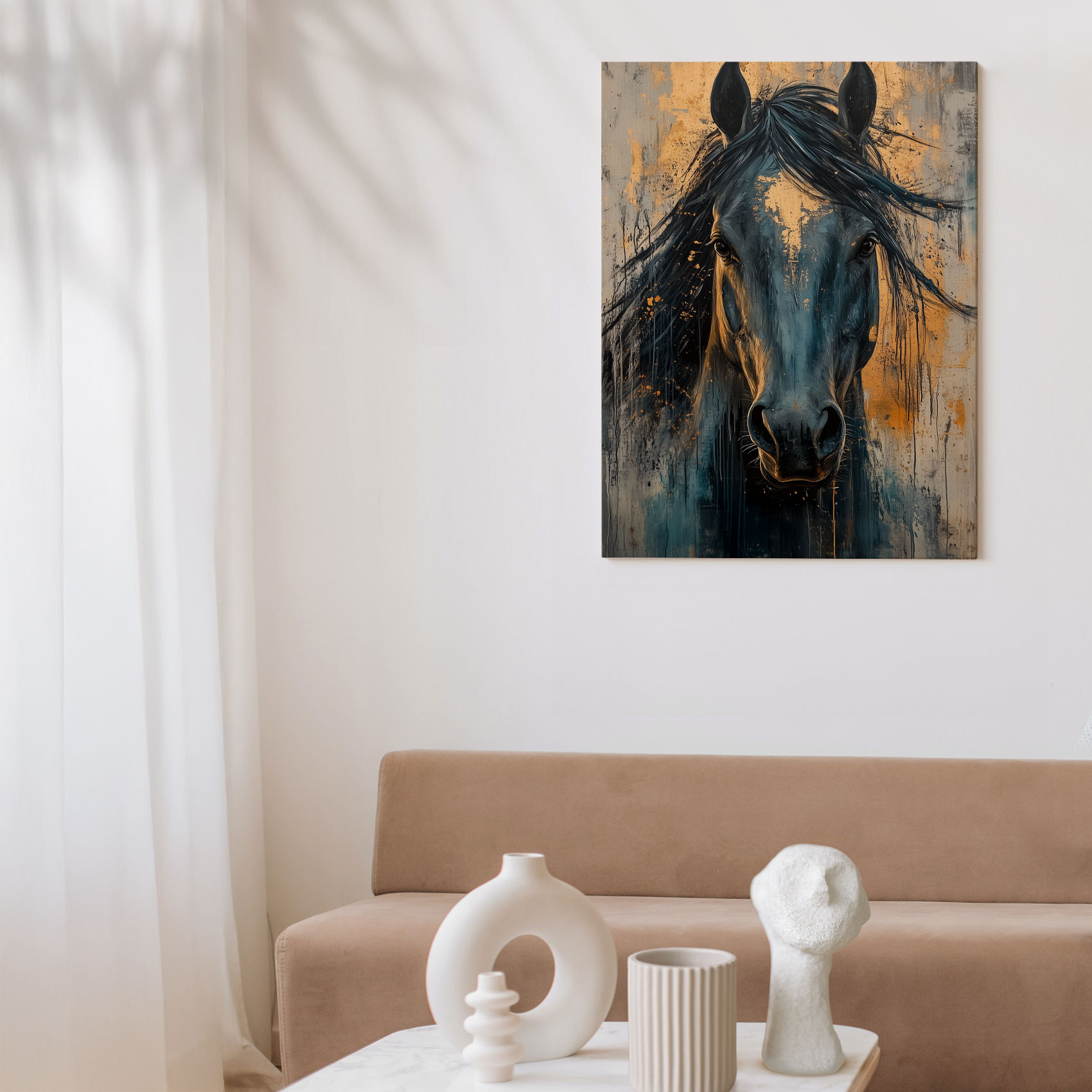 Terug naar collectie Canvas Majestueus Zwart-Goud Paard