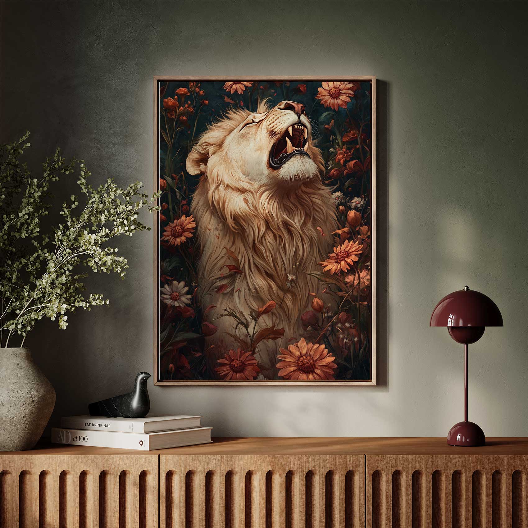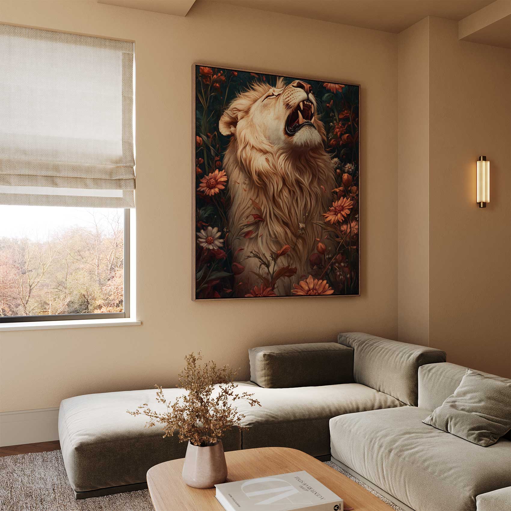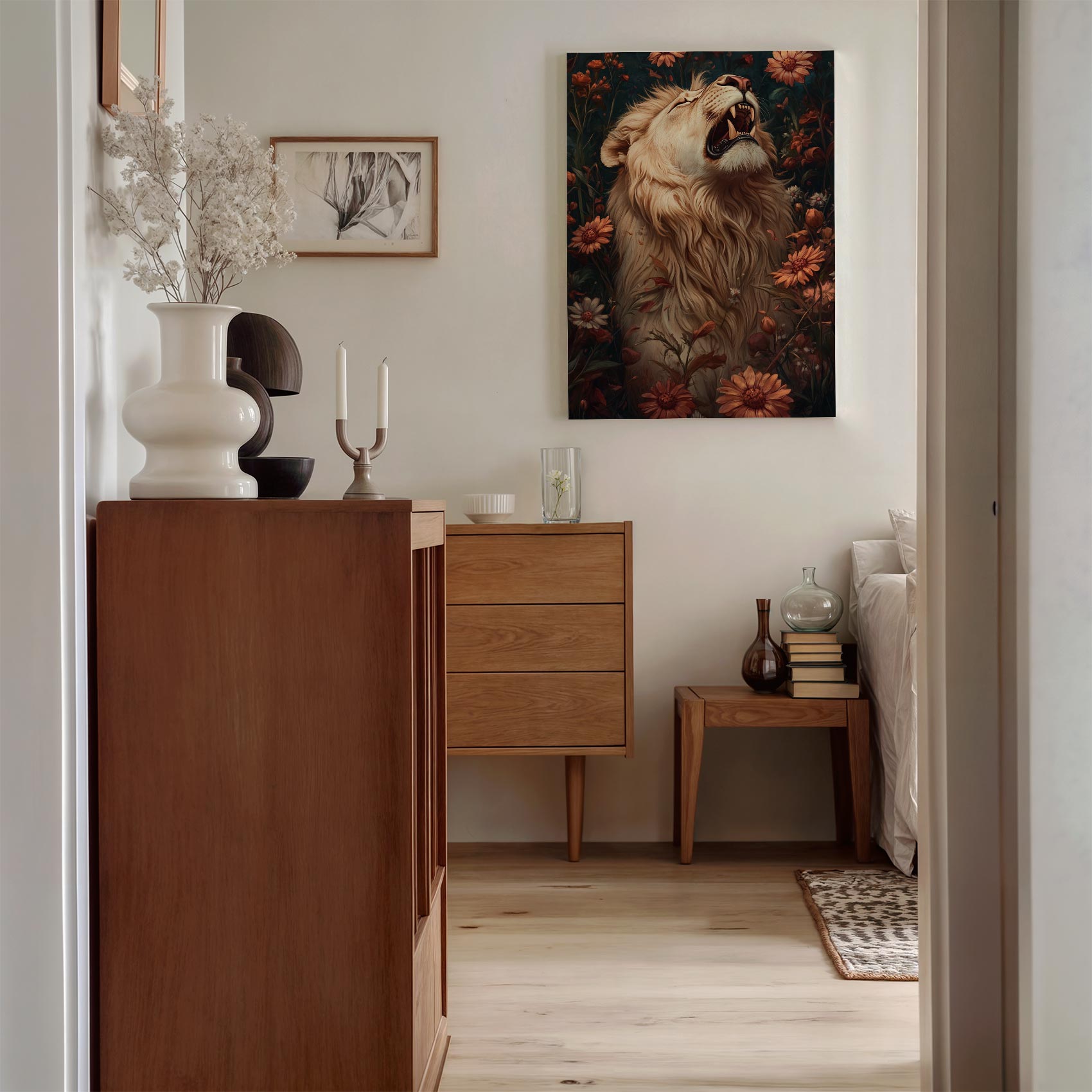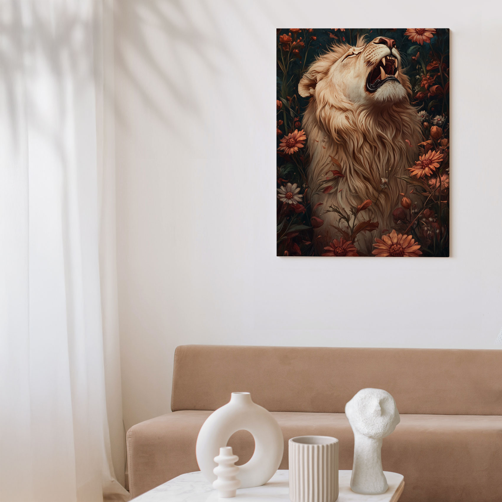 Terug naar collectie Canvas Majestueuze brullende leeuw