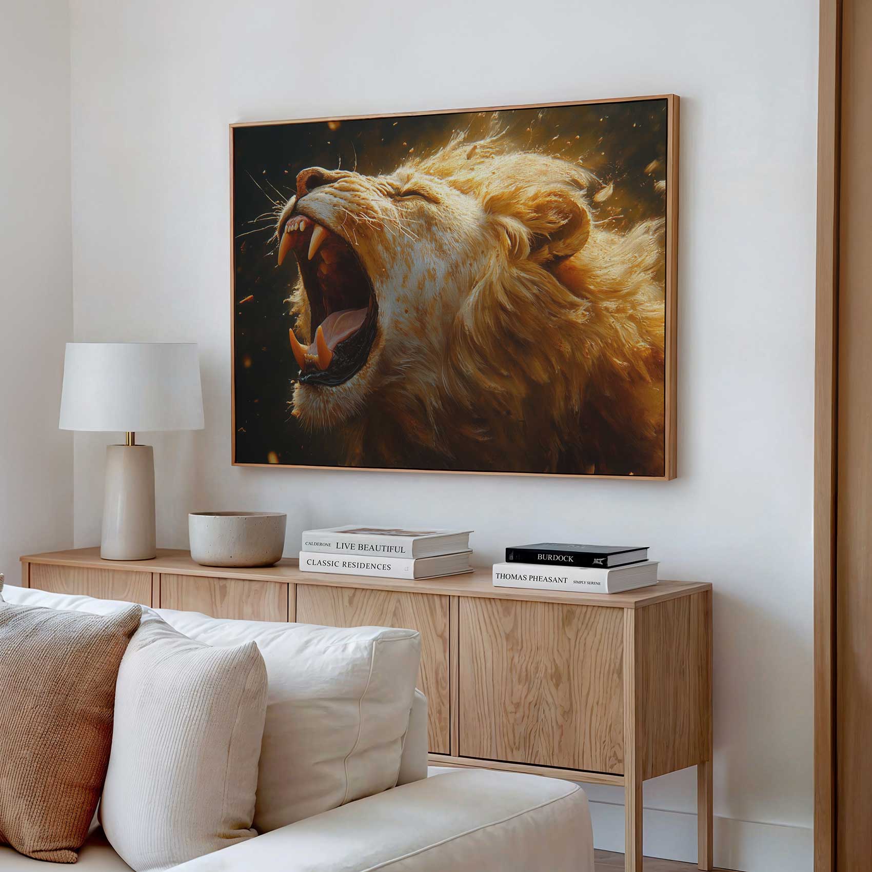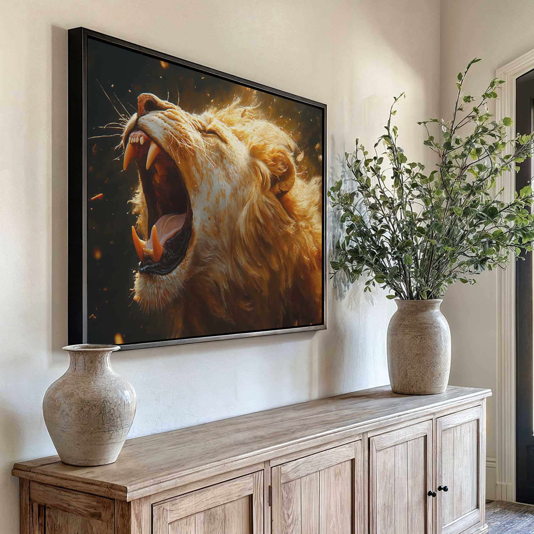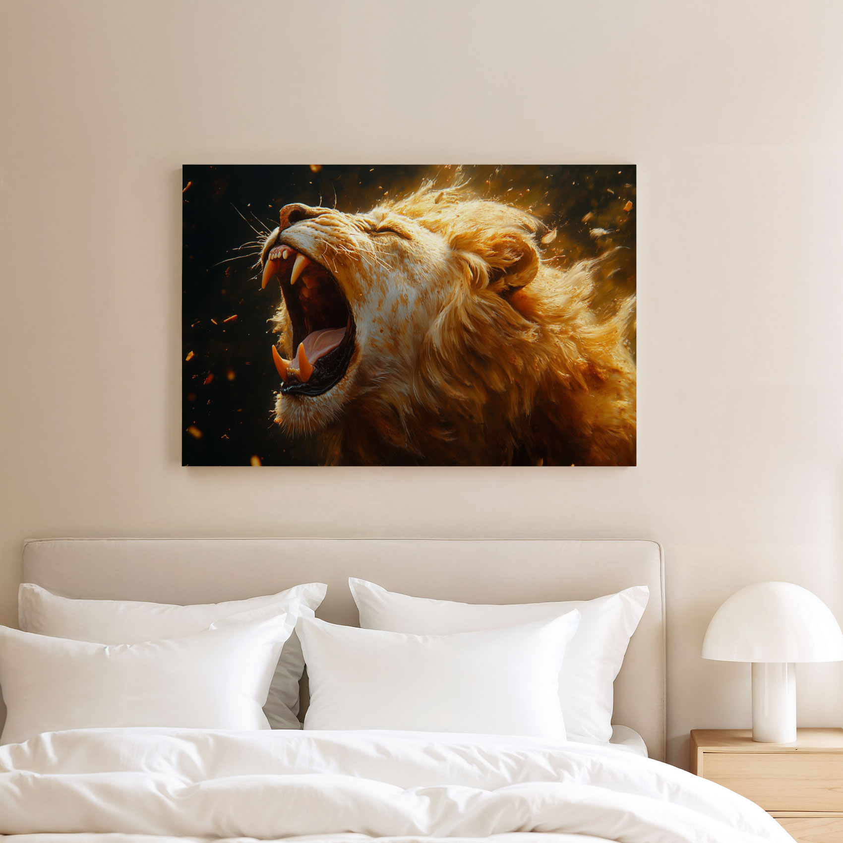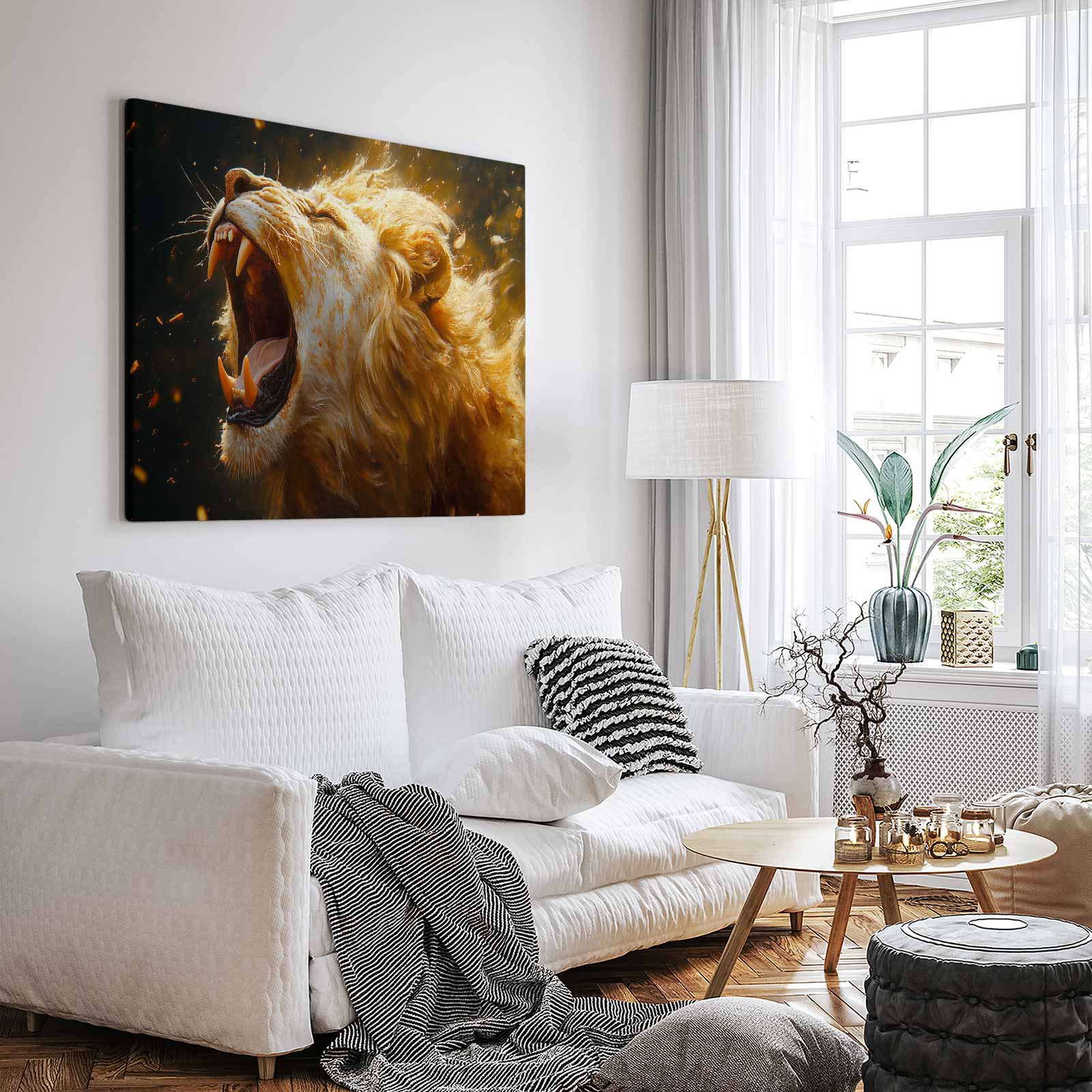 Terug naar collectie Canvas Majestueuze brullende leeuw