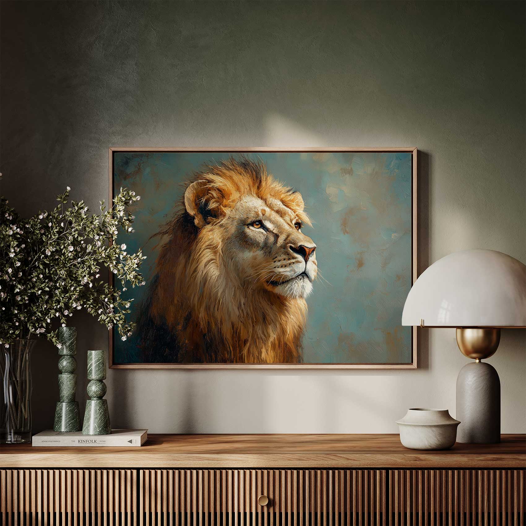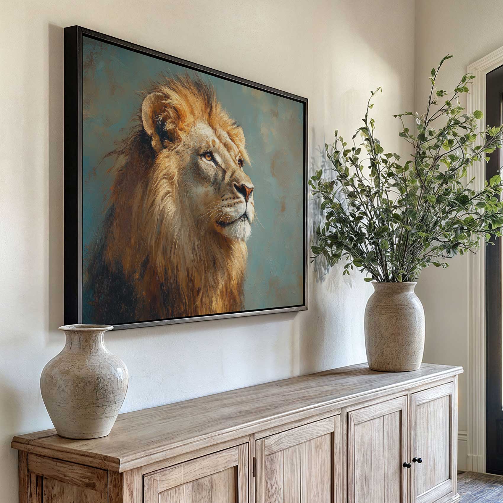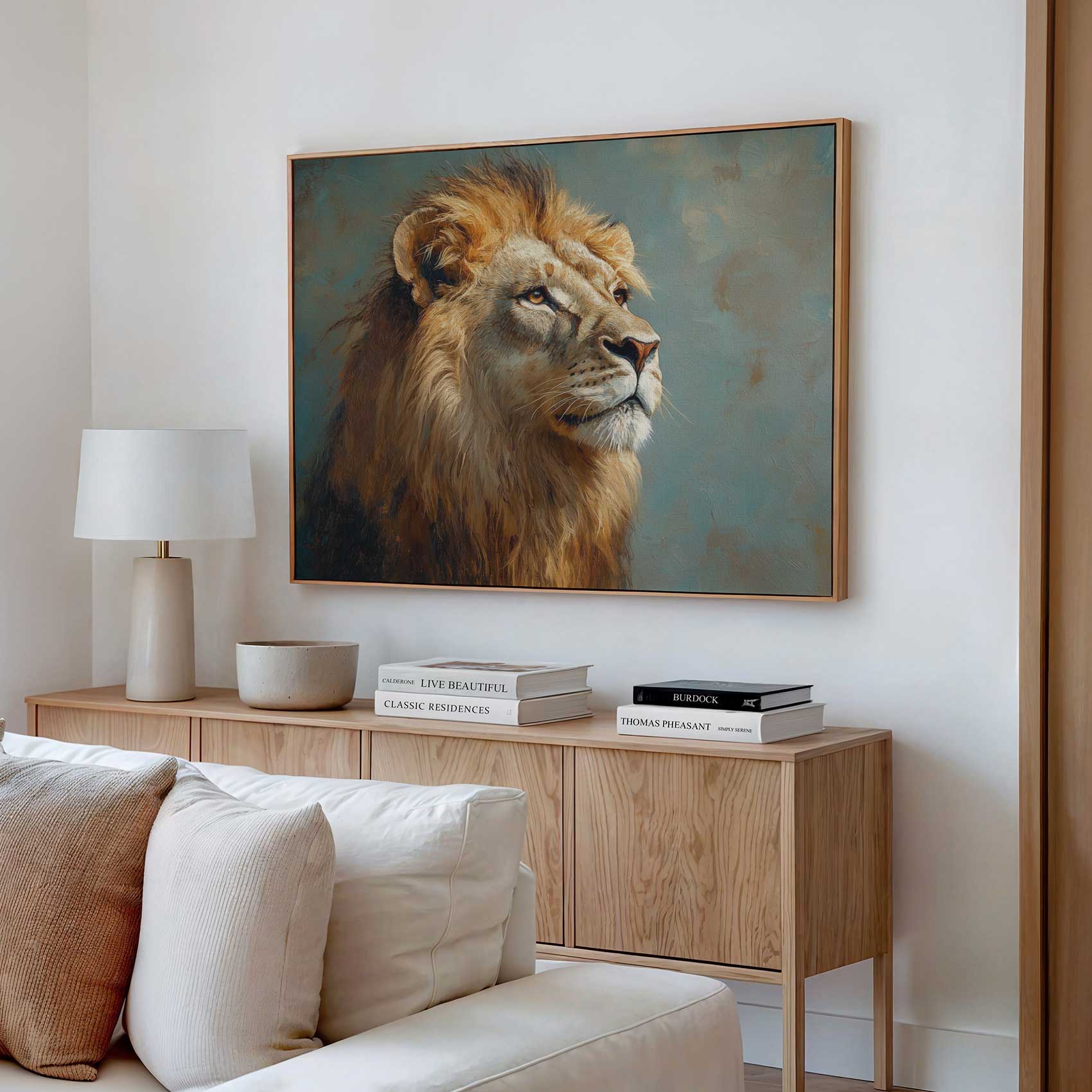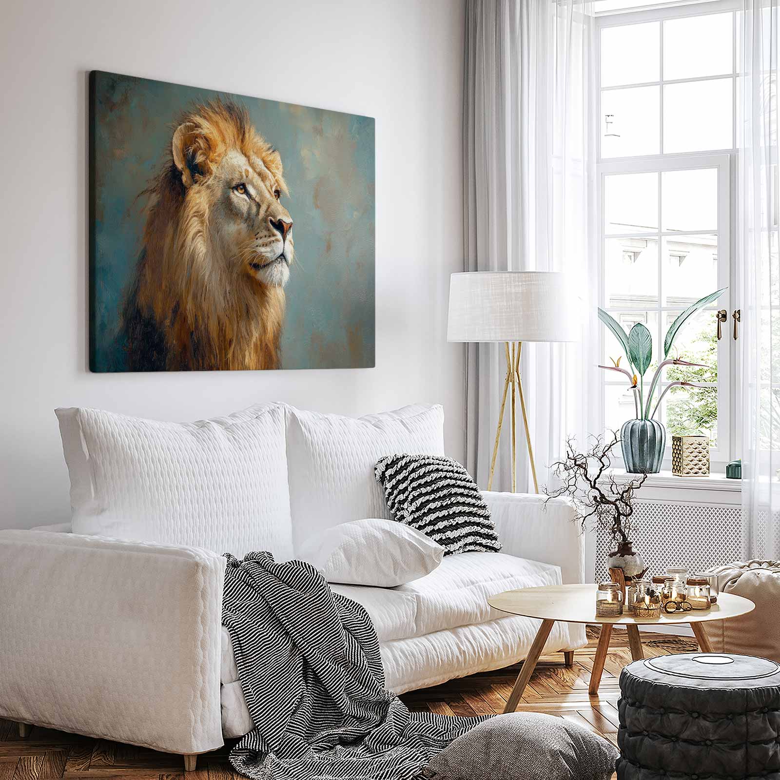 Terug naar collectie Canvas Majestueuze gouden leeuwschilderij