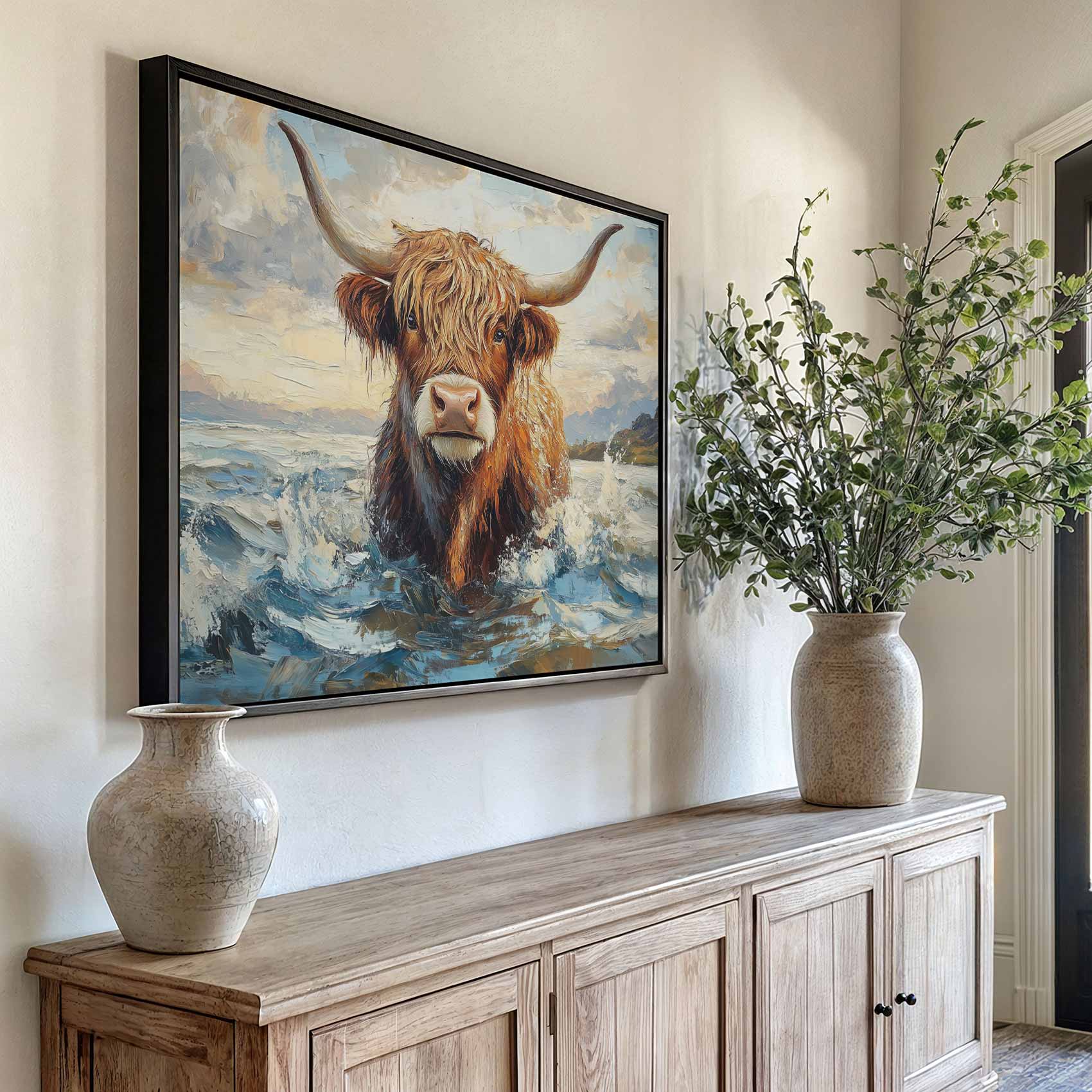 Majestueuze koe in golven