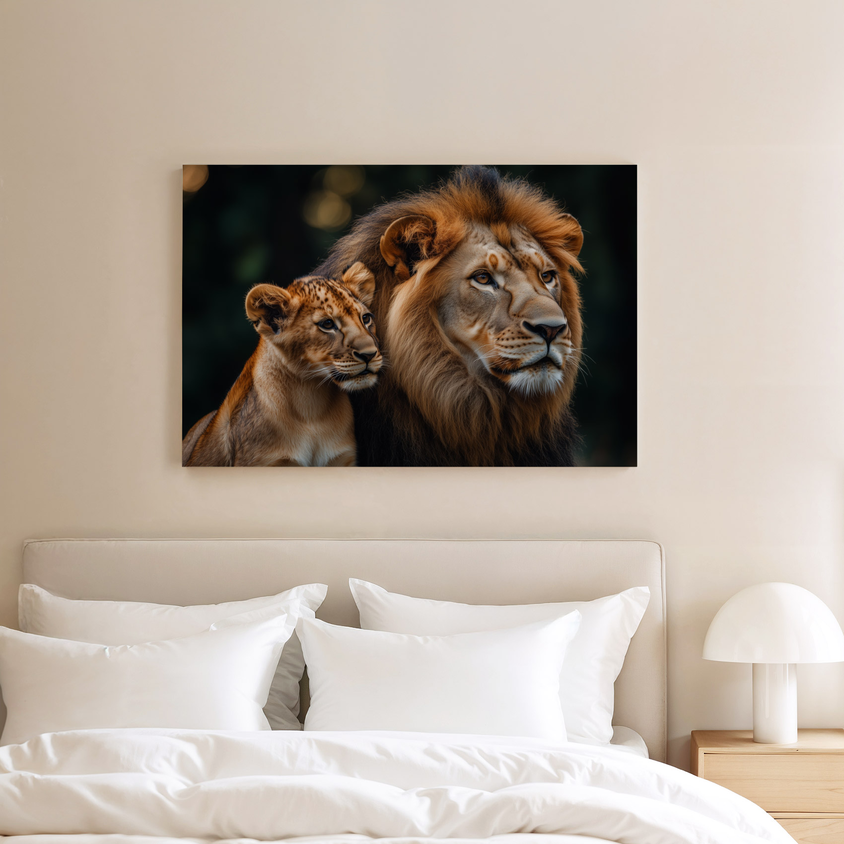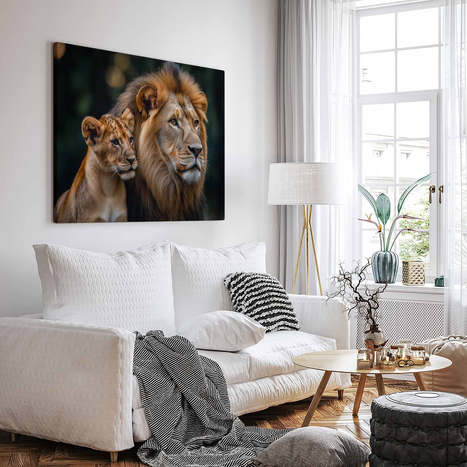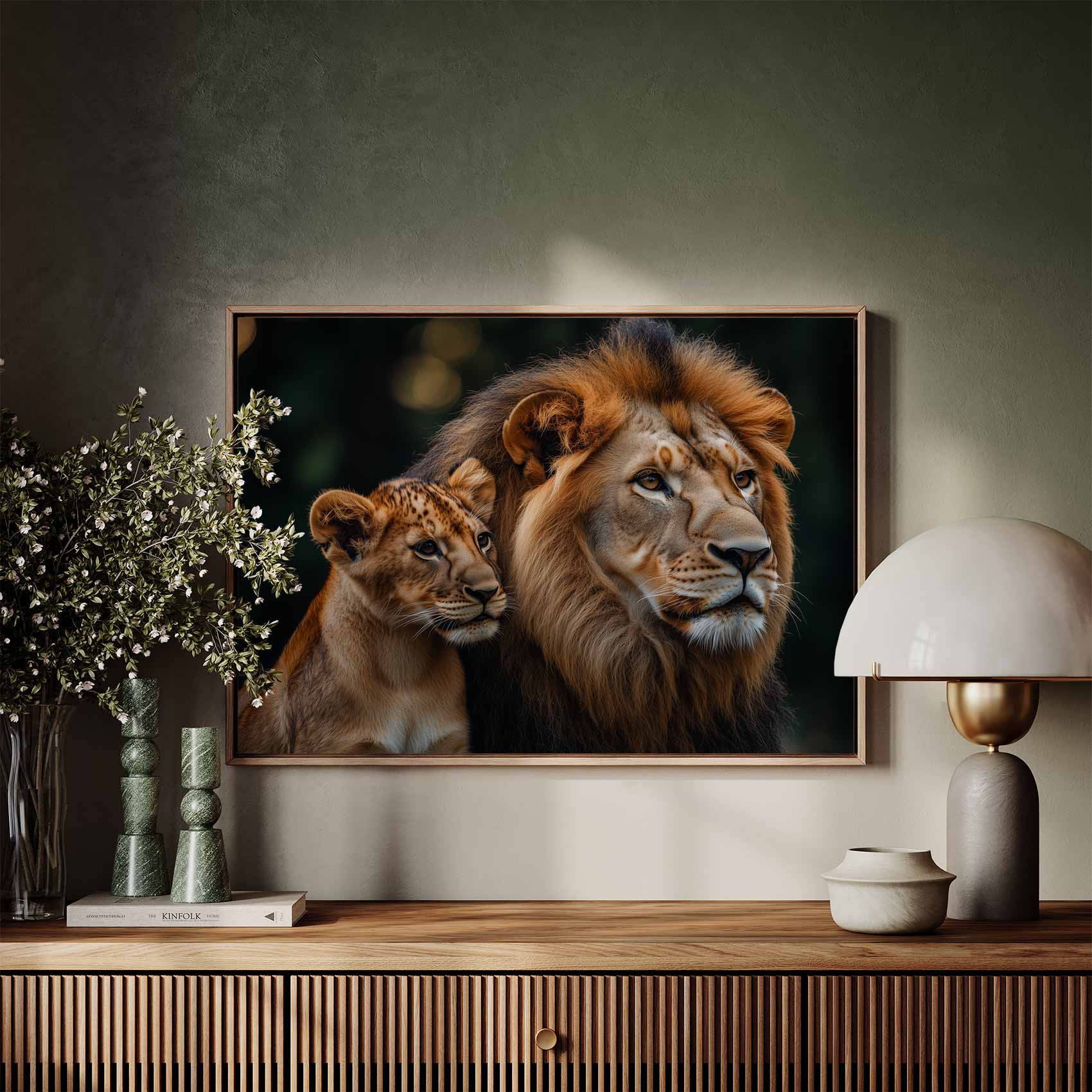 Terug naar collectie Canvas Majestueuze leeuw en welp