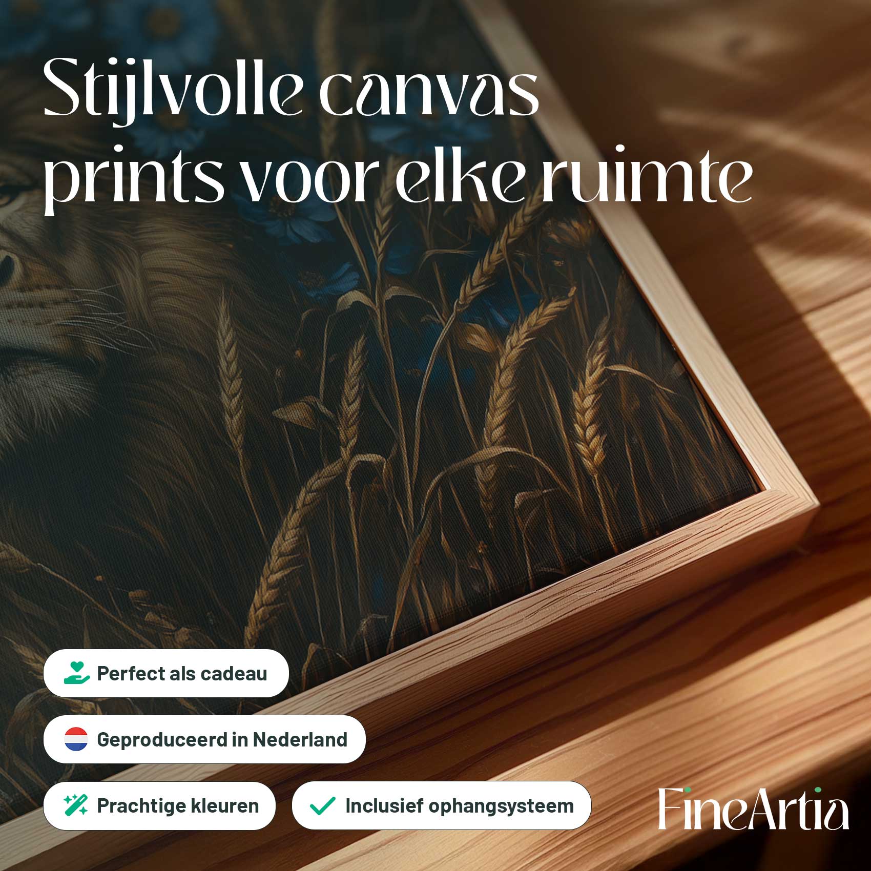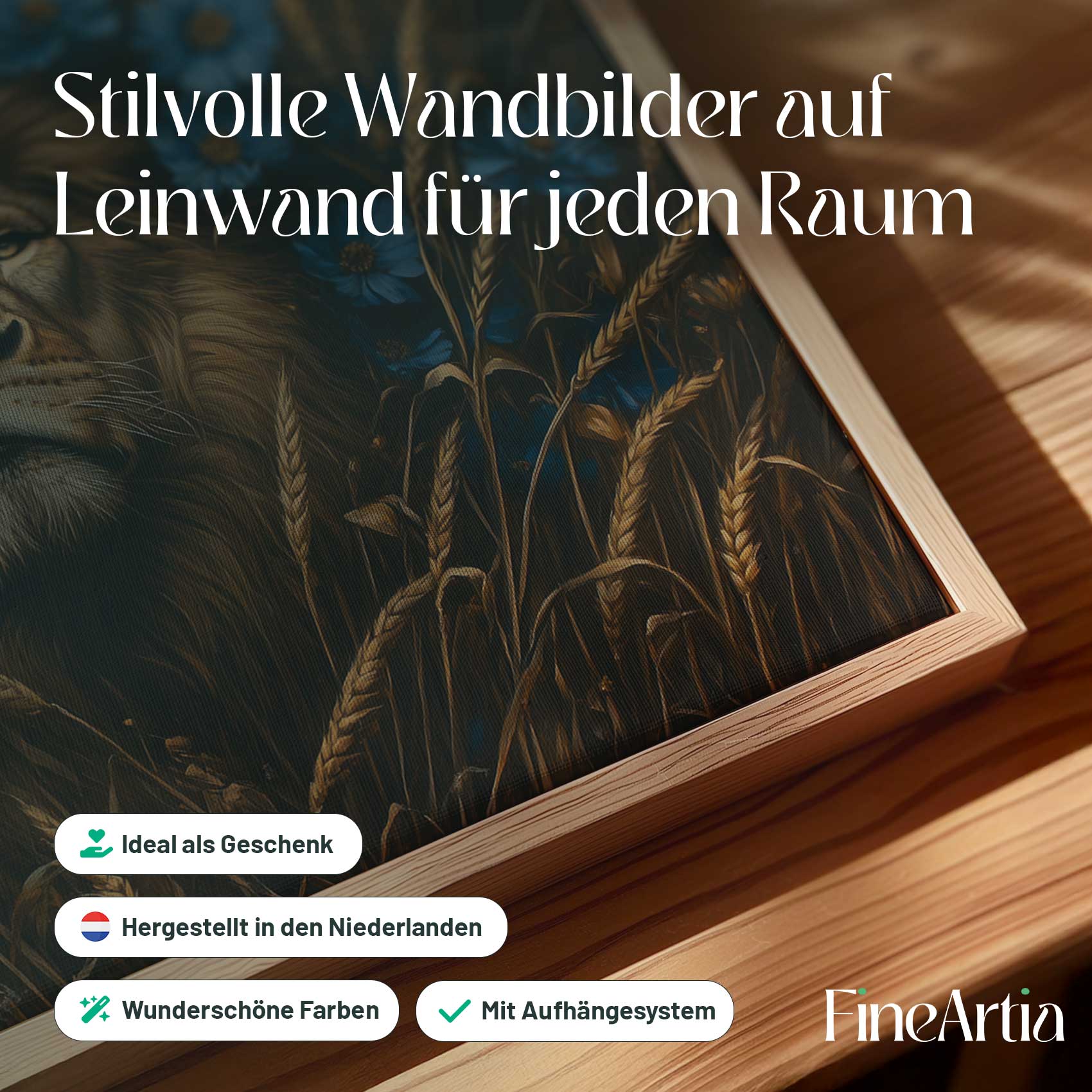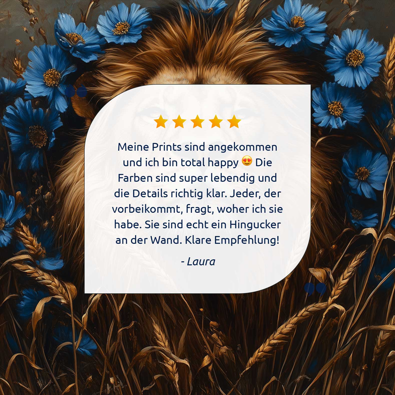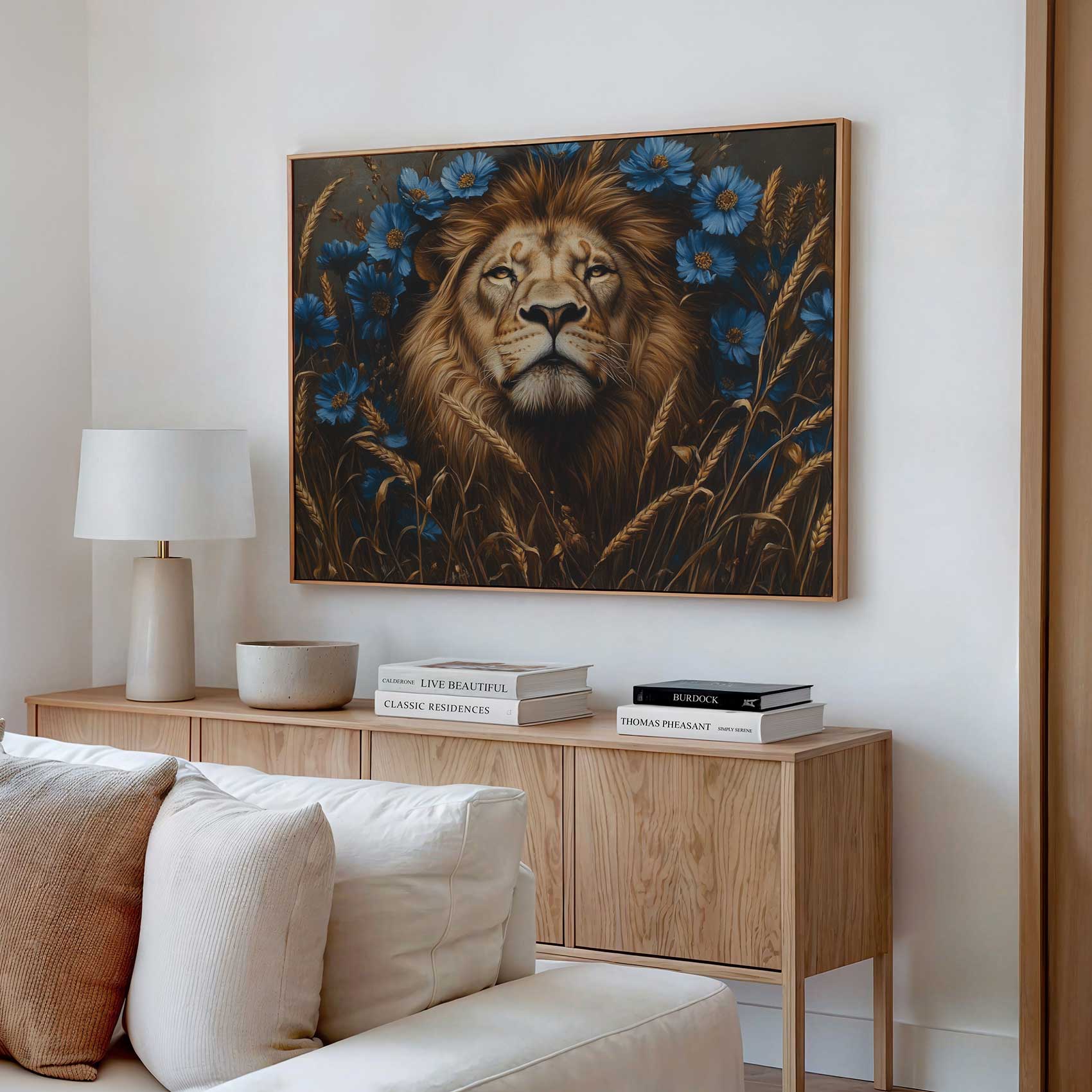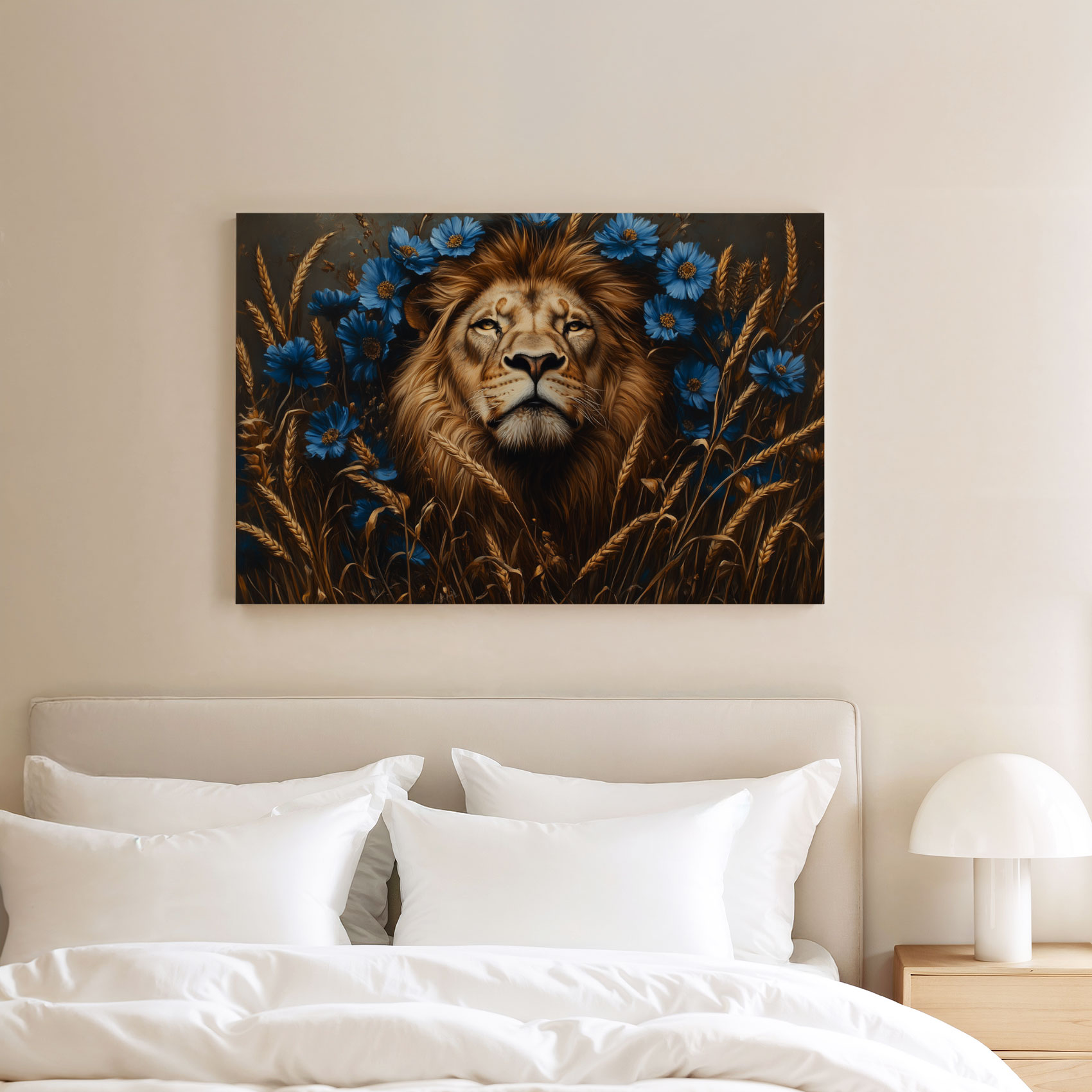 Majestueuze leeuw in blauwe bloemen