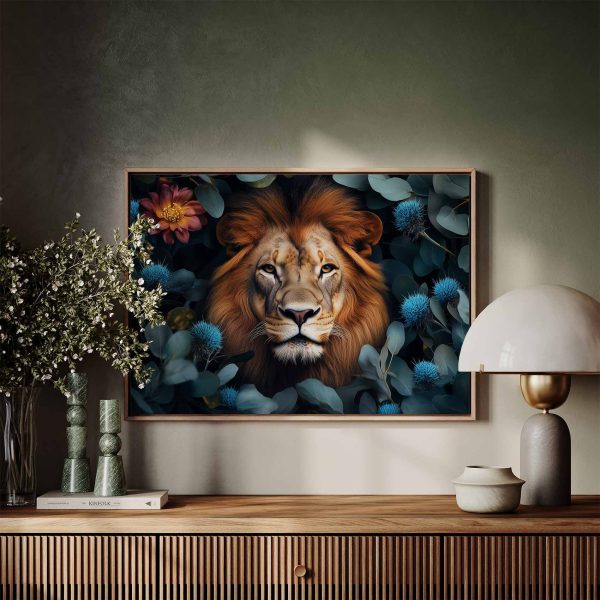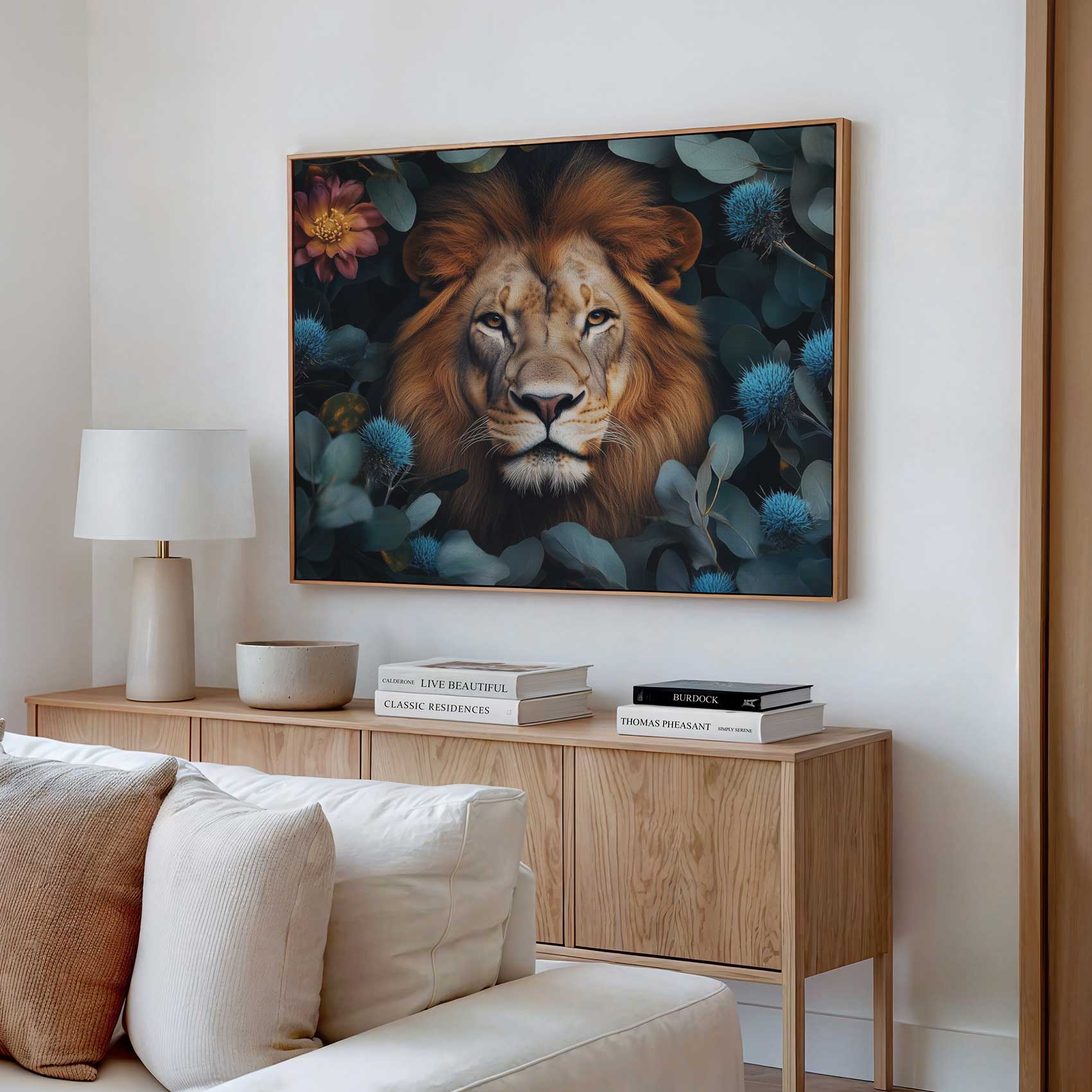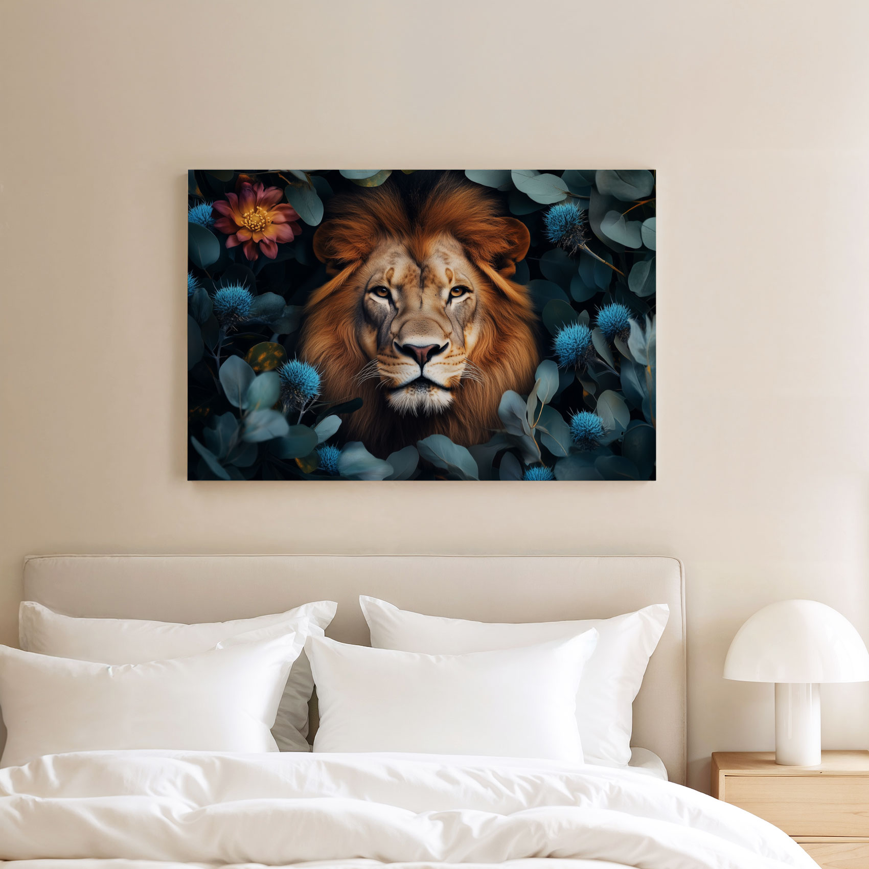 Terug naar collectie Canvas Majestueuze leeuw in groen