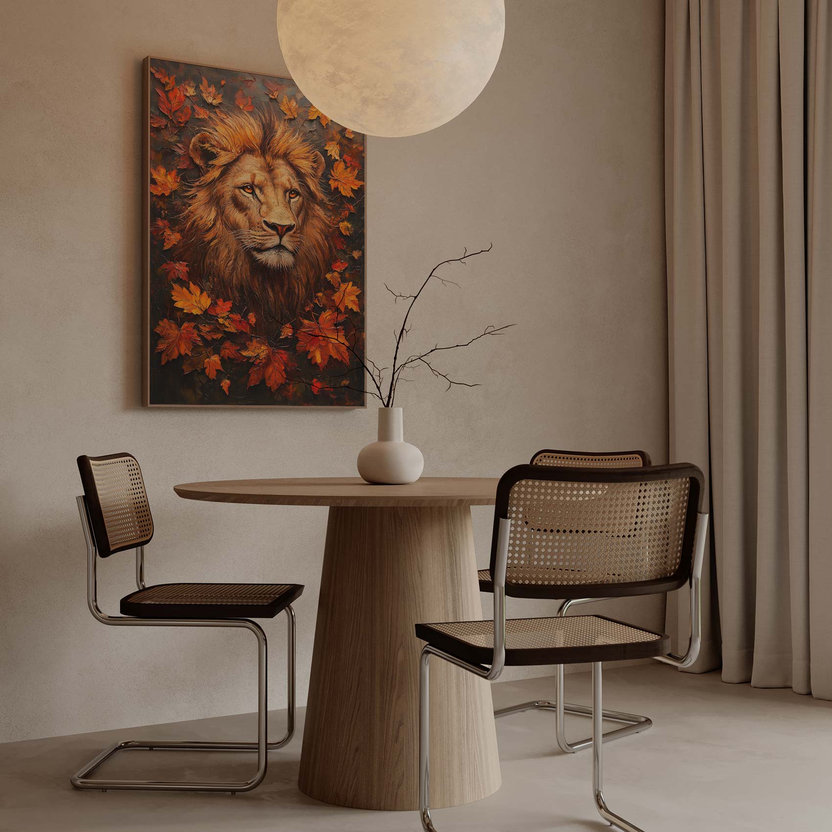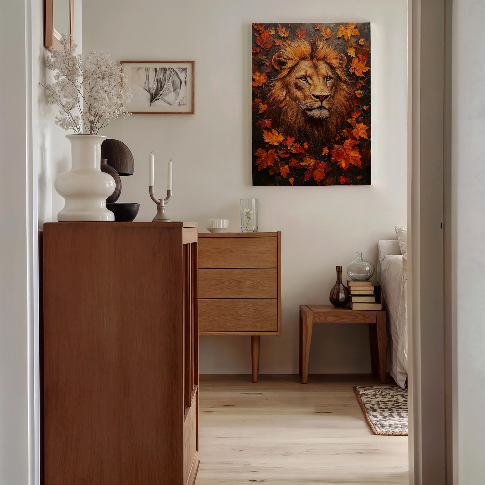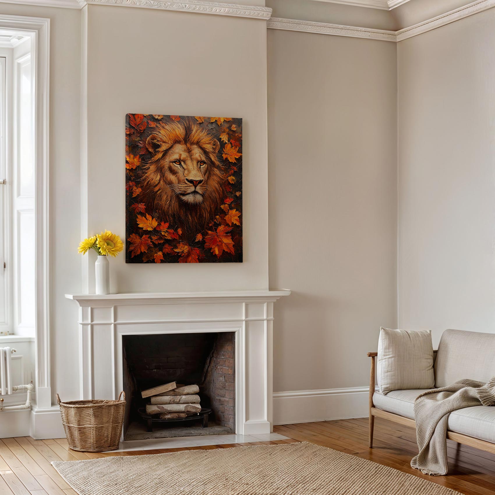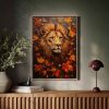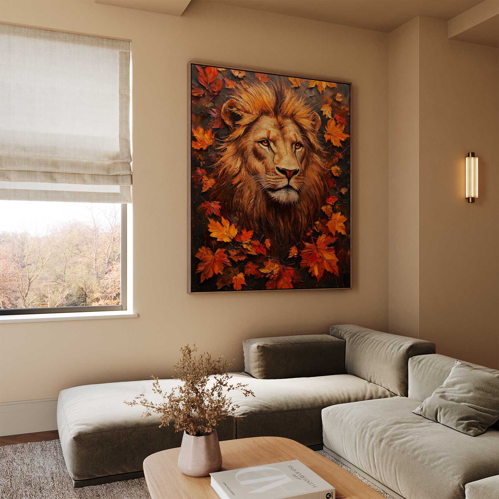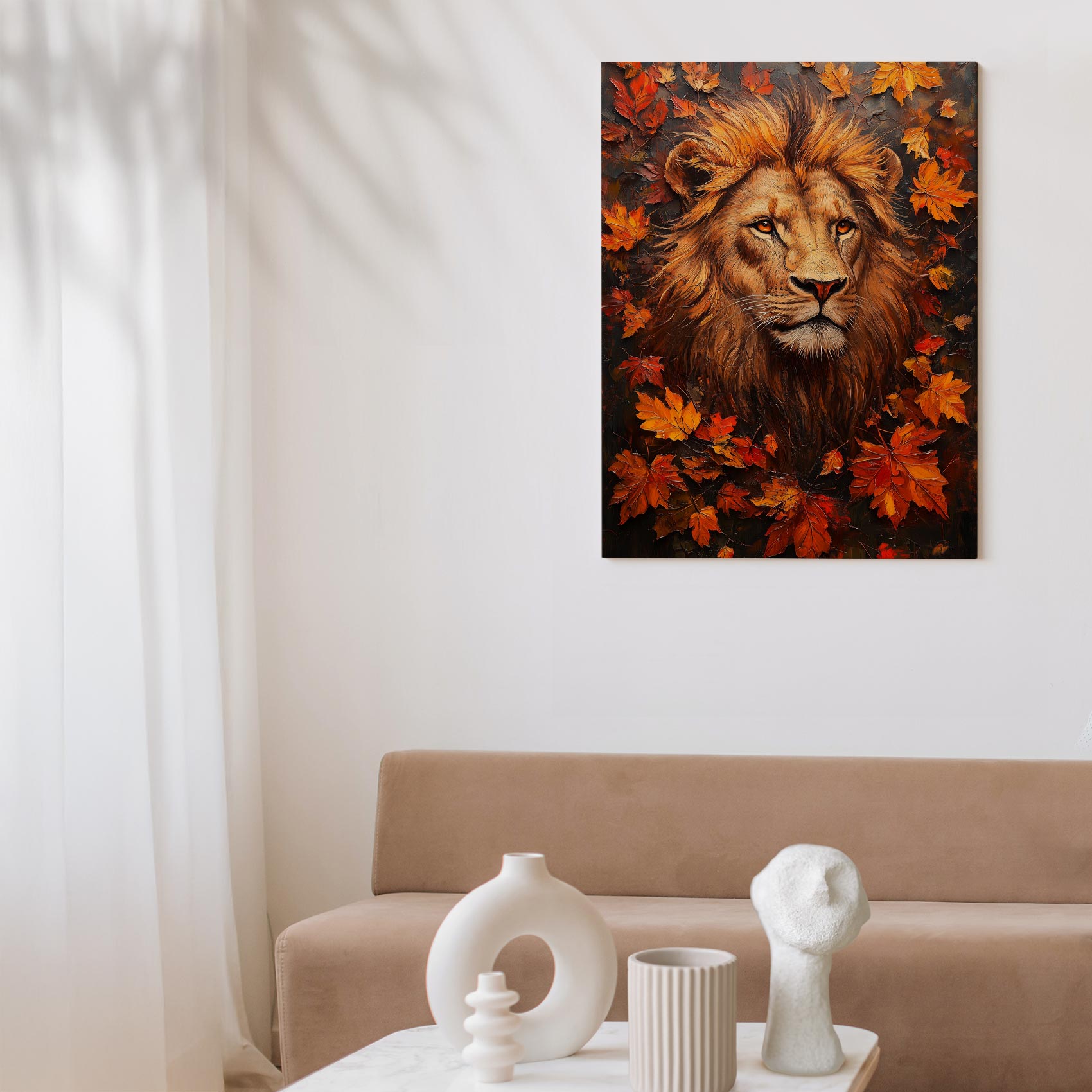 Majestueuze leeuw in herfstblad
