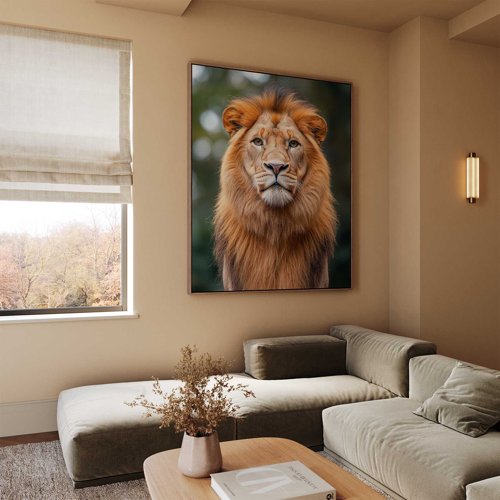 Terug naar collectie Canvas Majestueuze leeuw in natuur