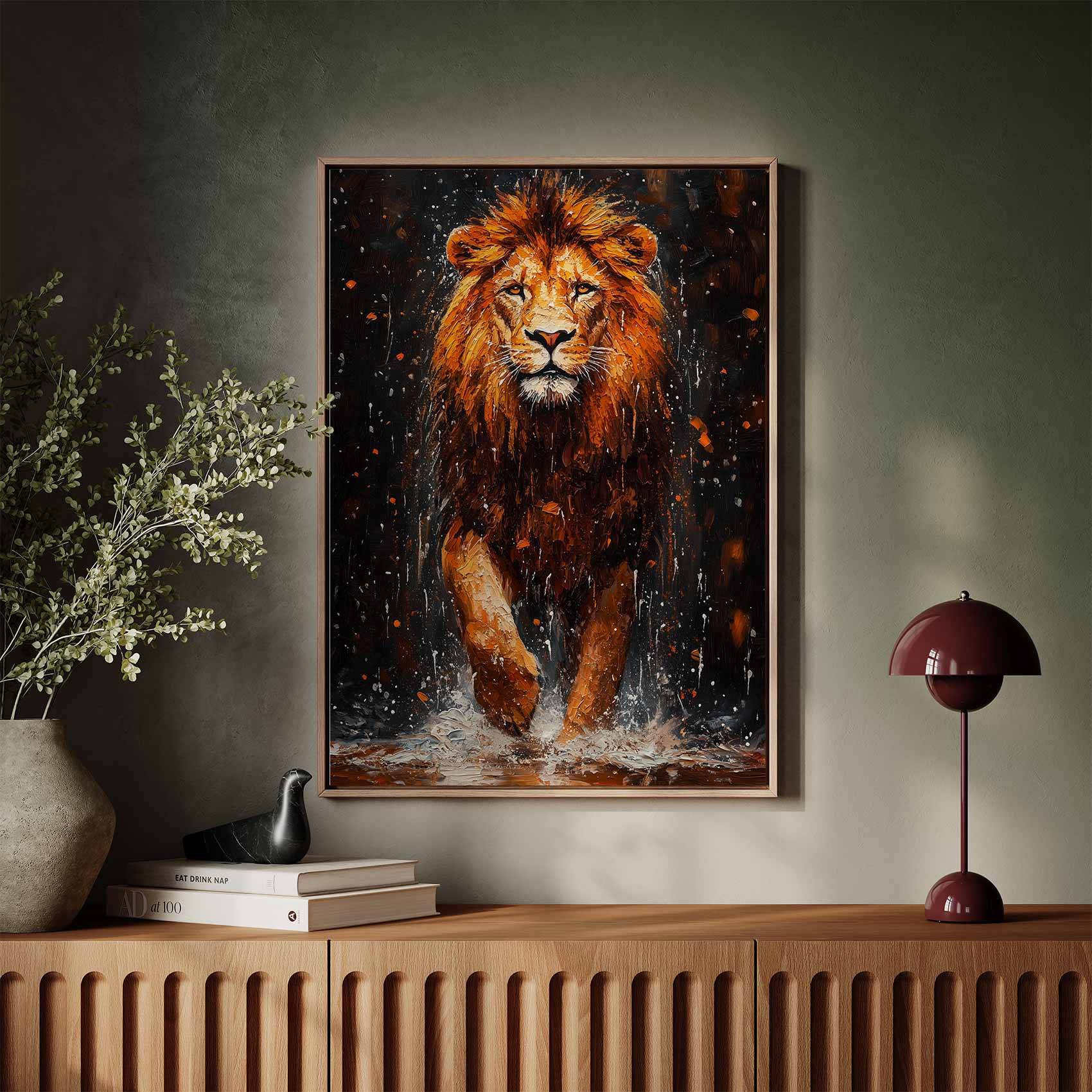 Terug naar collectie Canvas Majestueuze Leeuw in Water