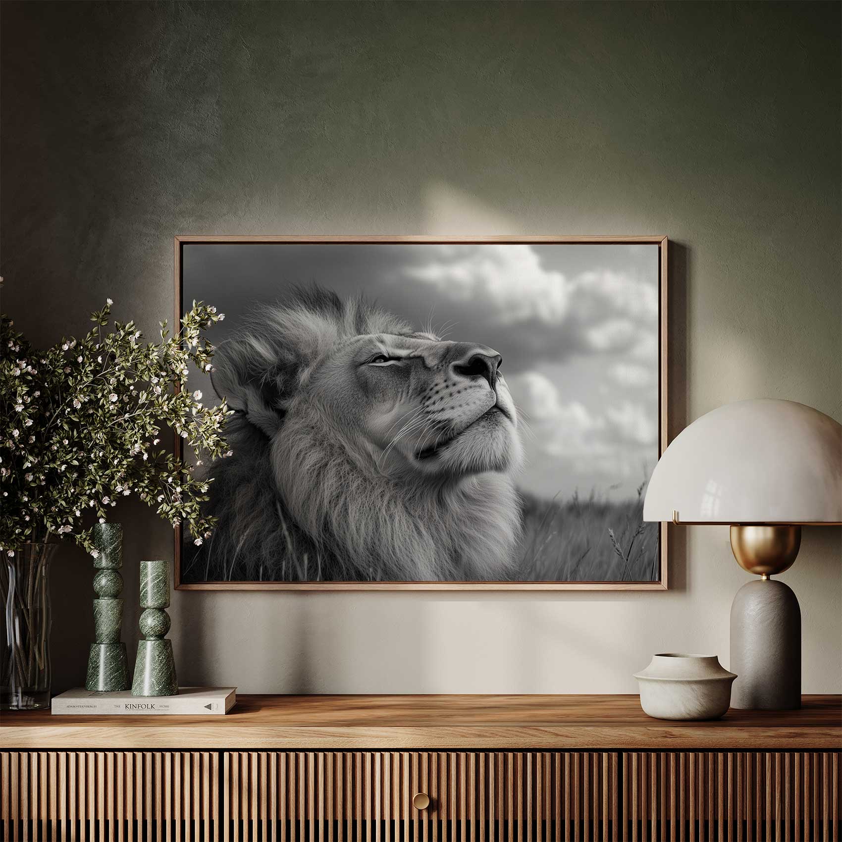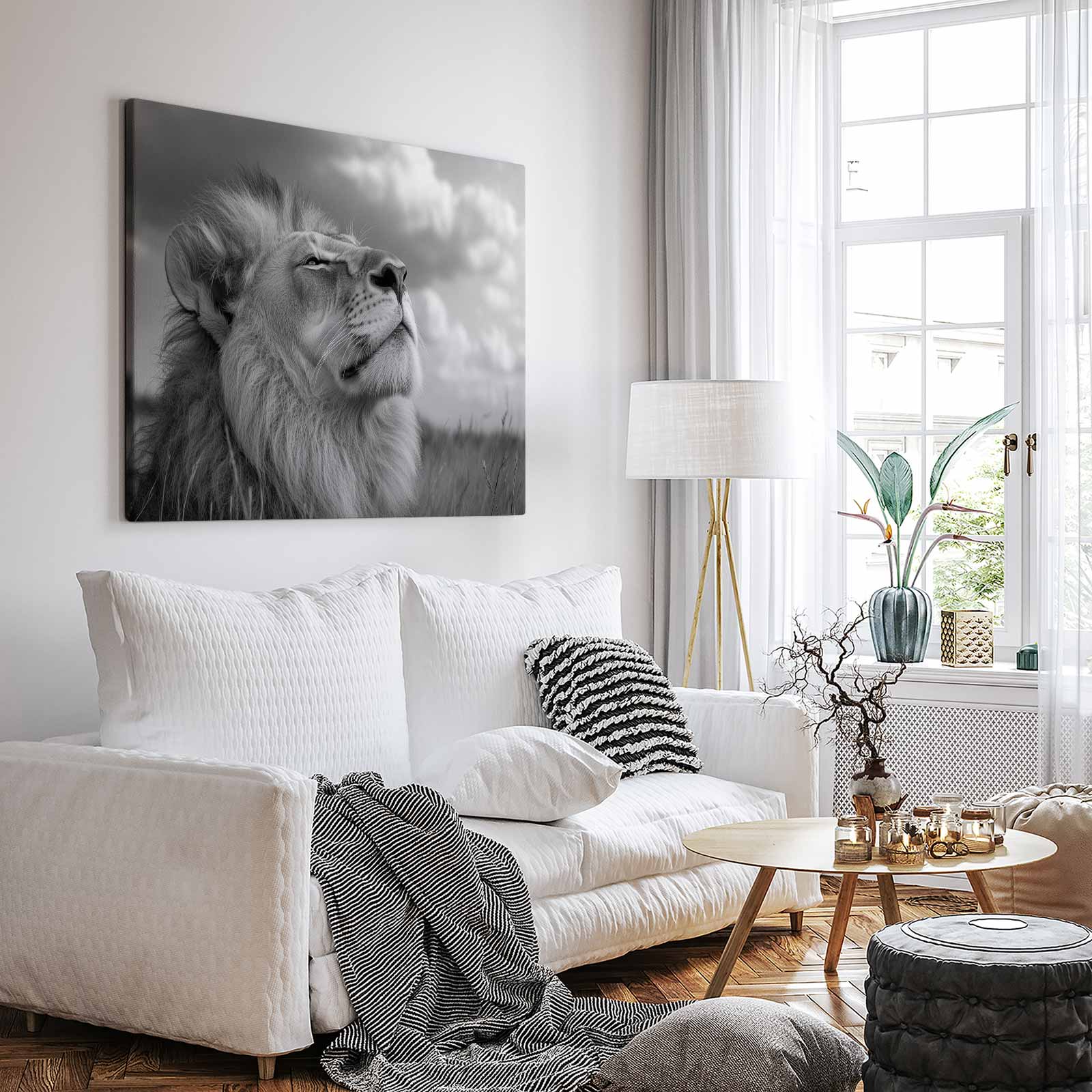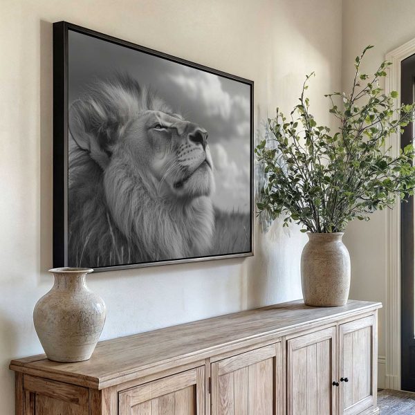Majestueuze leeuw in zwart-wit
