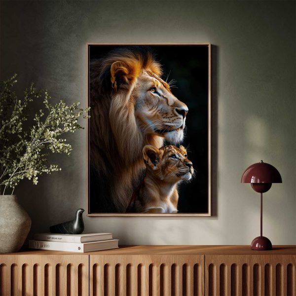 Terug naar collectie Canvas Majestueuze leeuw met welp