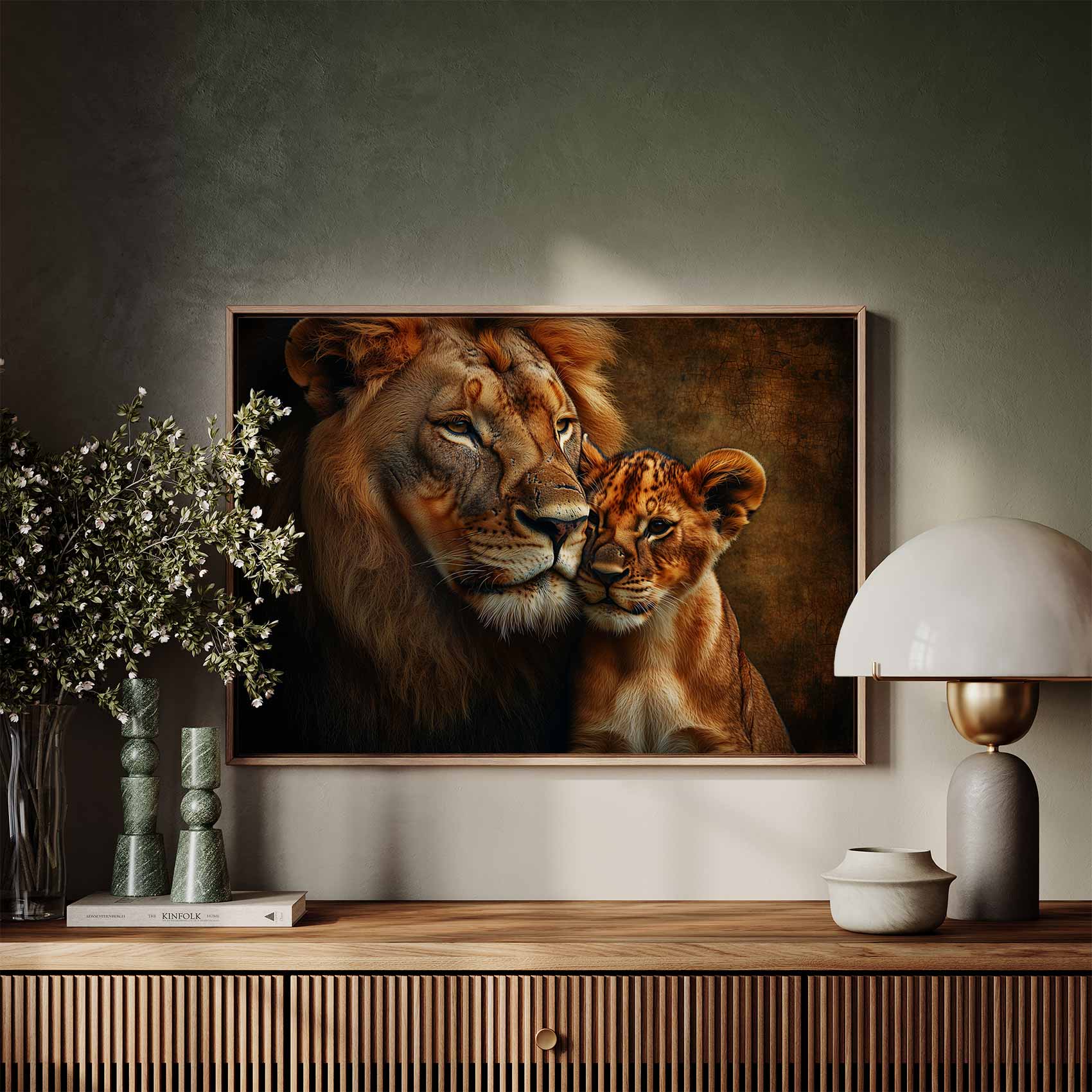 Majestueuze leeuw met welp