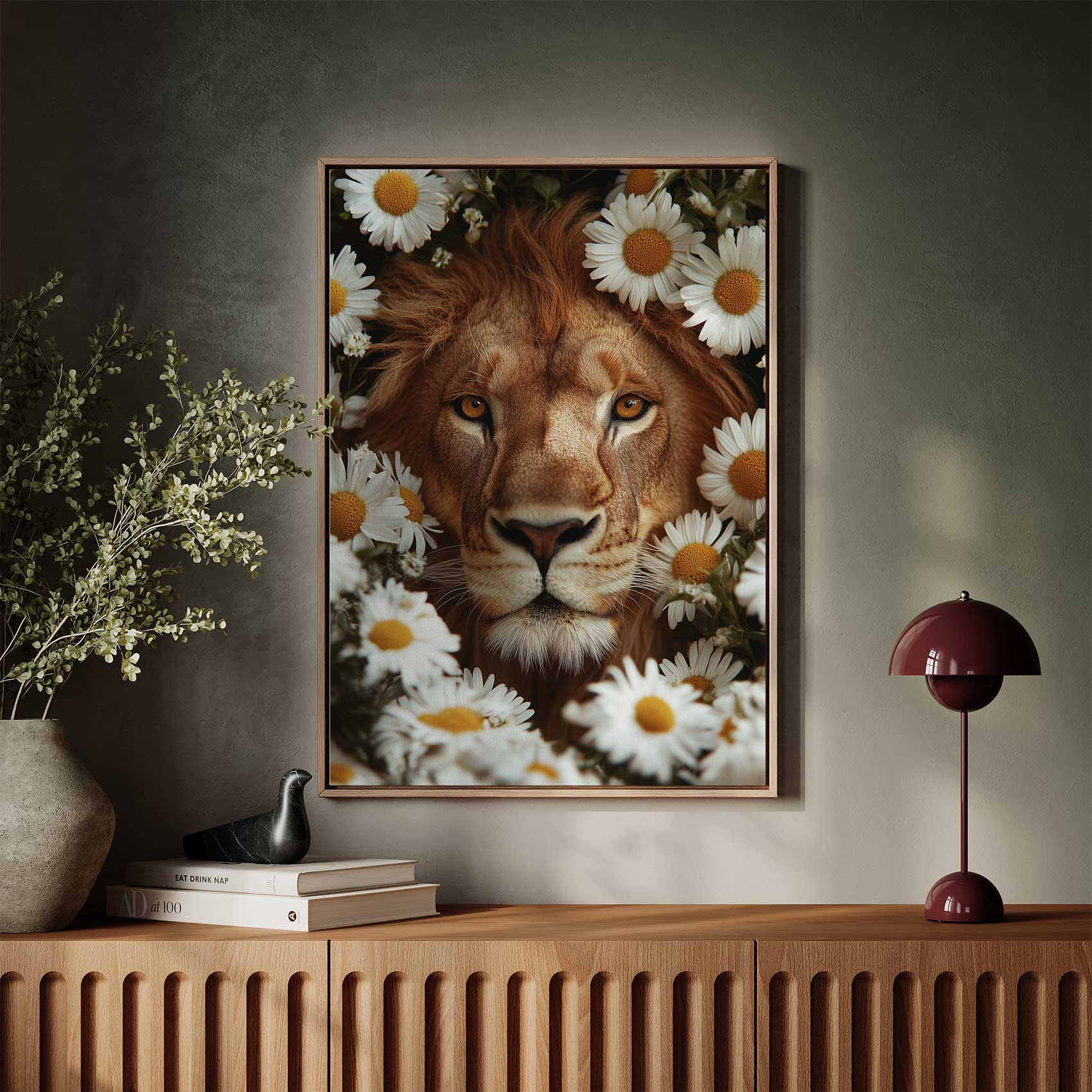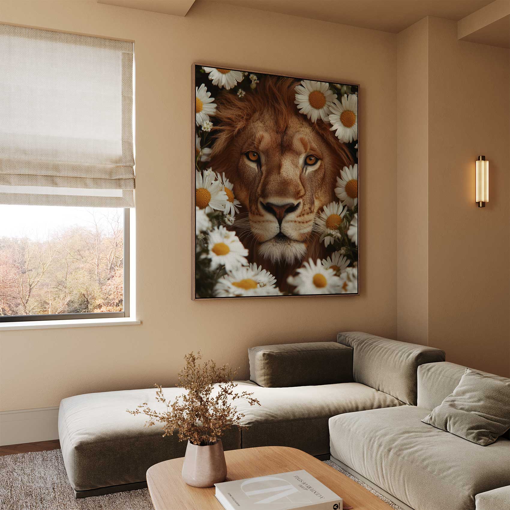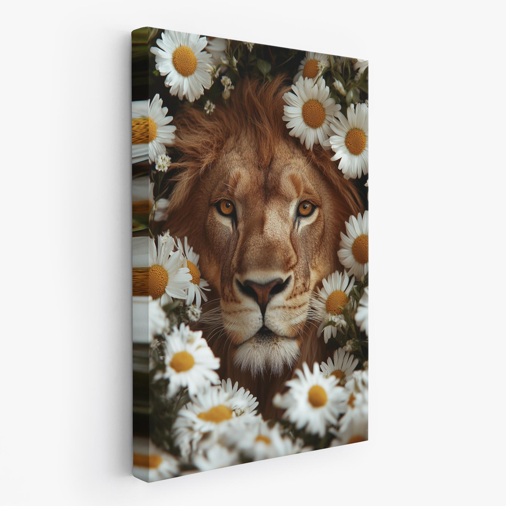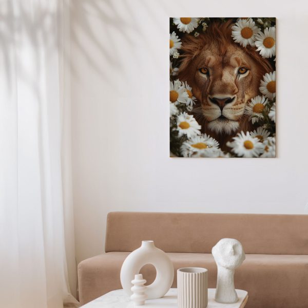 Terug naar collectie Canvas Majestueuze leeuw tussen bloemen