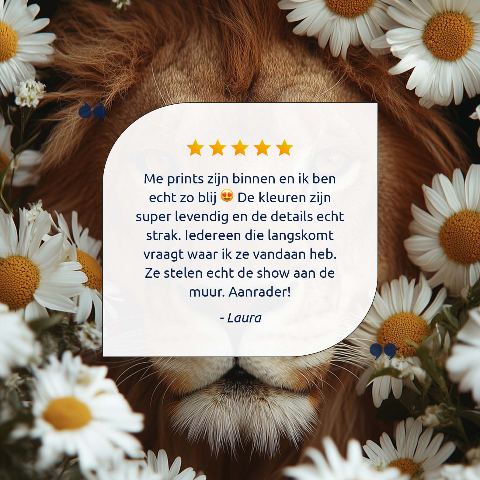 Majestueuze leeuw tussen bloemen