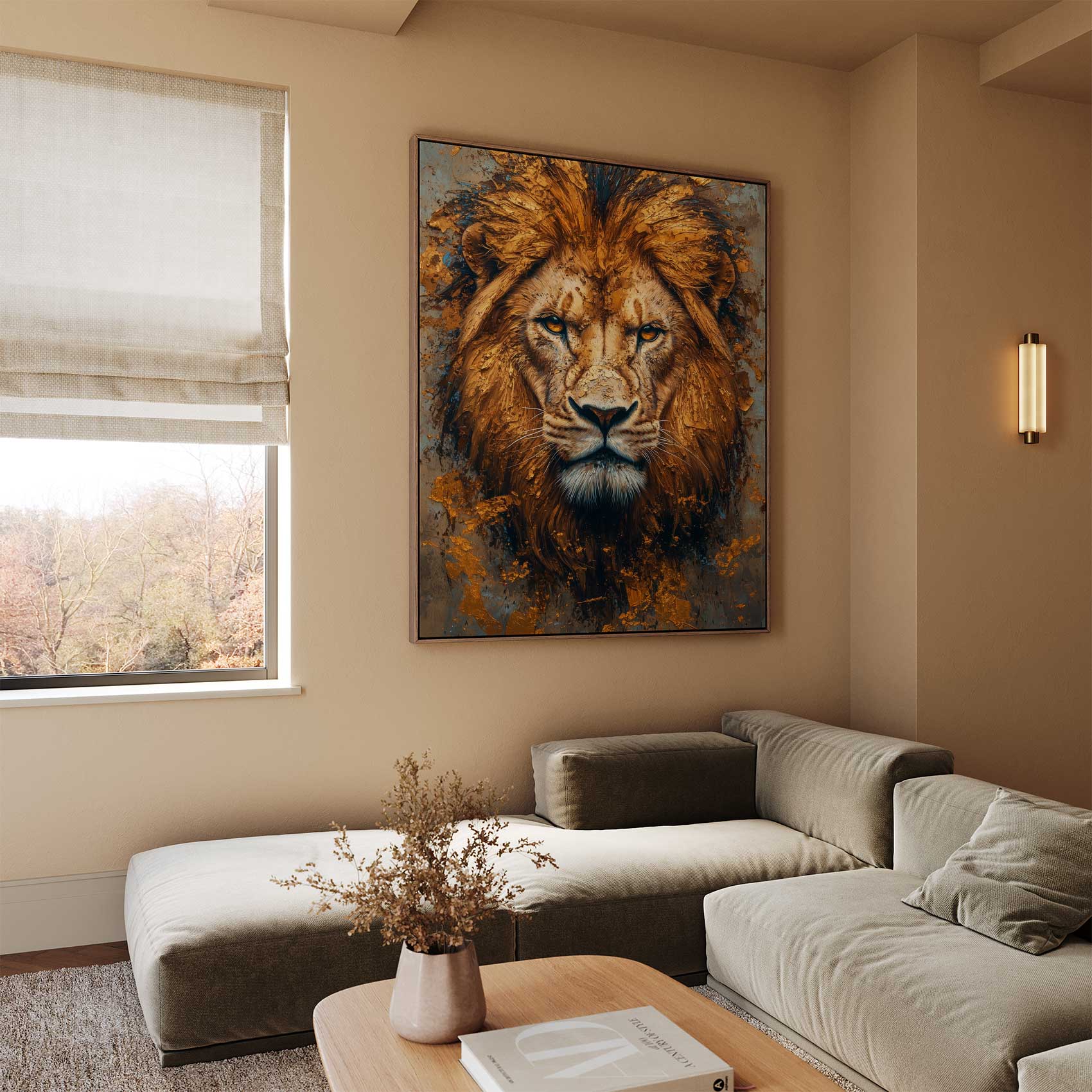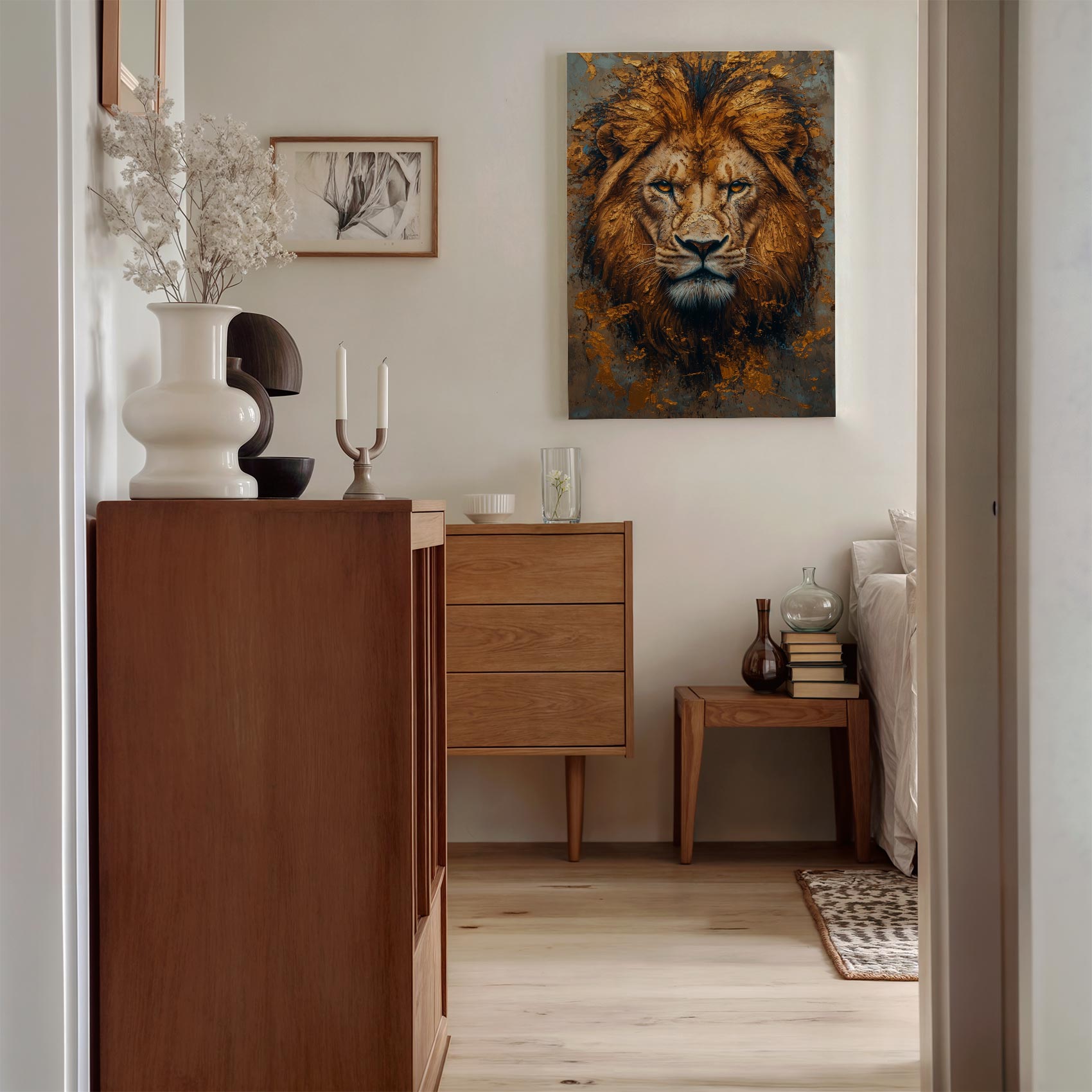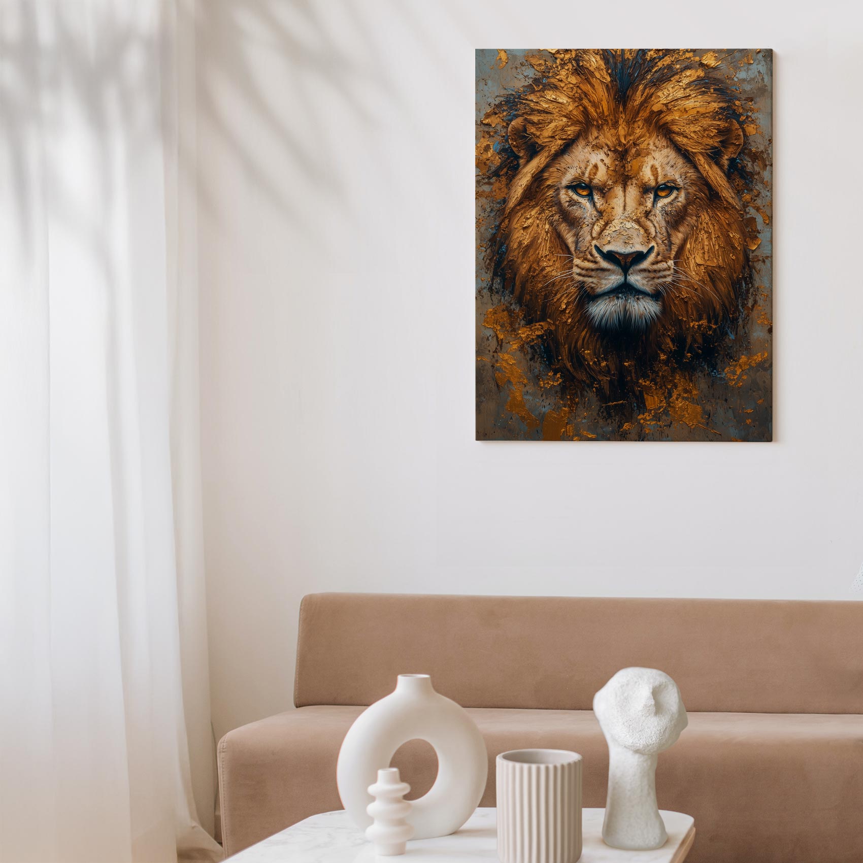 Terug naar collectie Canvas Majestueuze leeuwenkop close-up