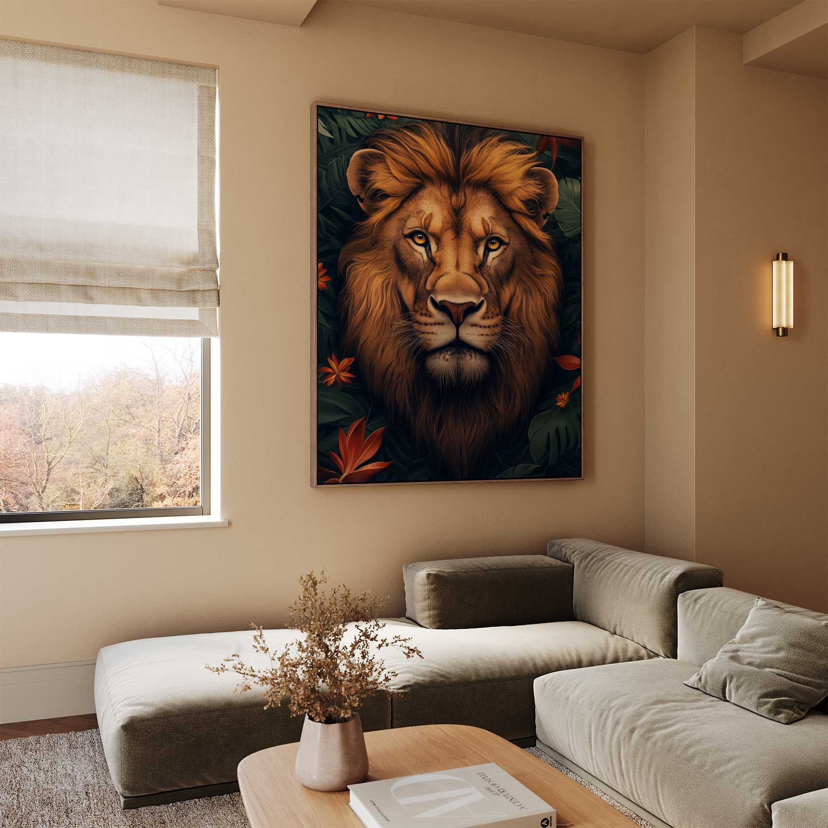Terug naar collectie Canvas Majestueuze leeuwenkop in natuur