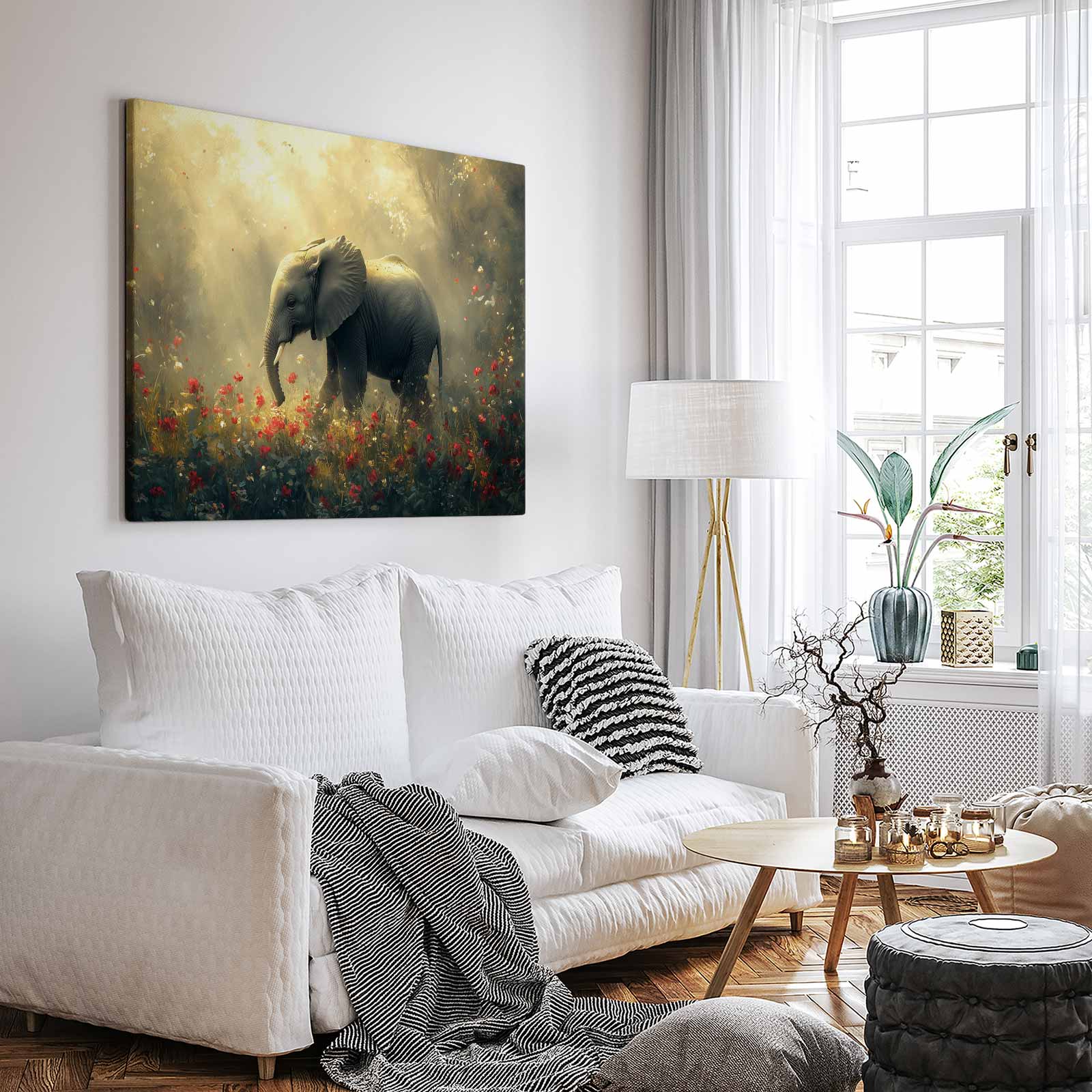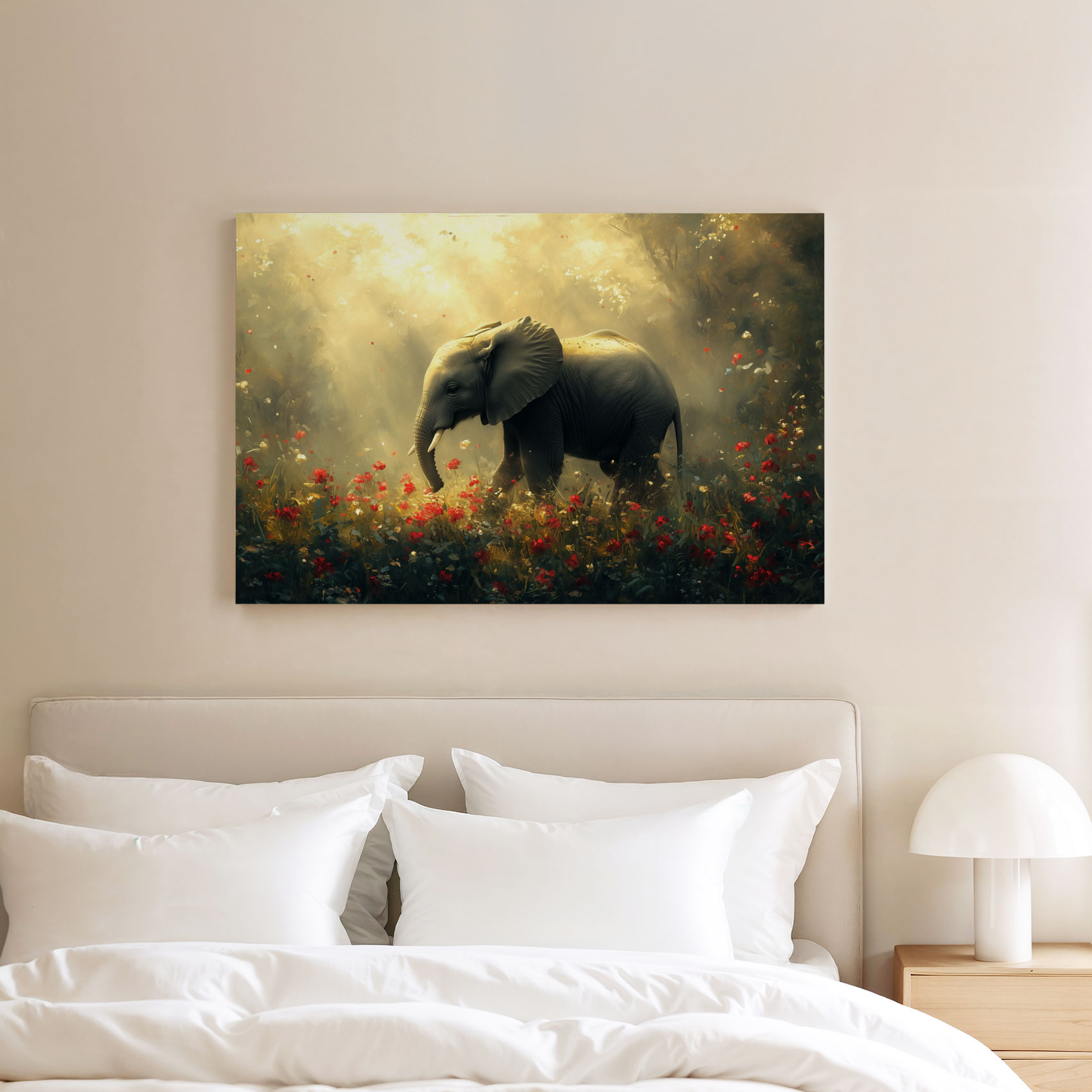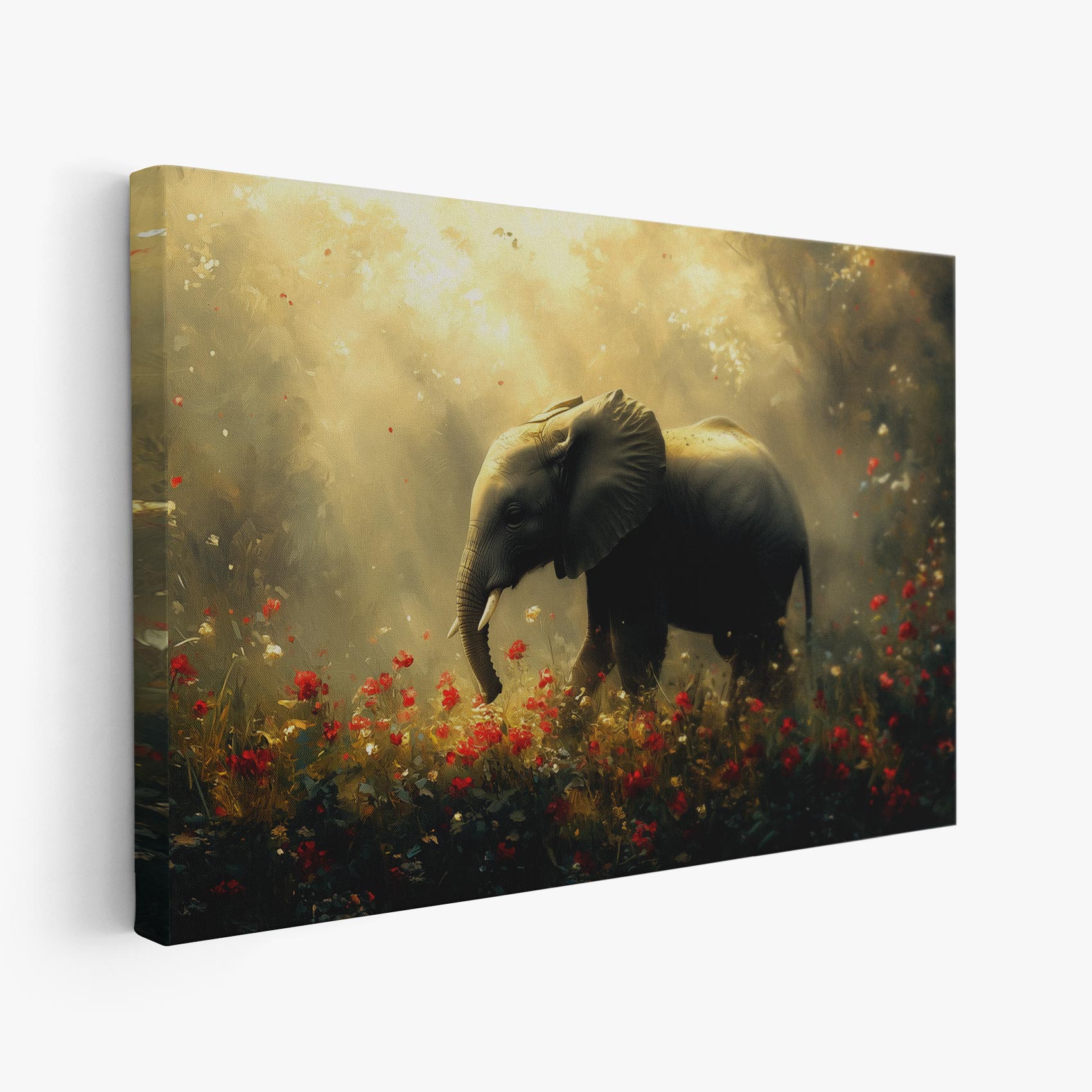 Majestueuze olifant in bloemenveld