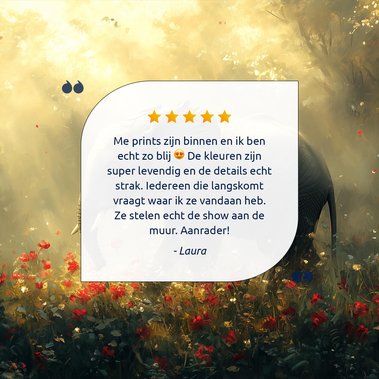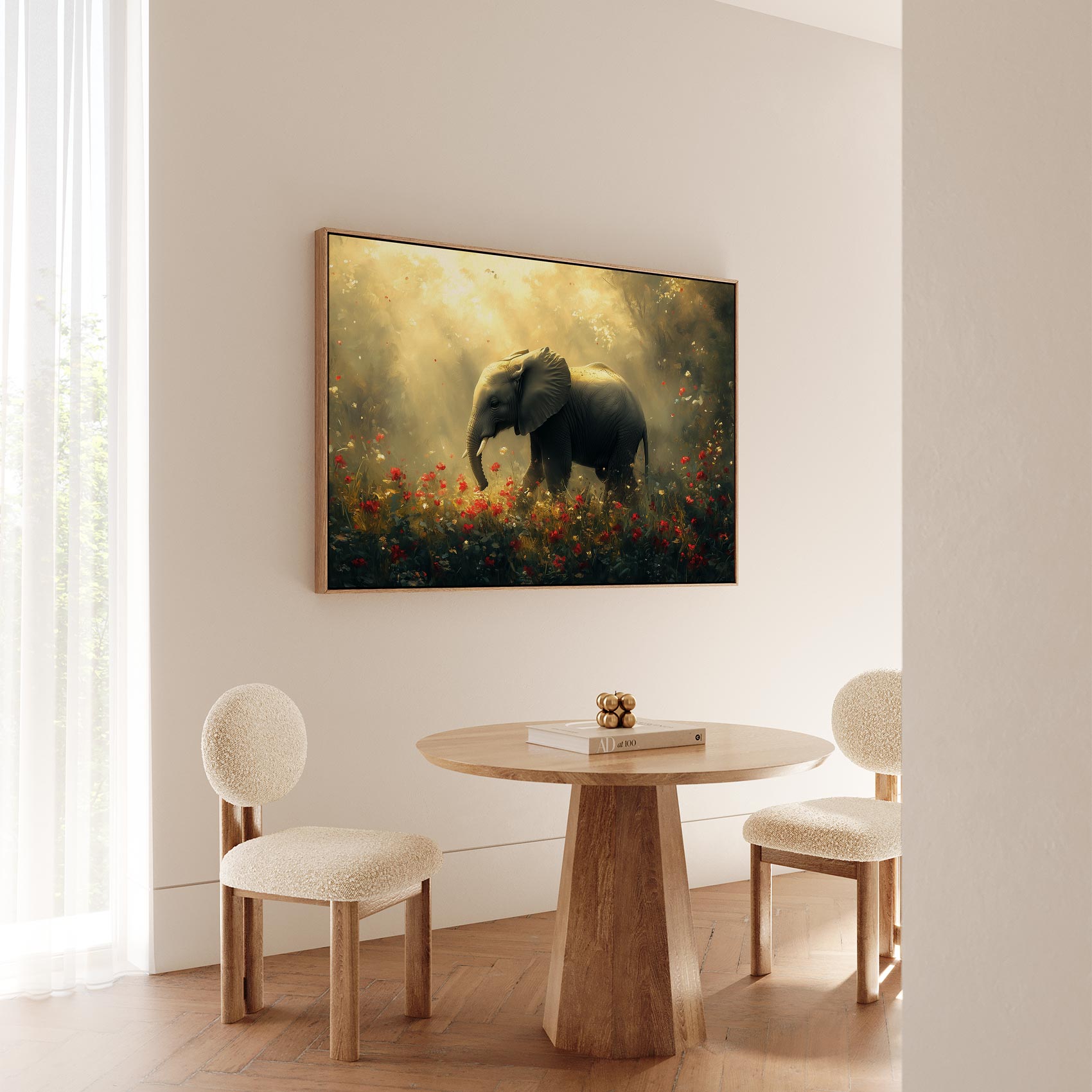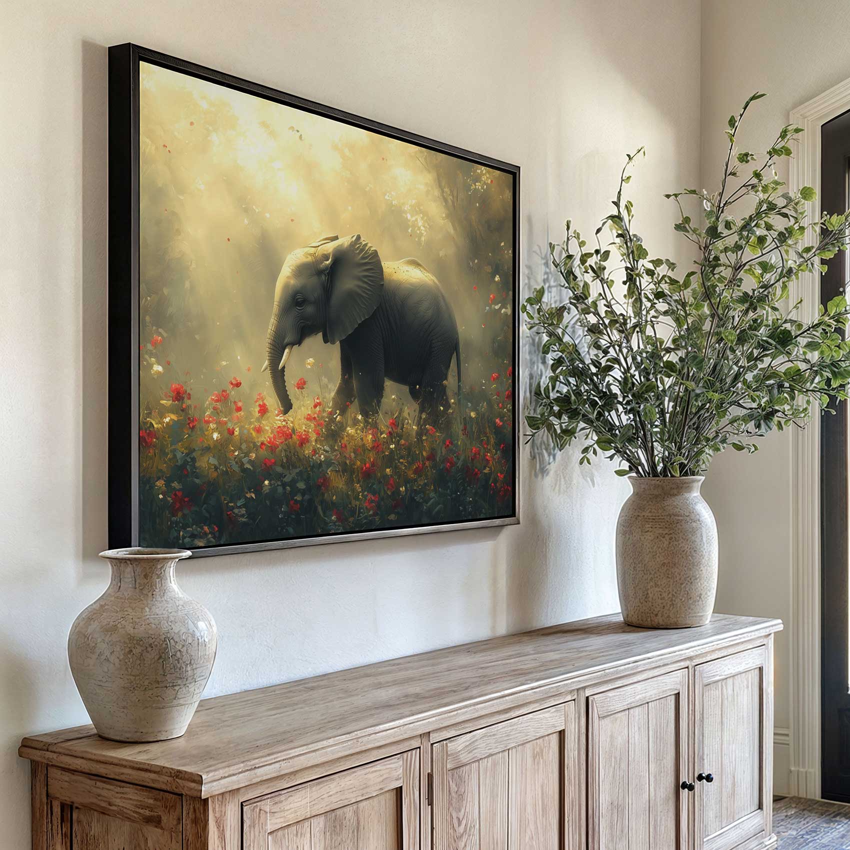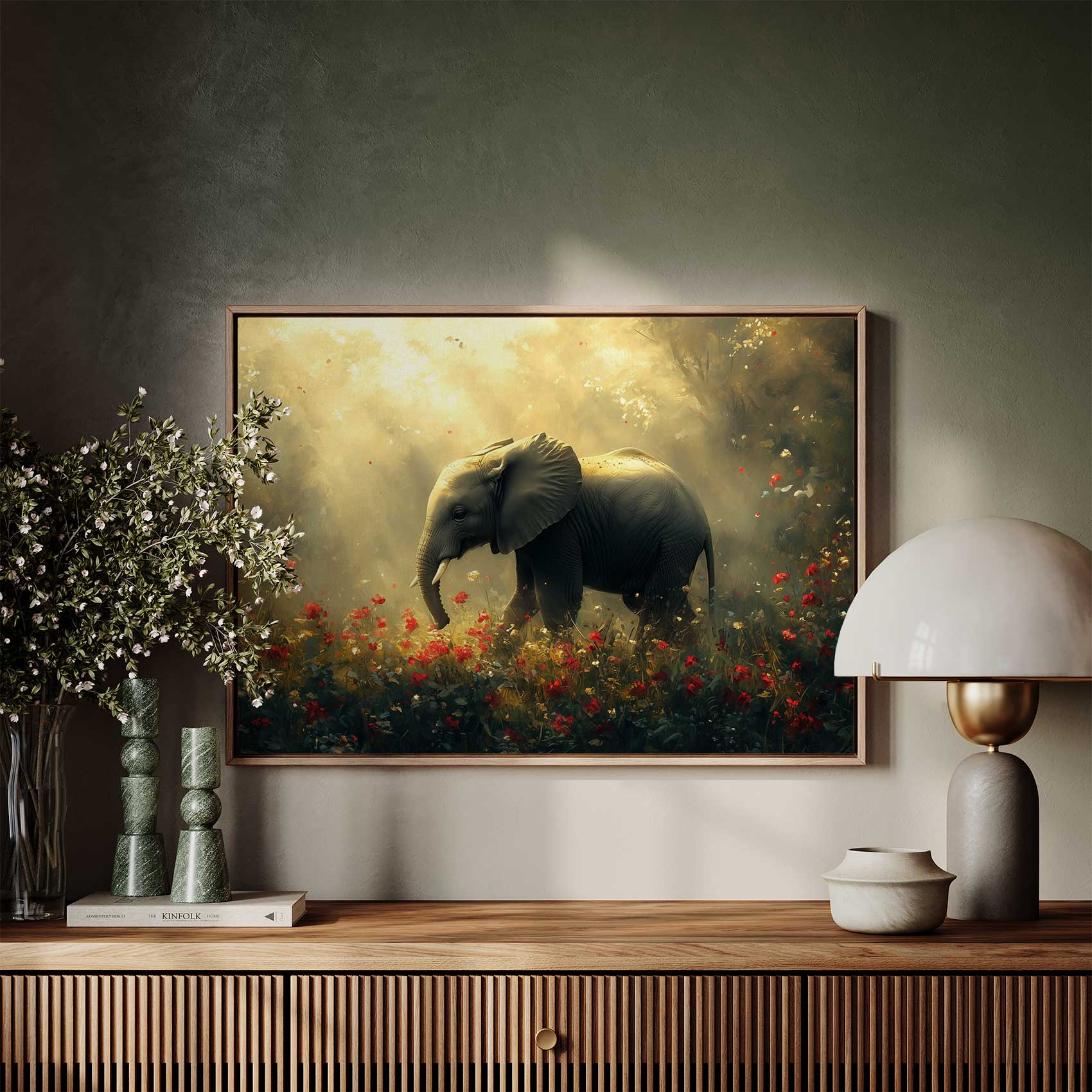 Majestueuze olifant in bloemenveld