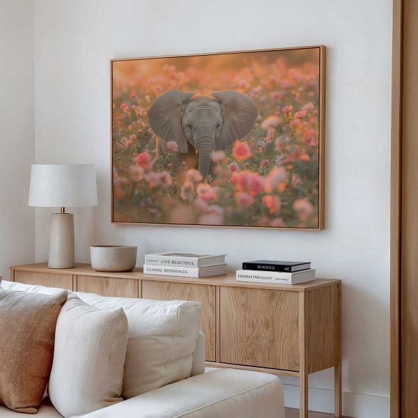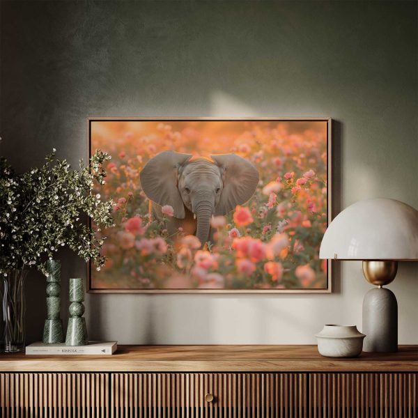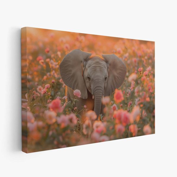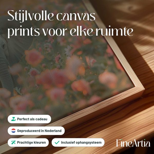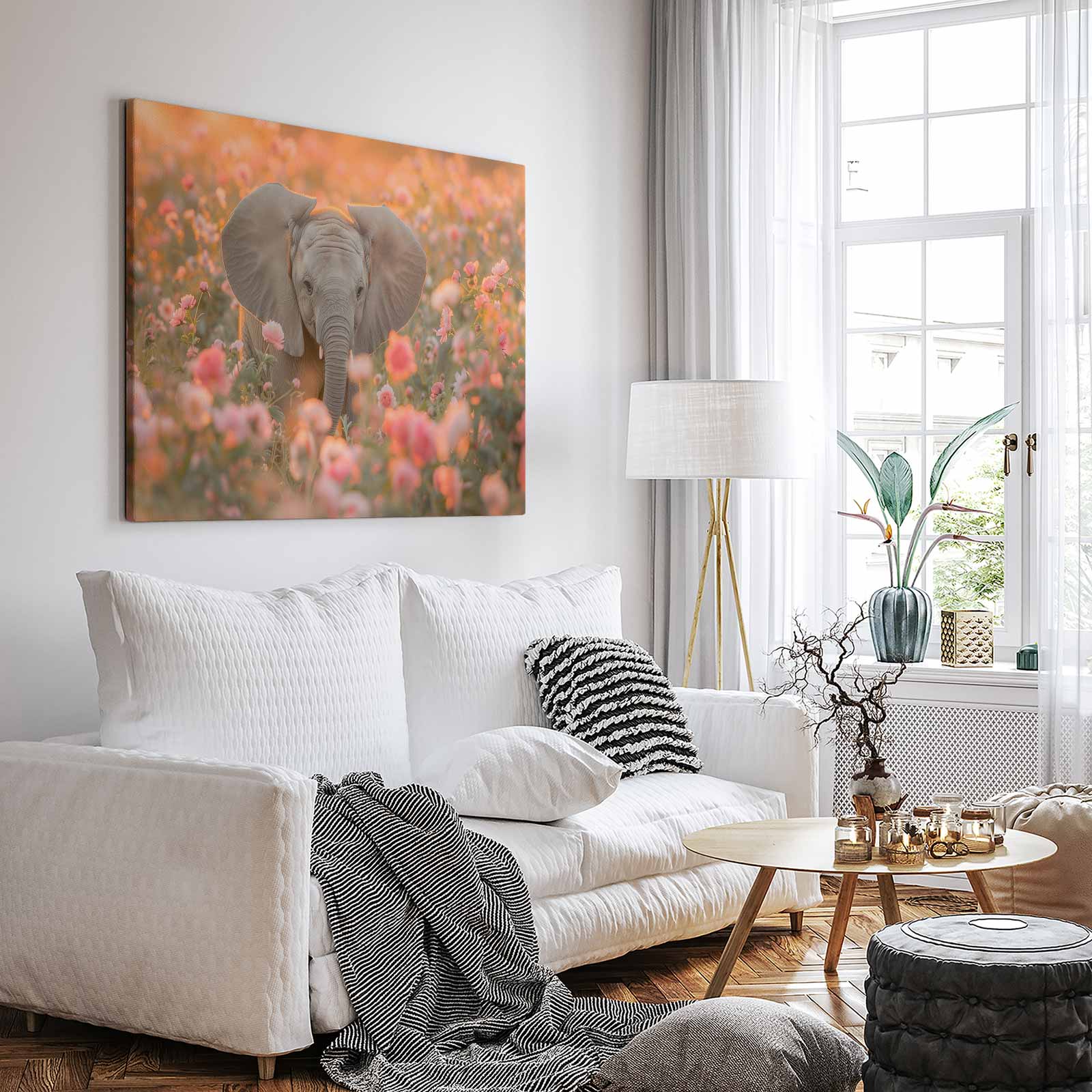 Terug naar collectie Canvas Majestueuze olifant in bloemenveld
