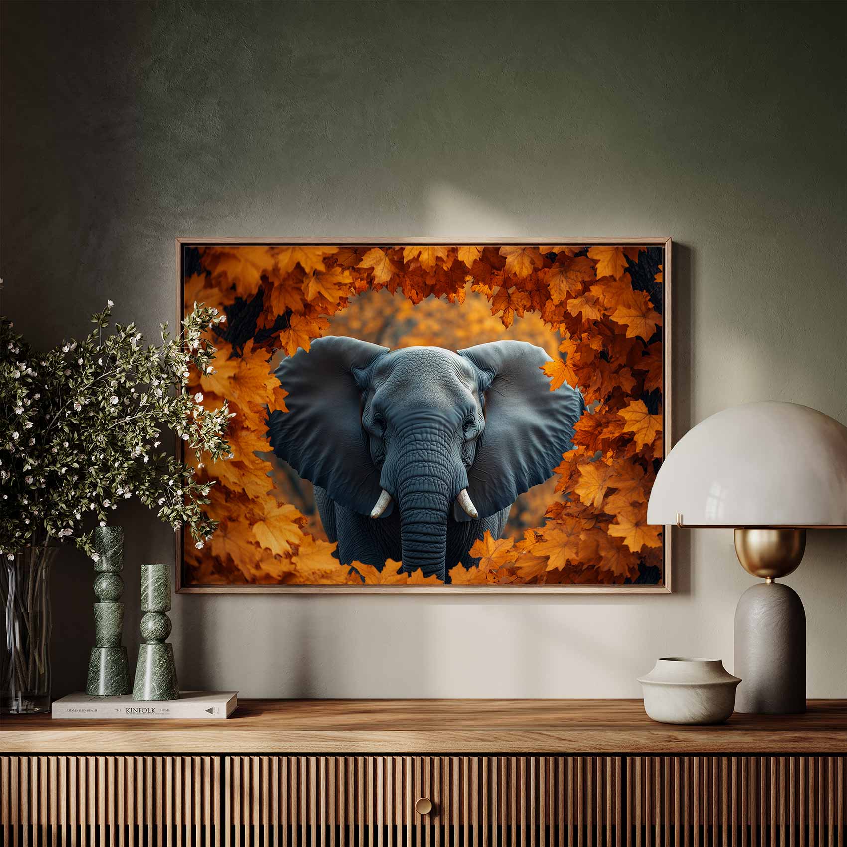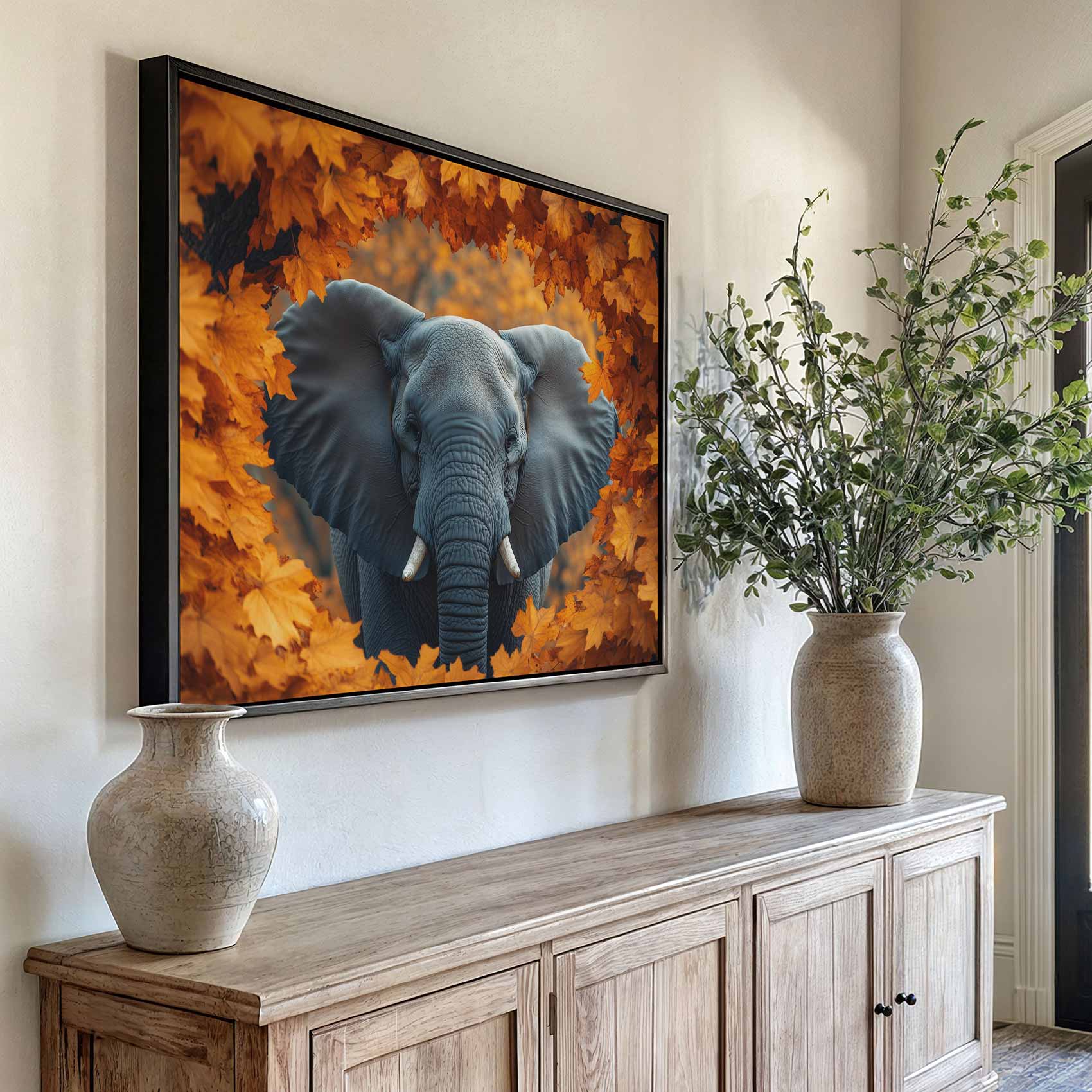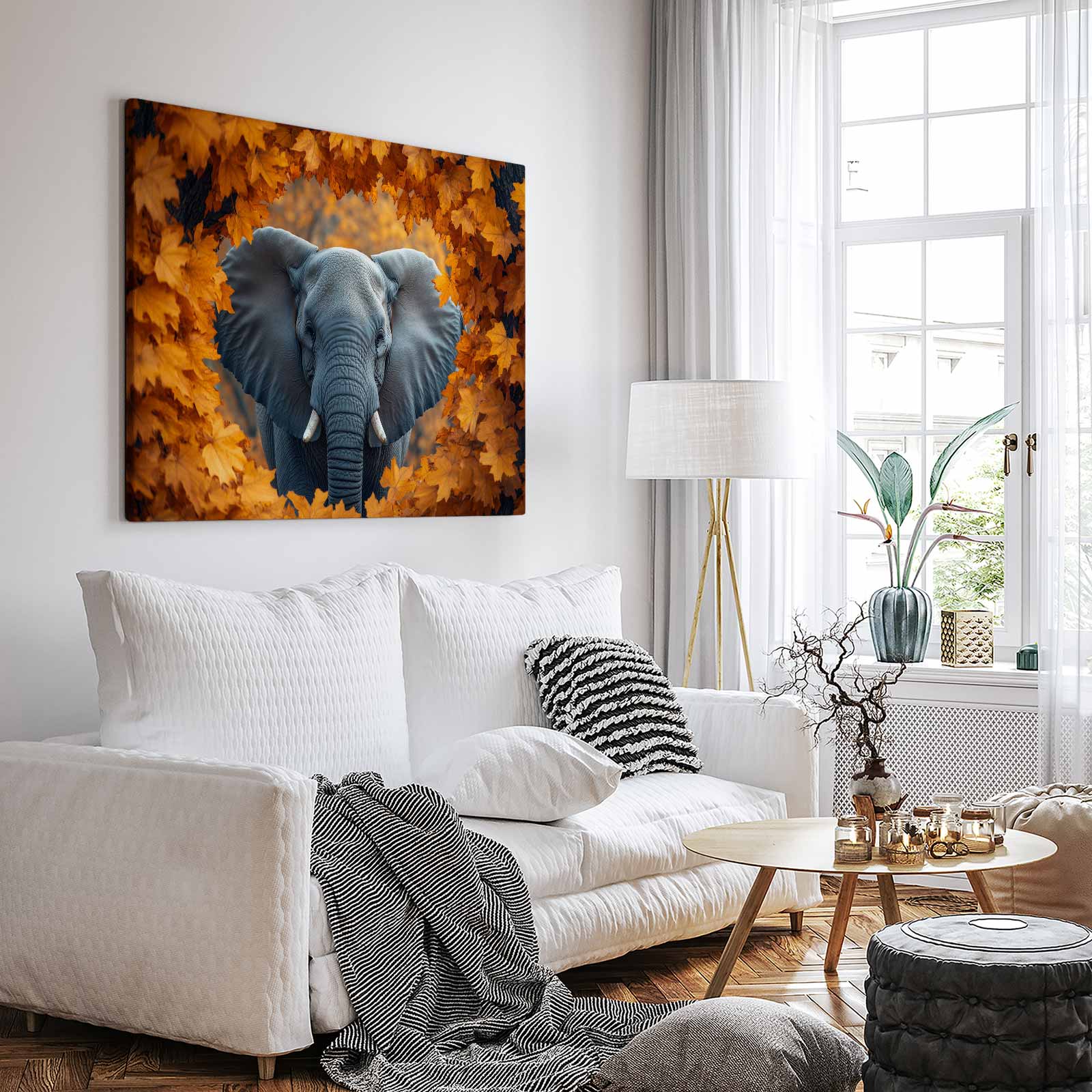 Terug naar collectie Canvas Majestueuze olifant in herfst