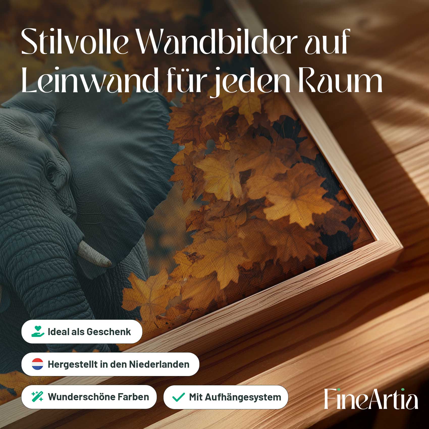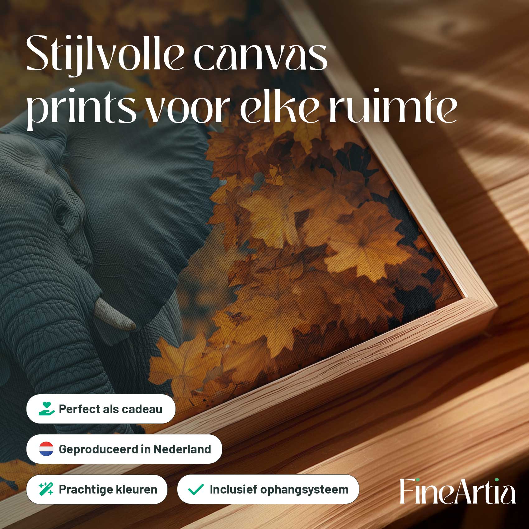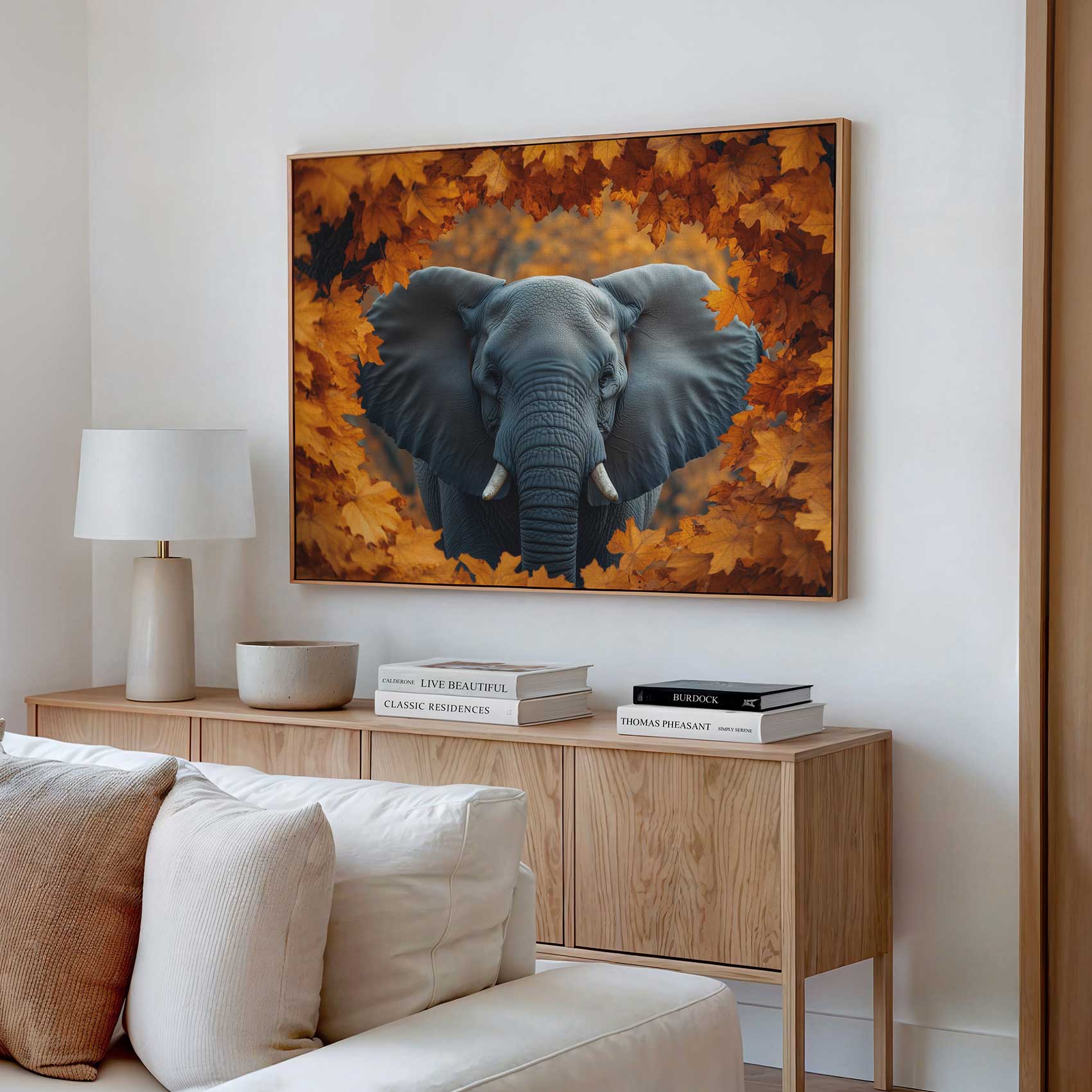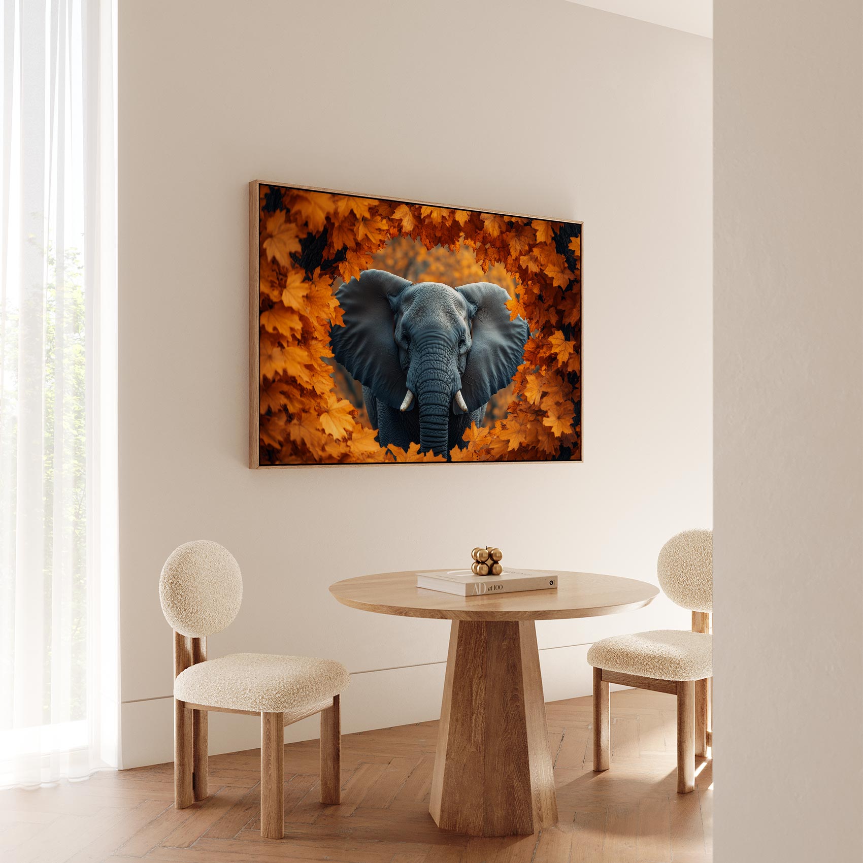Terug naar collectie Canvas Majestueuze olifant in herfst