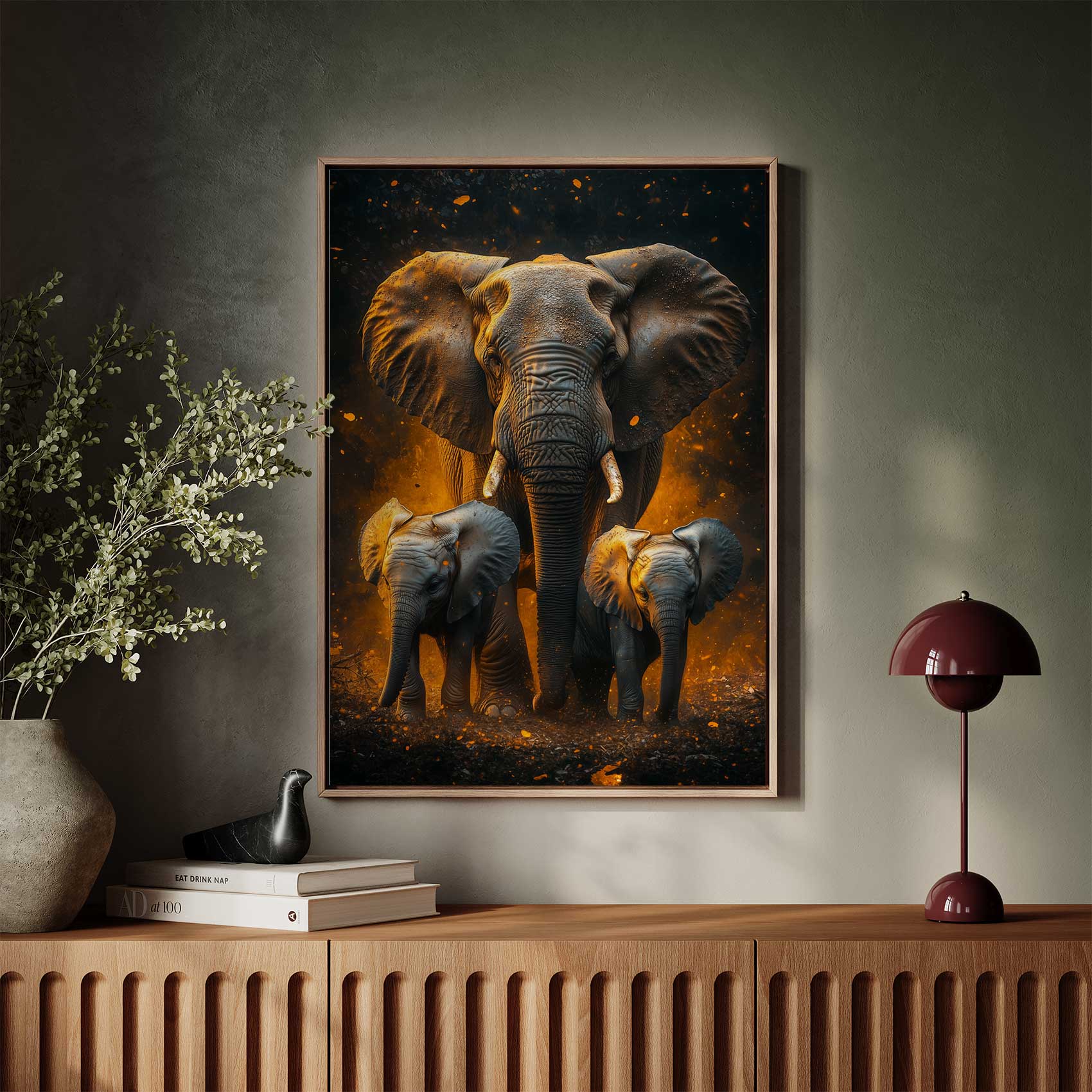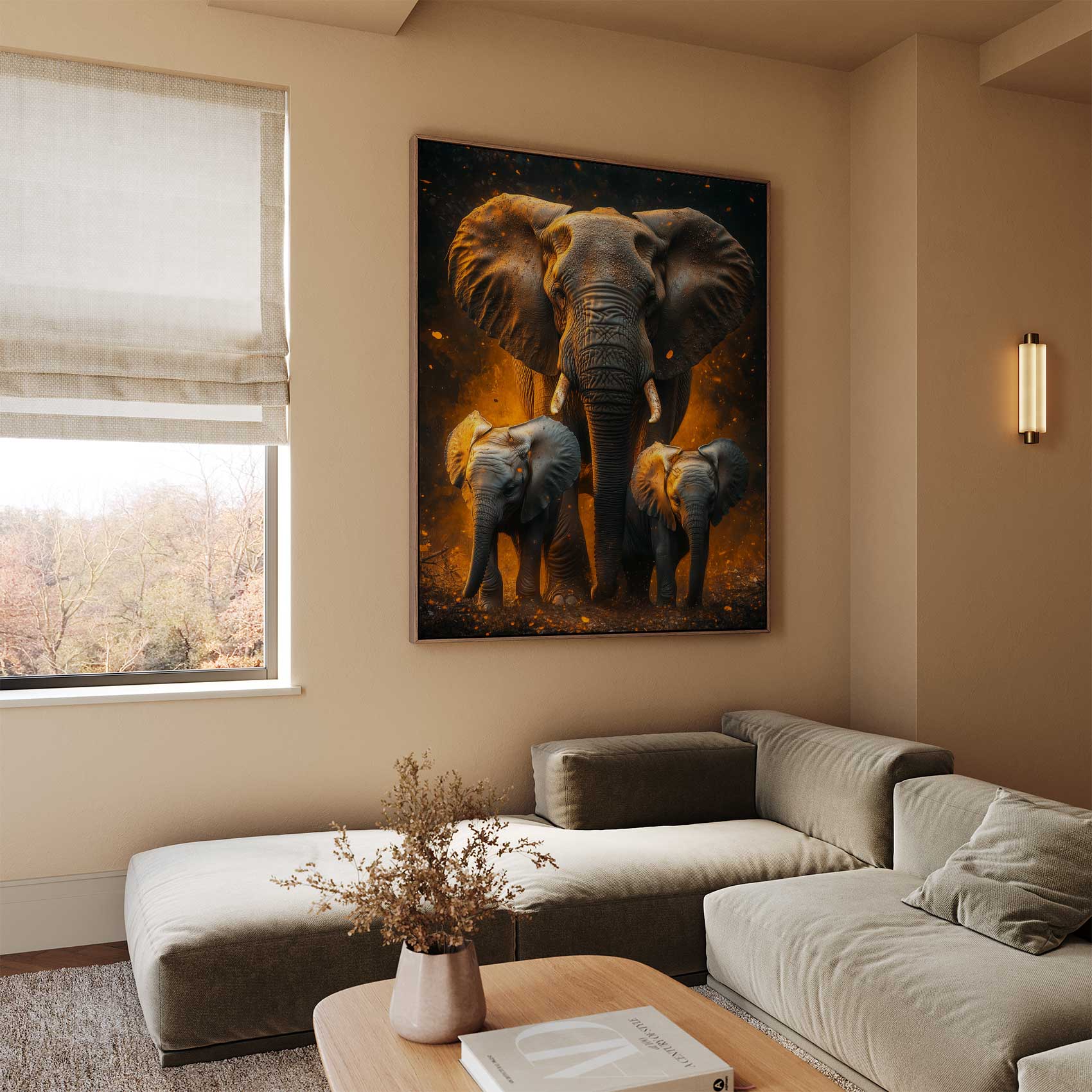 Majestueuze olifant in oranje