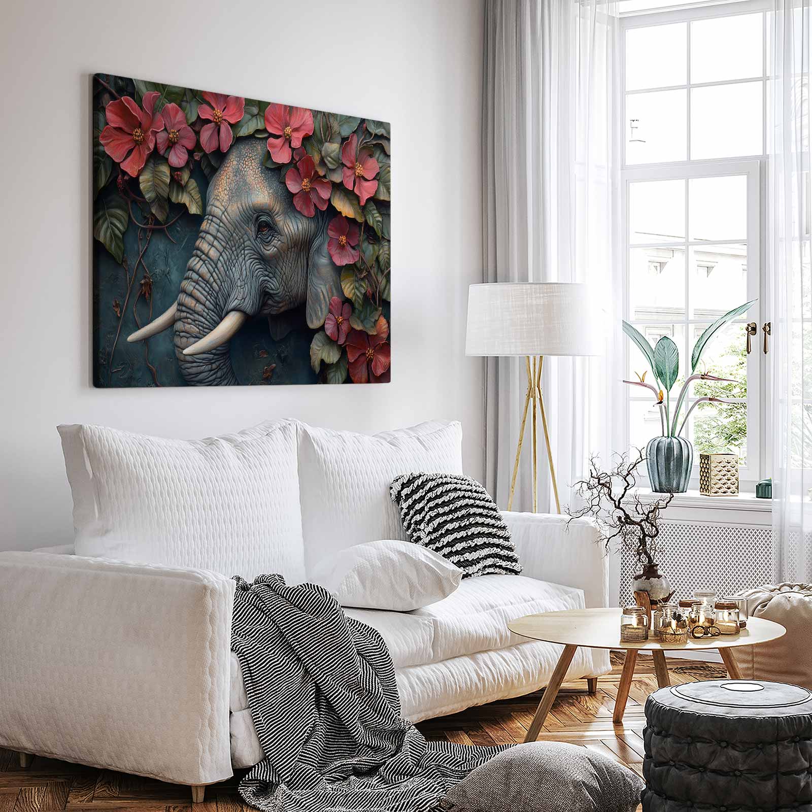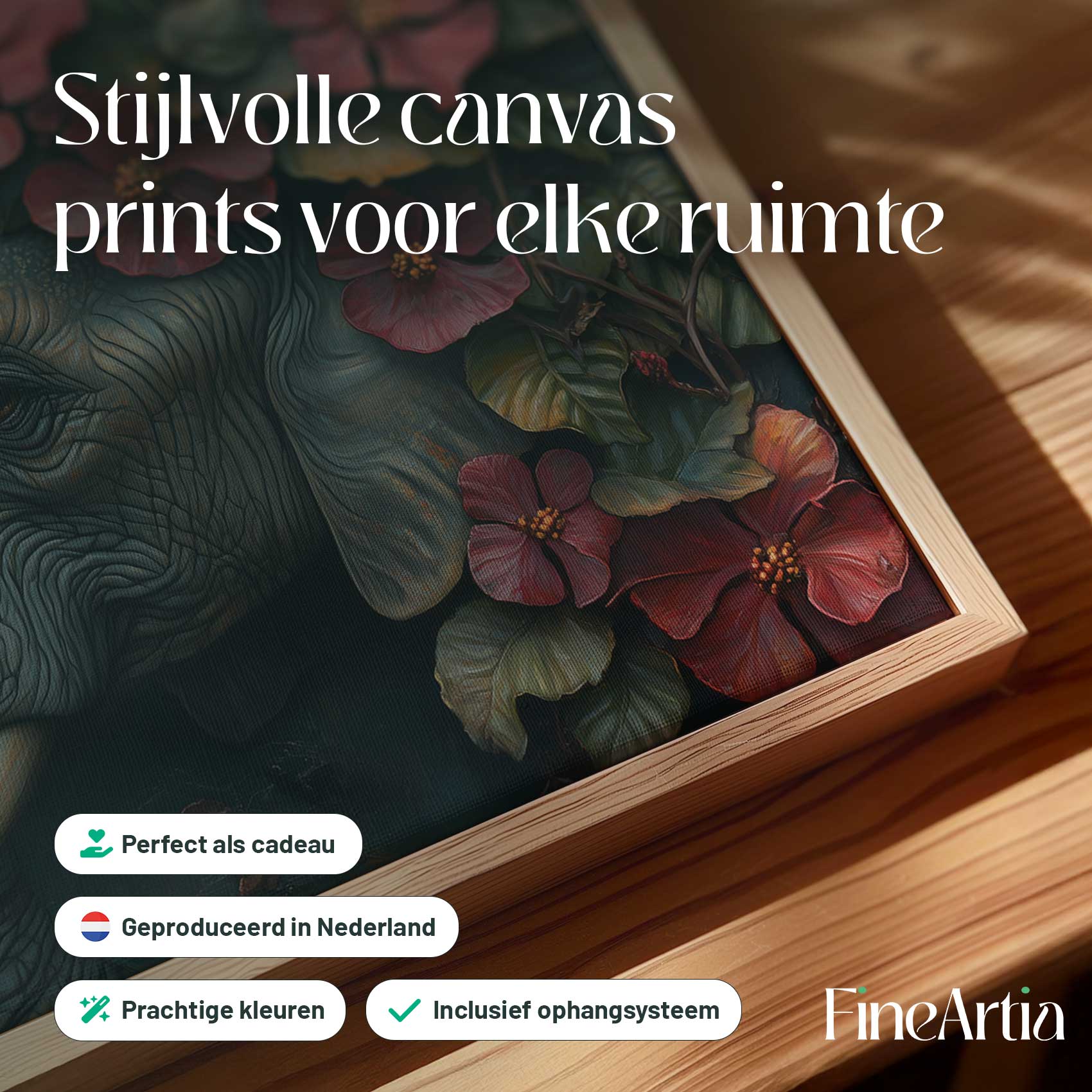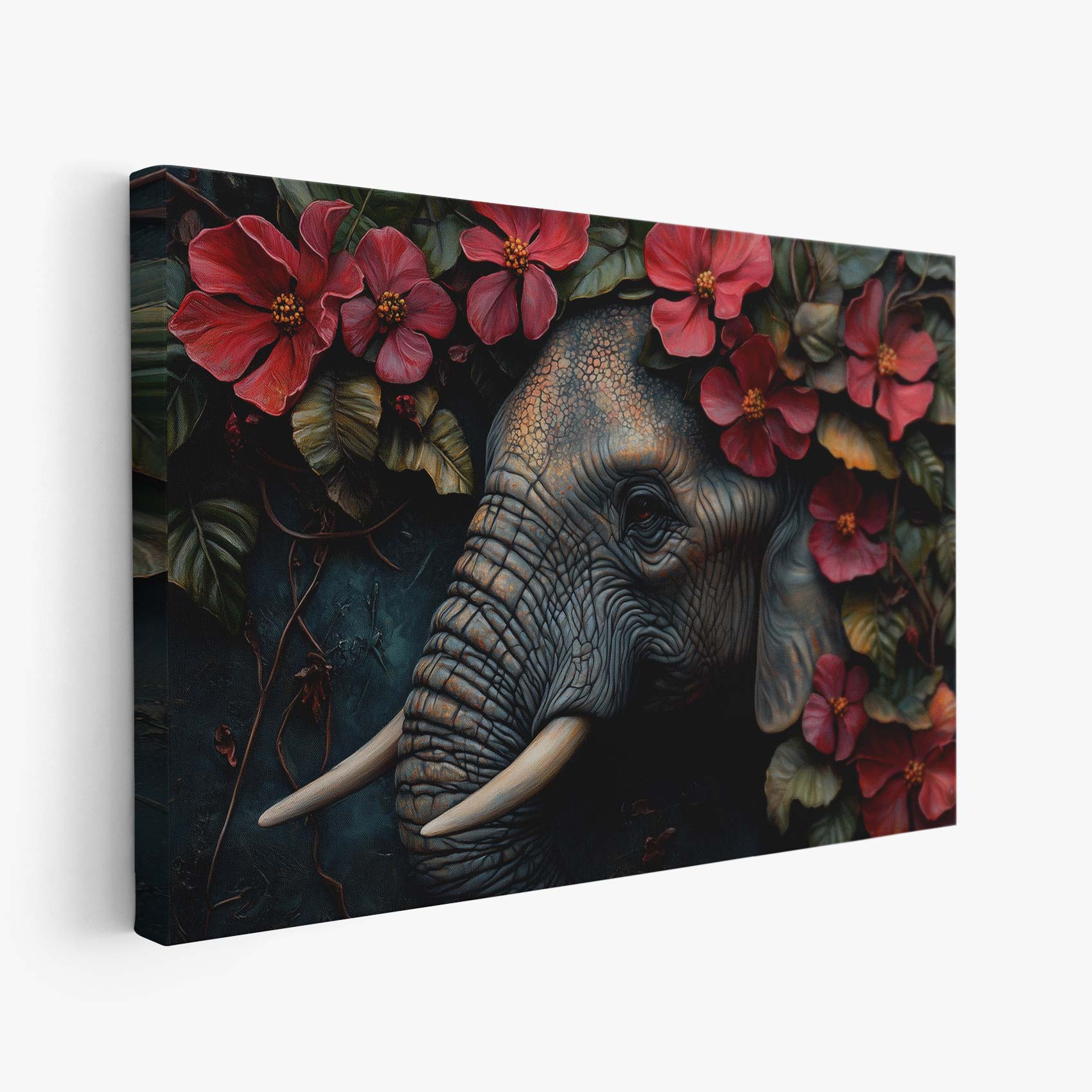Terug naar collectie Canvas Majestueuze olifant tussen bloemen
