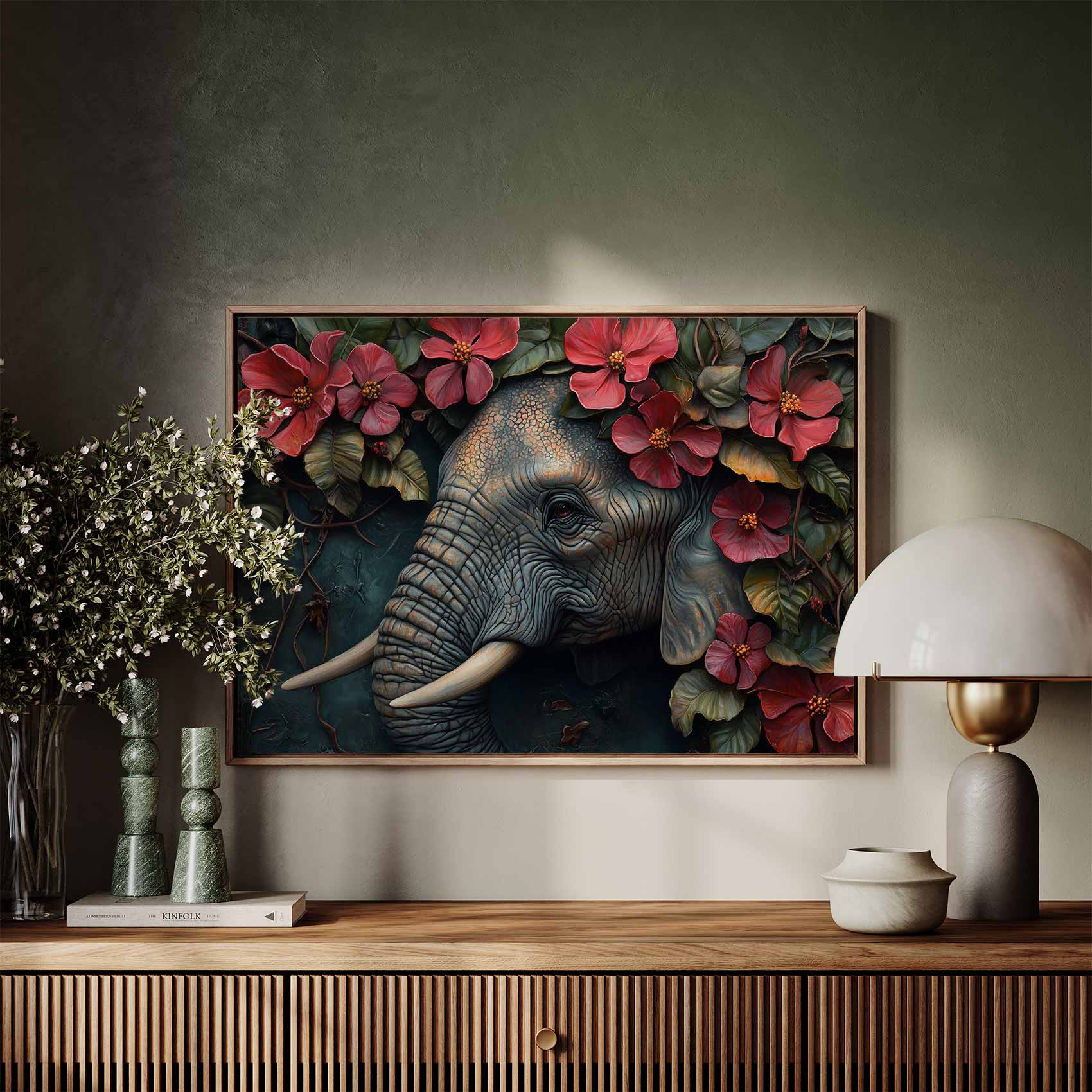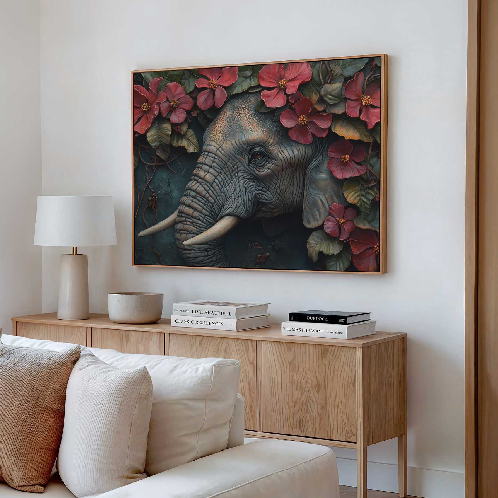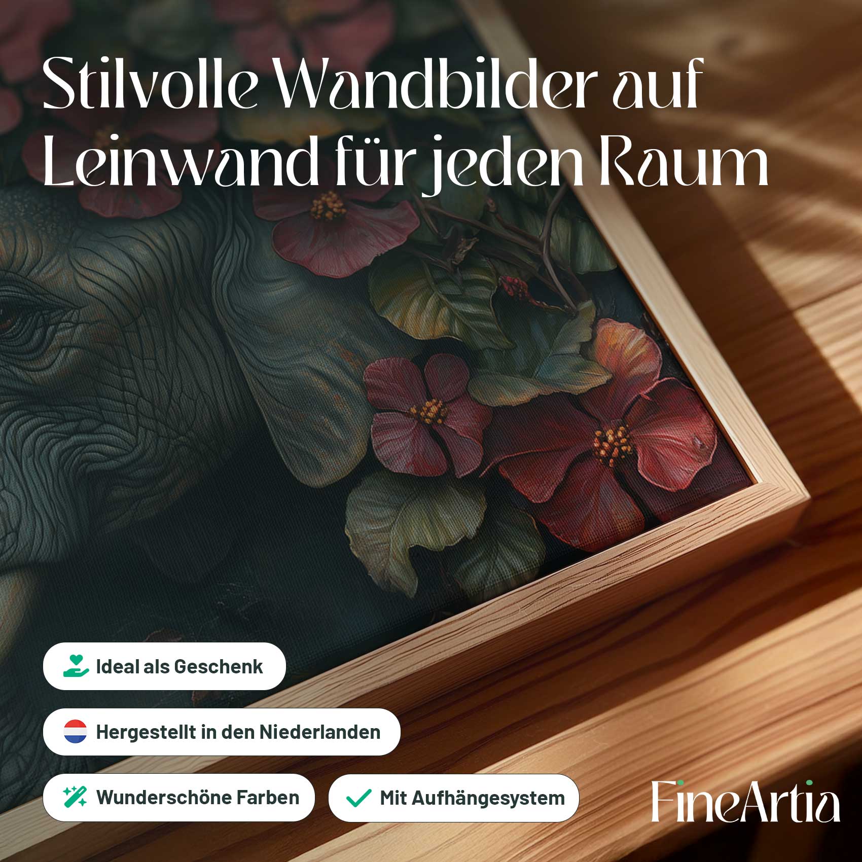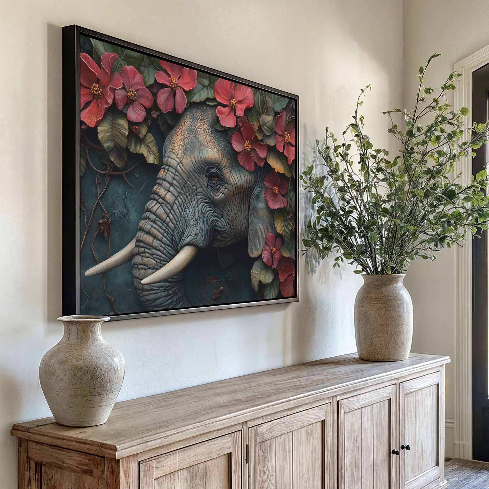 Terug naar collectie Canvas Majestueuze olifant tussen bloemen