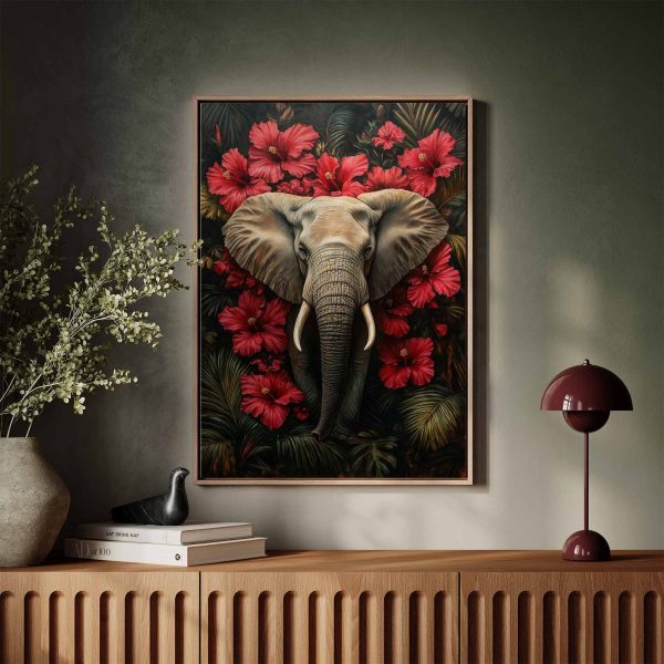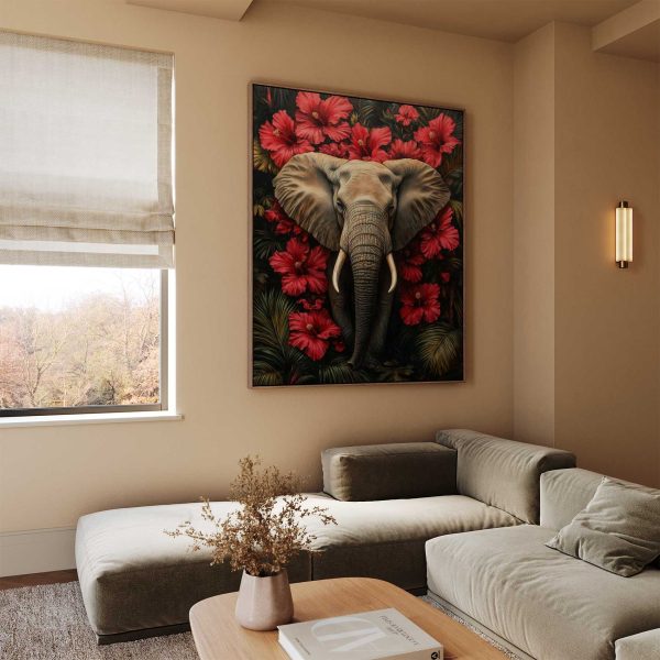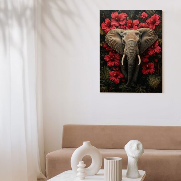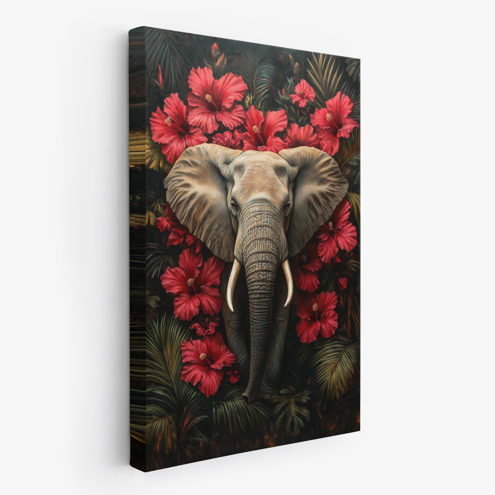 Terug naar collectie Canvas Majestueuze olifant tussen bloemen