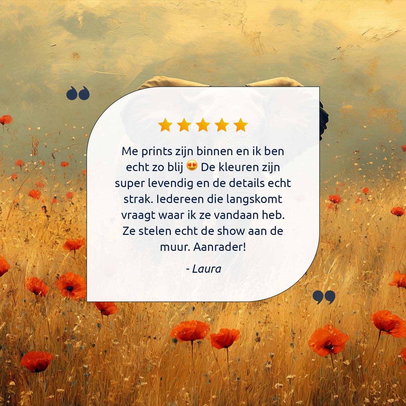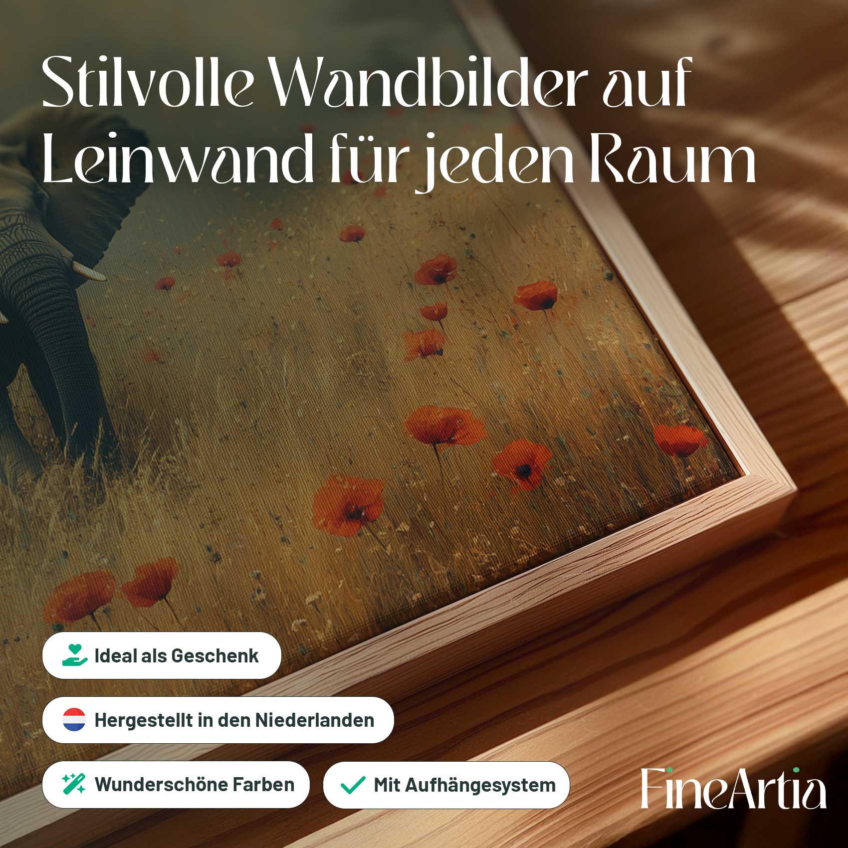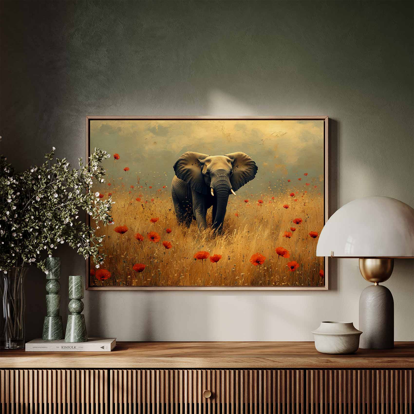 Terug naar collectie Canvas Majestueuze olifant tussen klaprozen