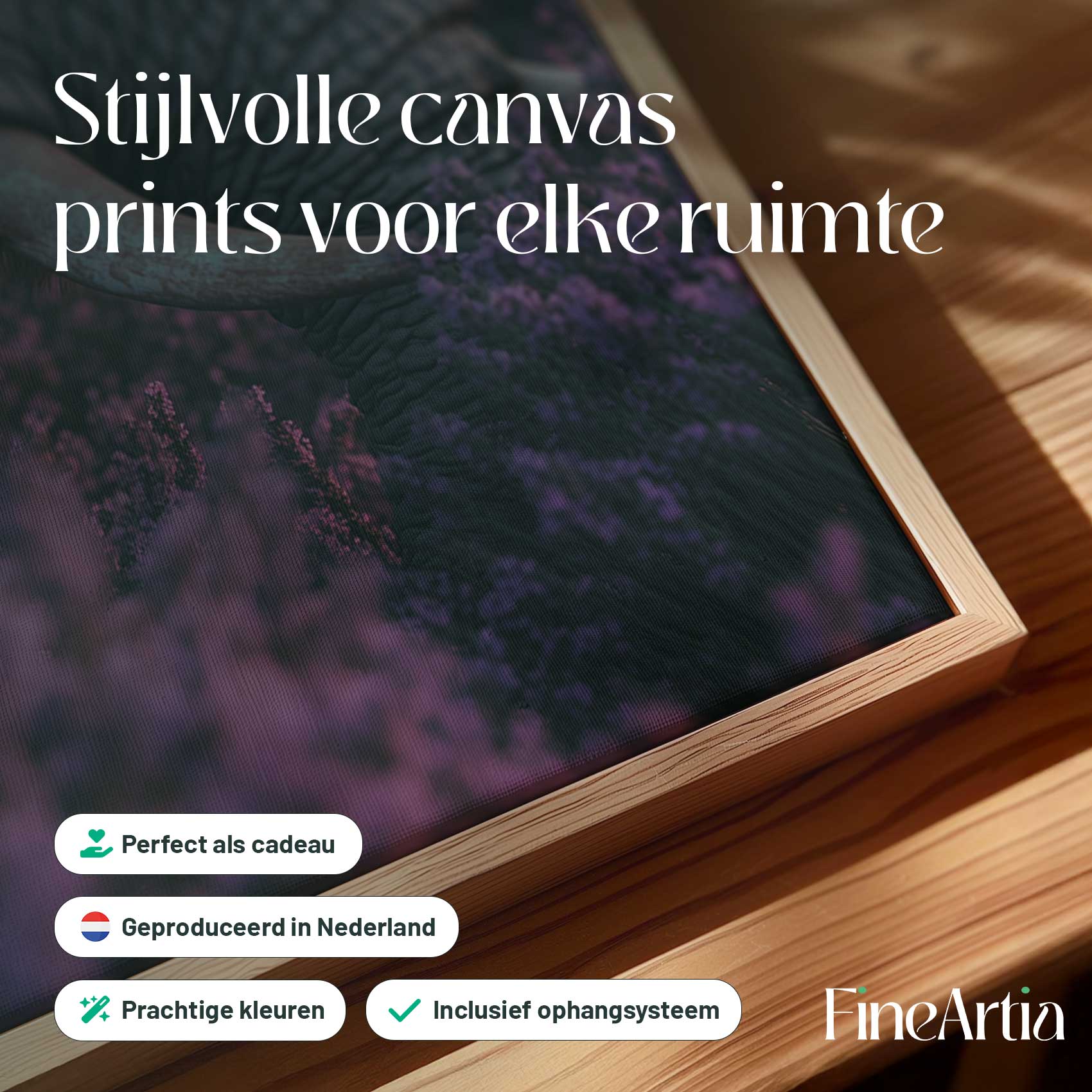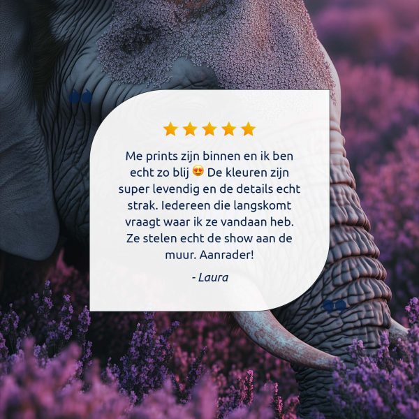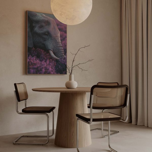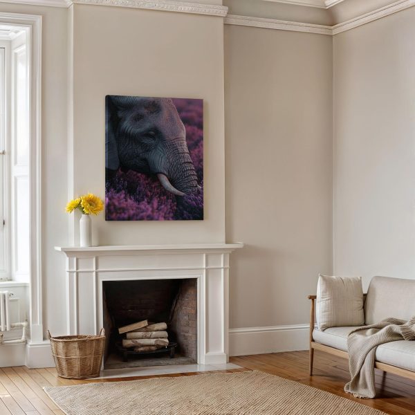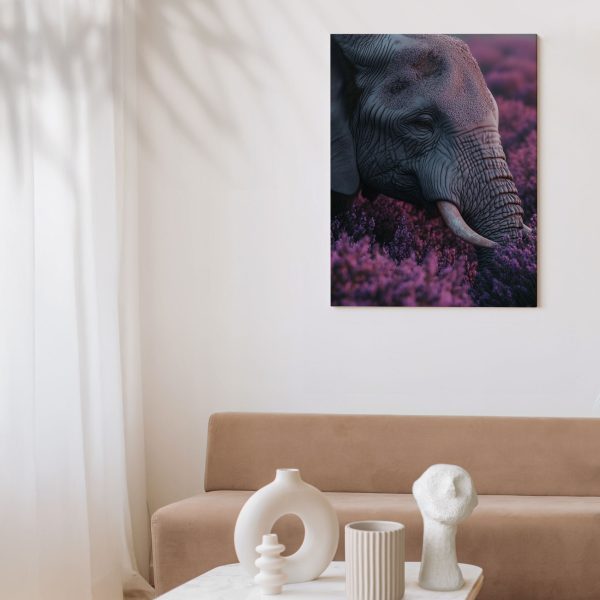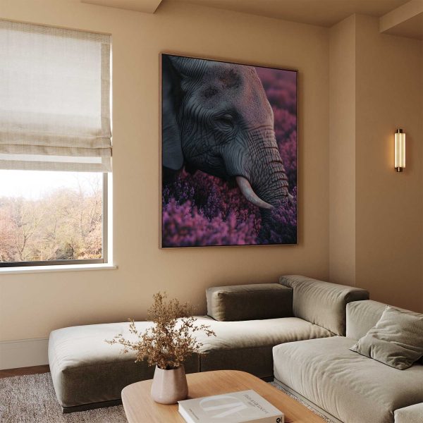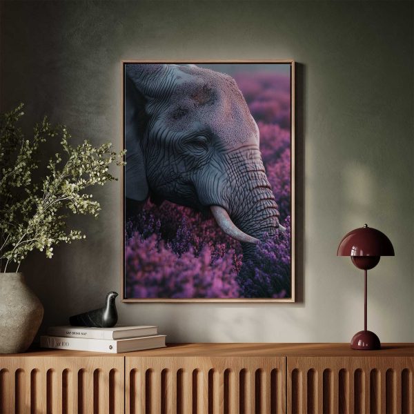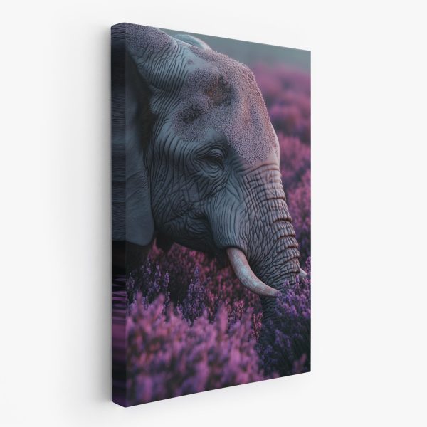 Majestueuze olifant tussen paarse bloemen