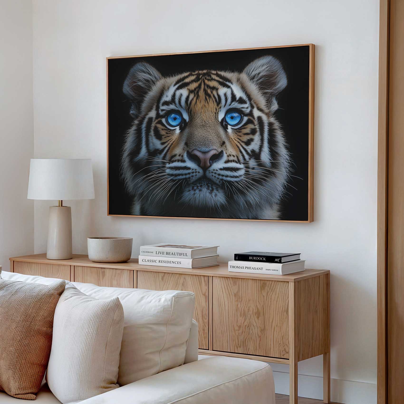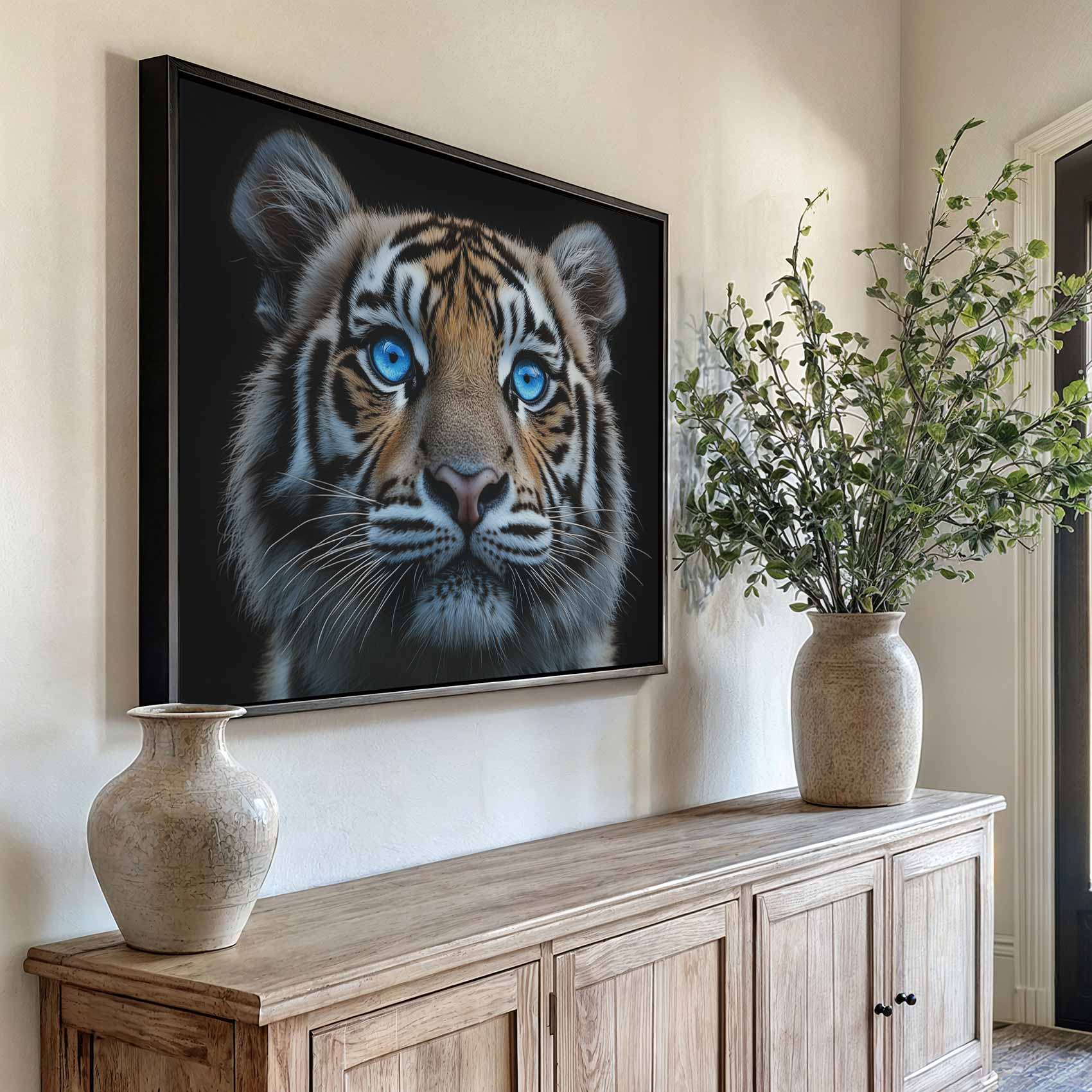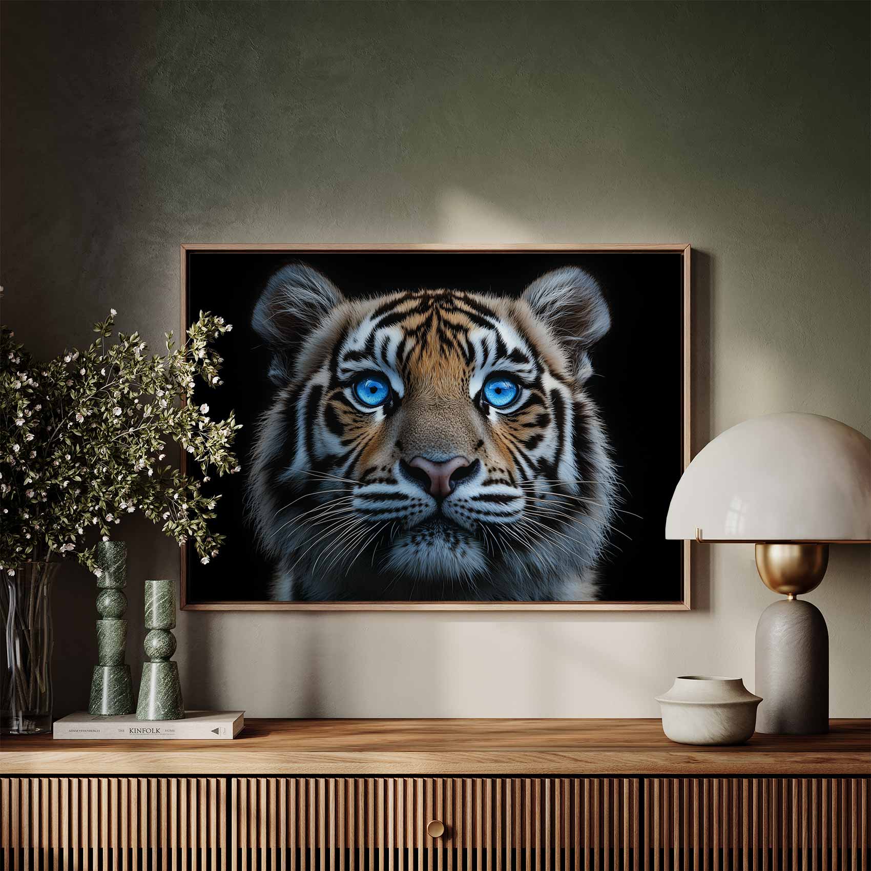 Majestueuze tijger met blauwe ogen