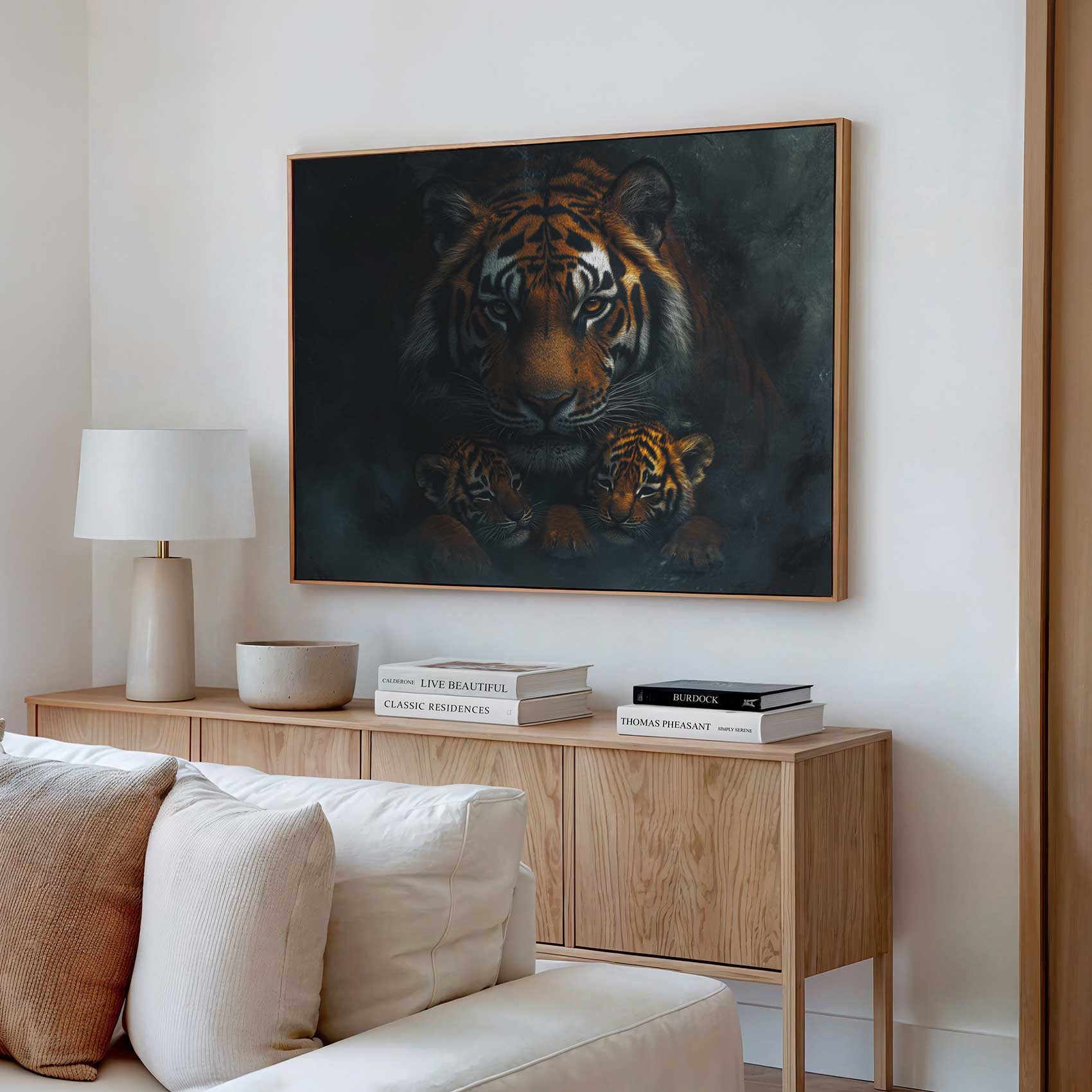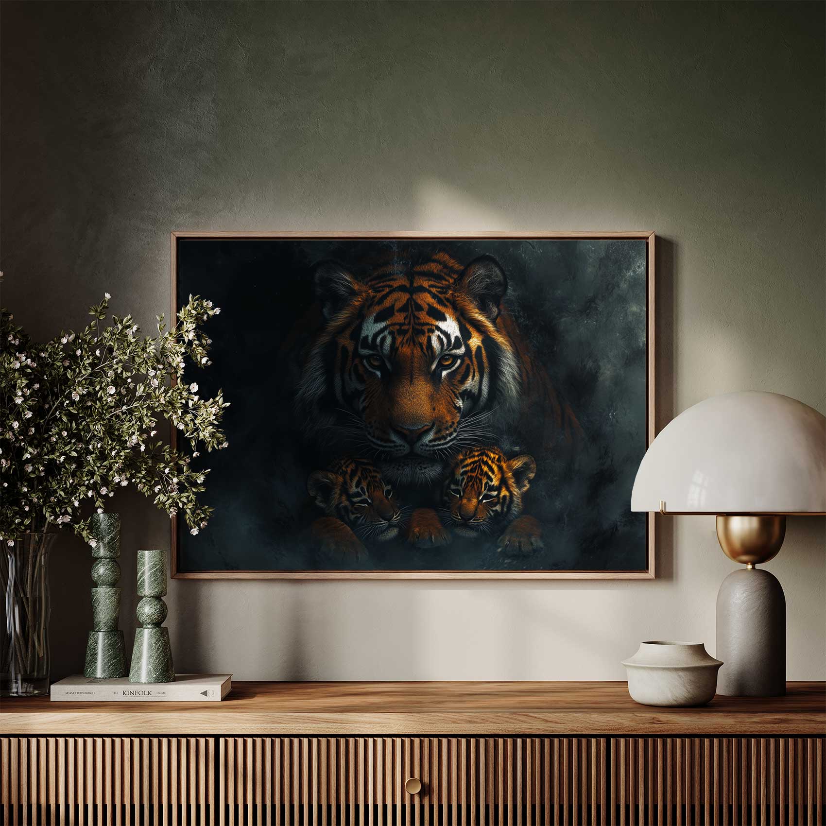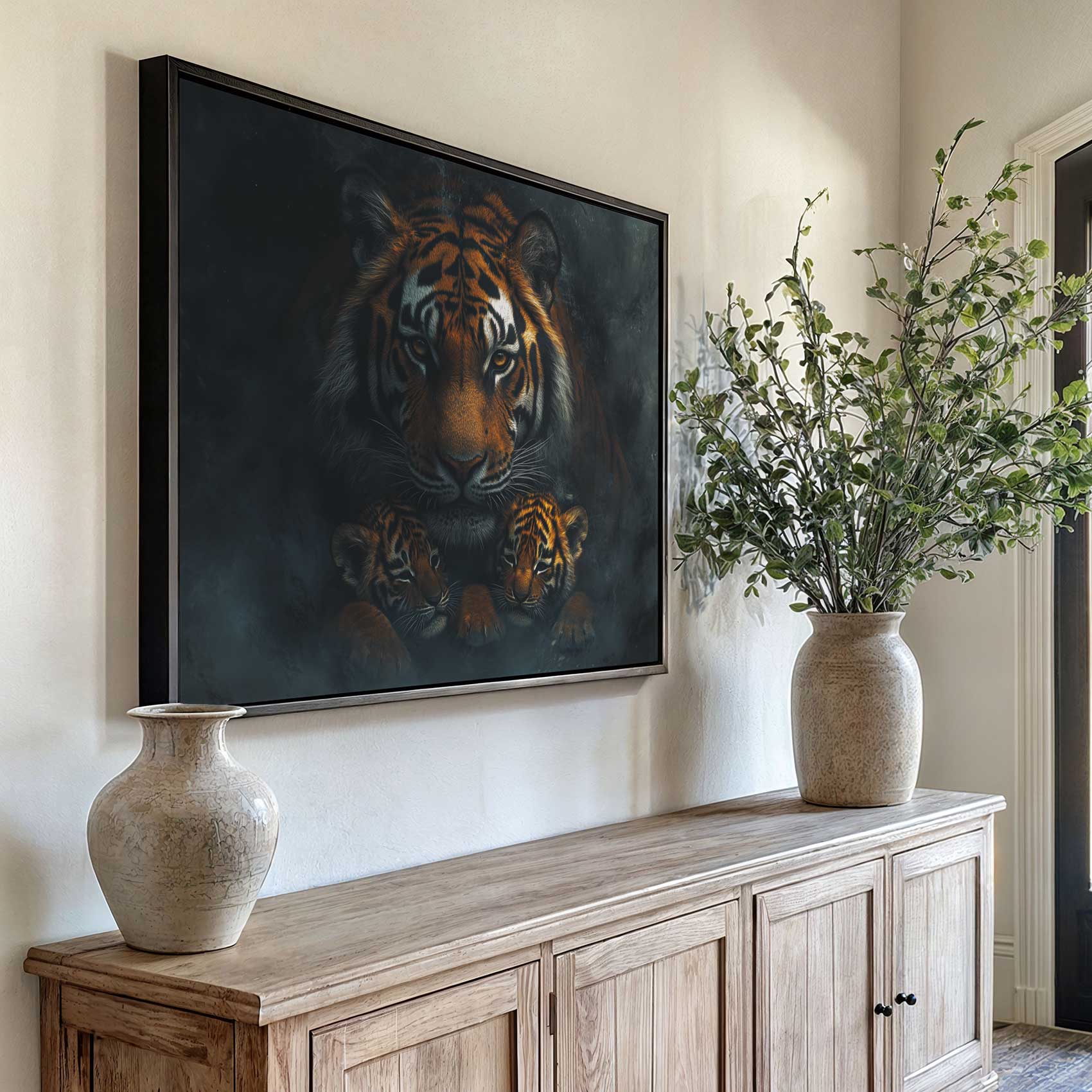 Terug naar collectie Canvas Majestueuze tijger met welpen