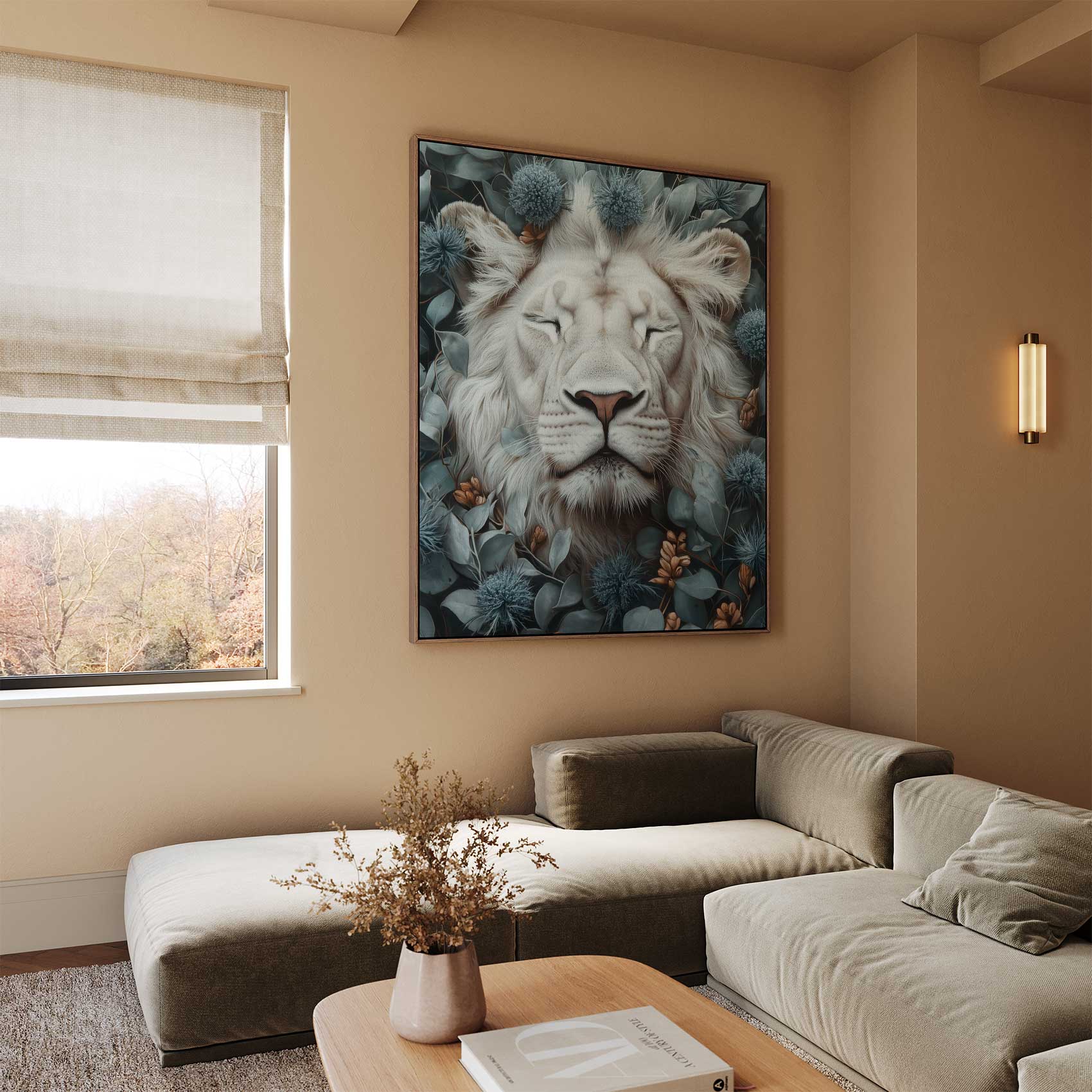 Terug naar collectie Canvas Majestueuze witte leeuw