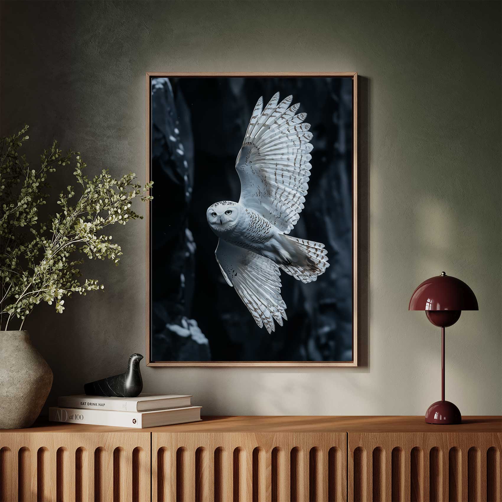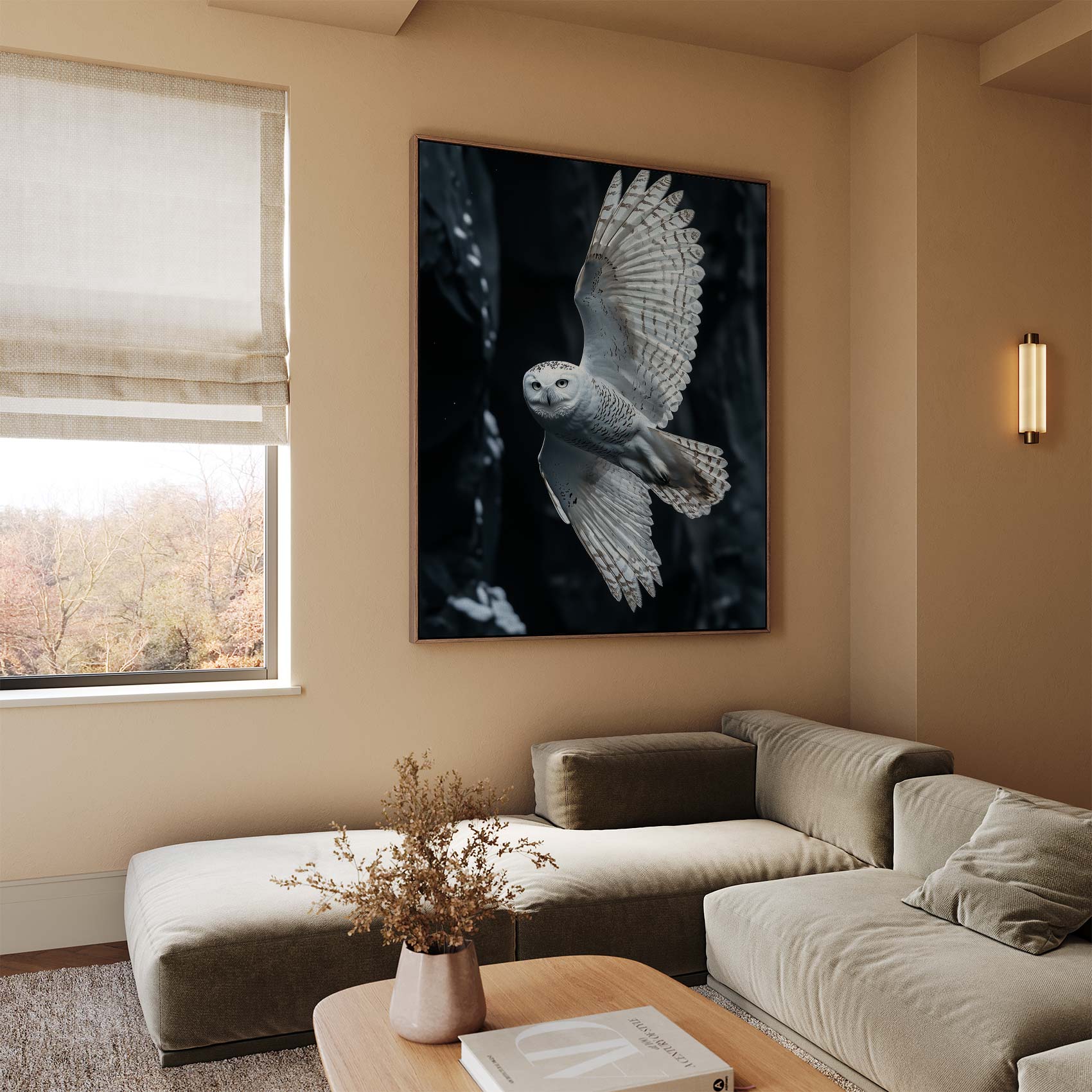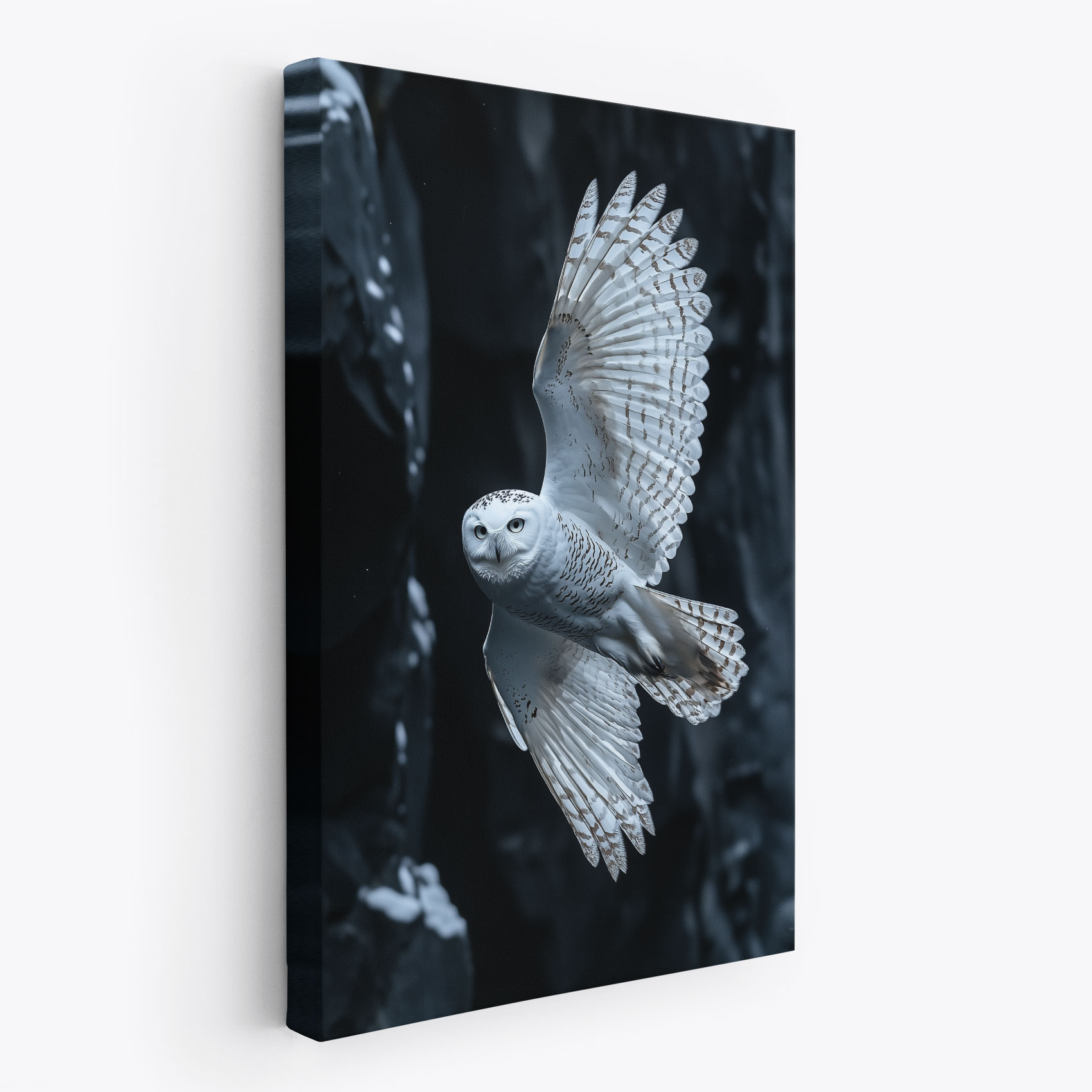 Terug naar collectie Canvas Majestueuze witte uilvlucht