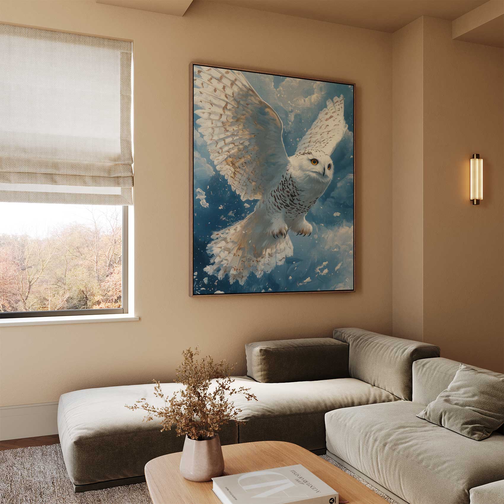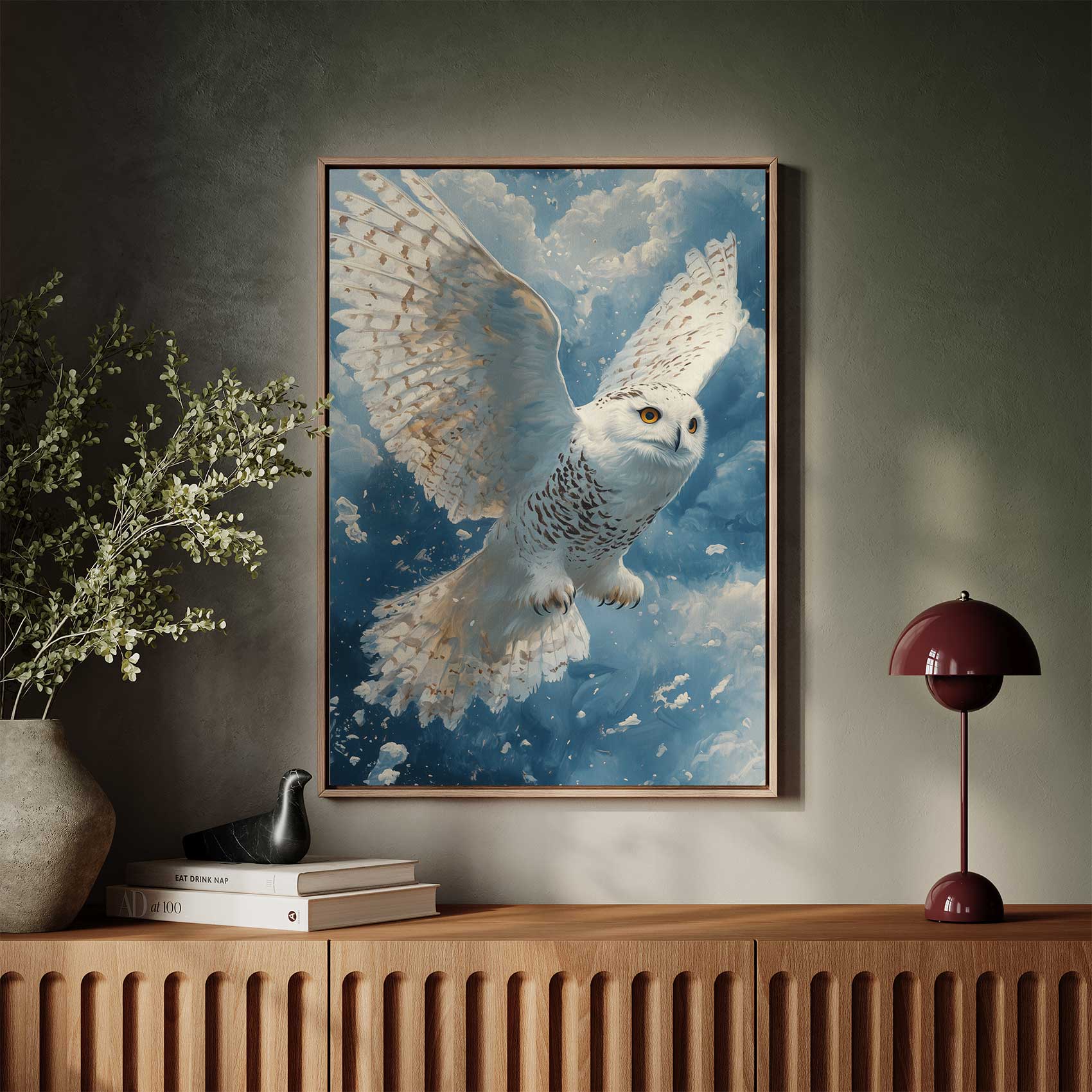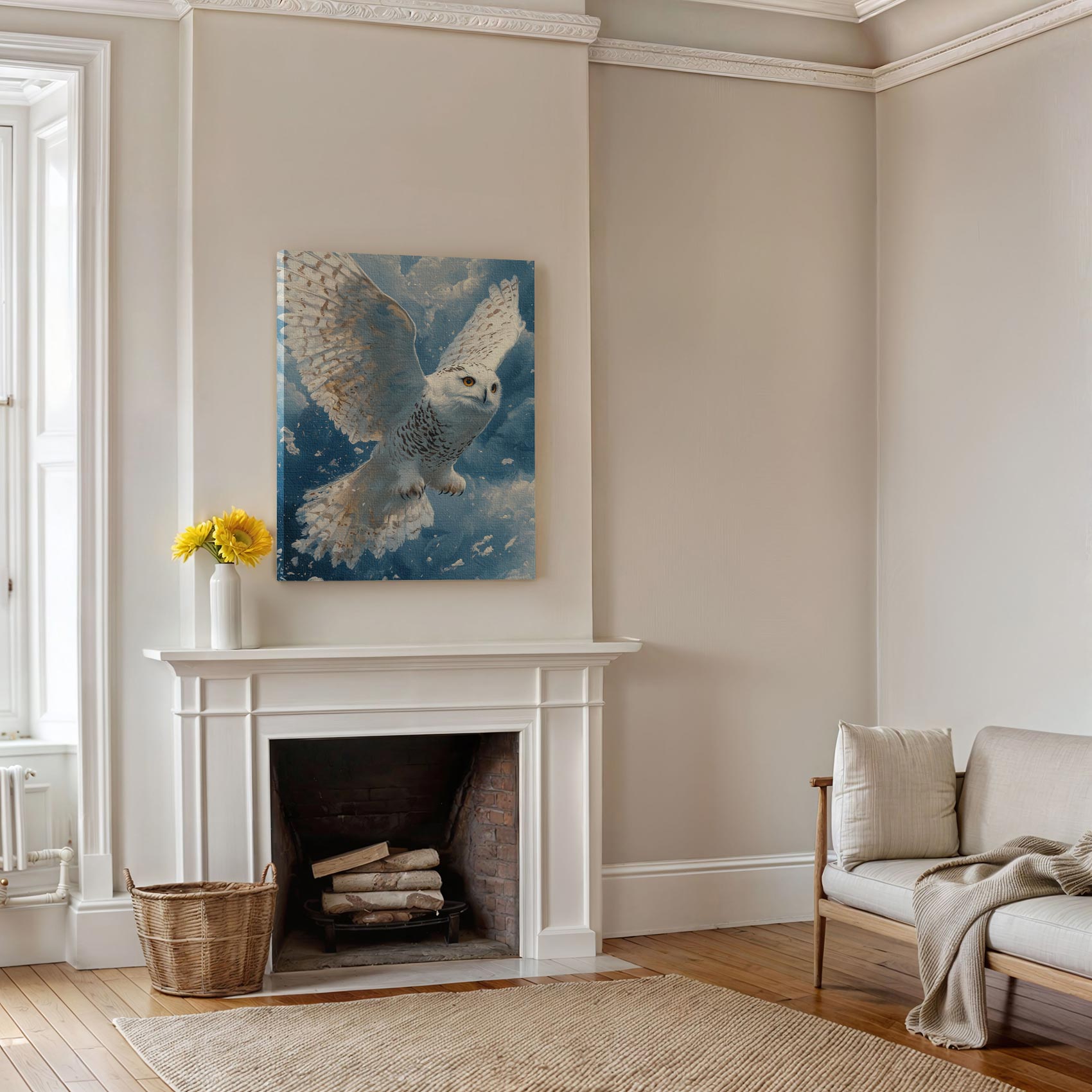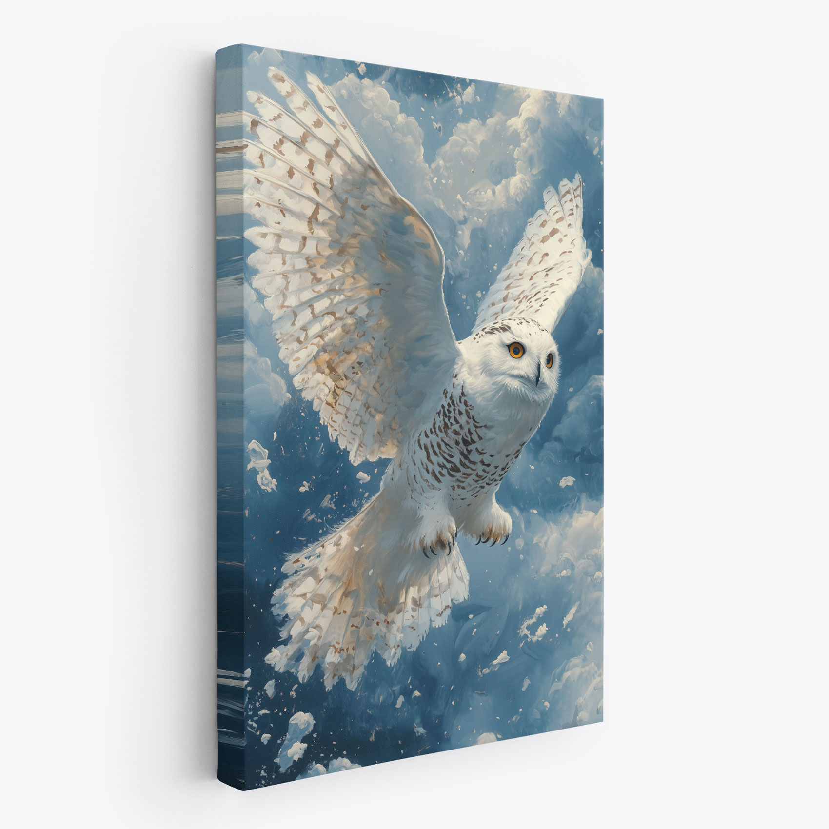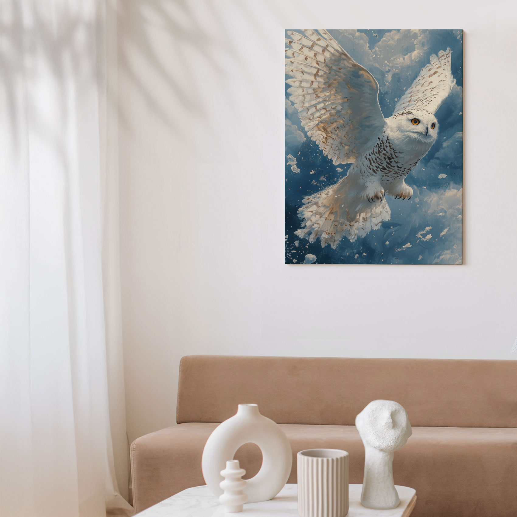 Terug naar collectie Canvas Majestueuze witte uilvlucht