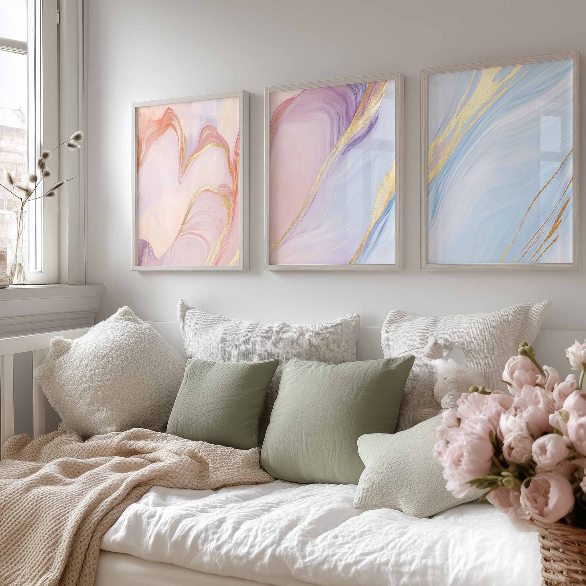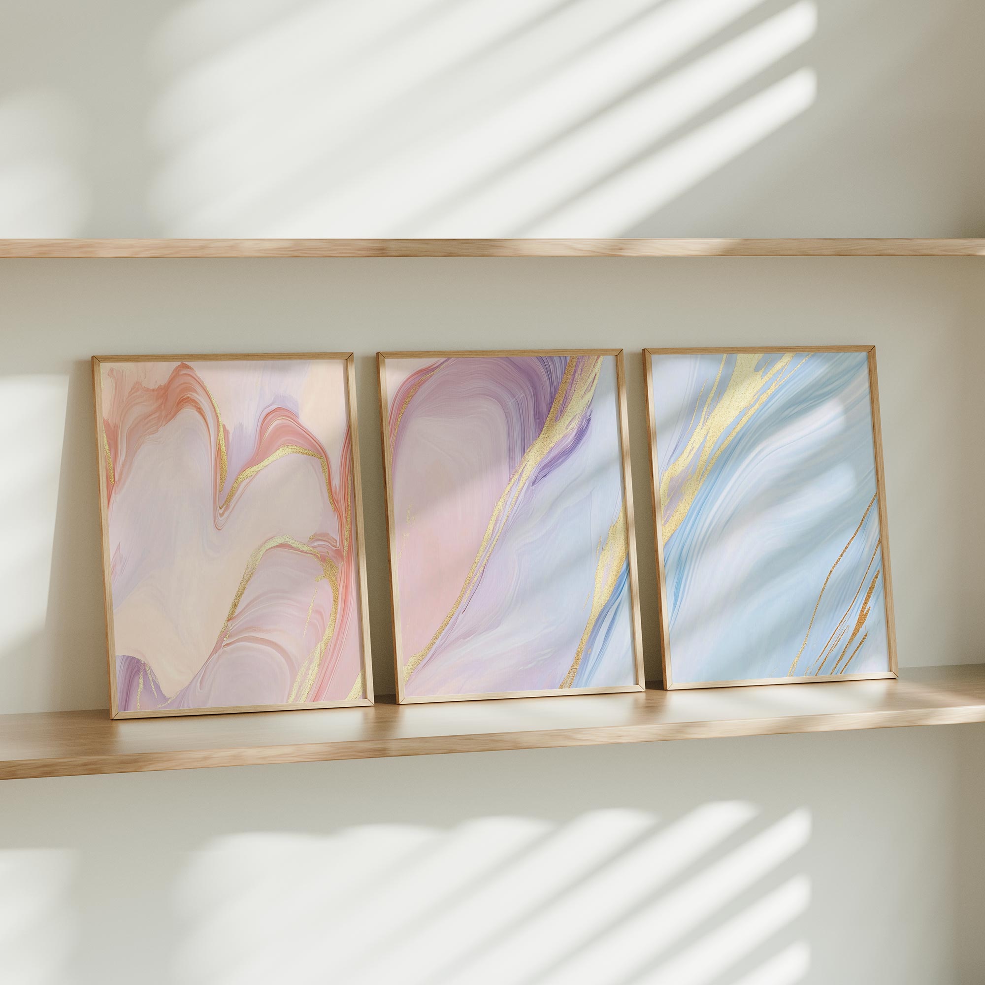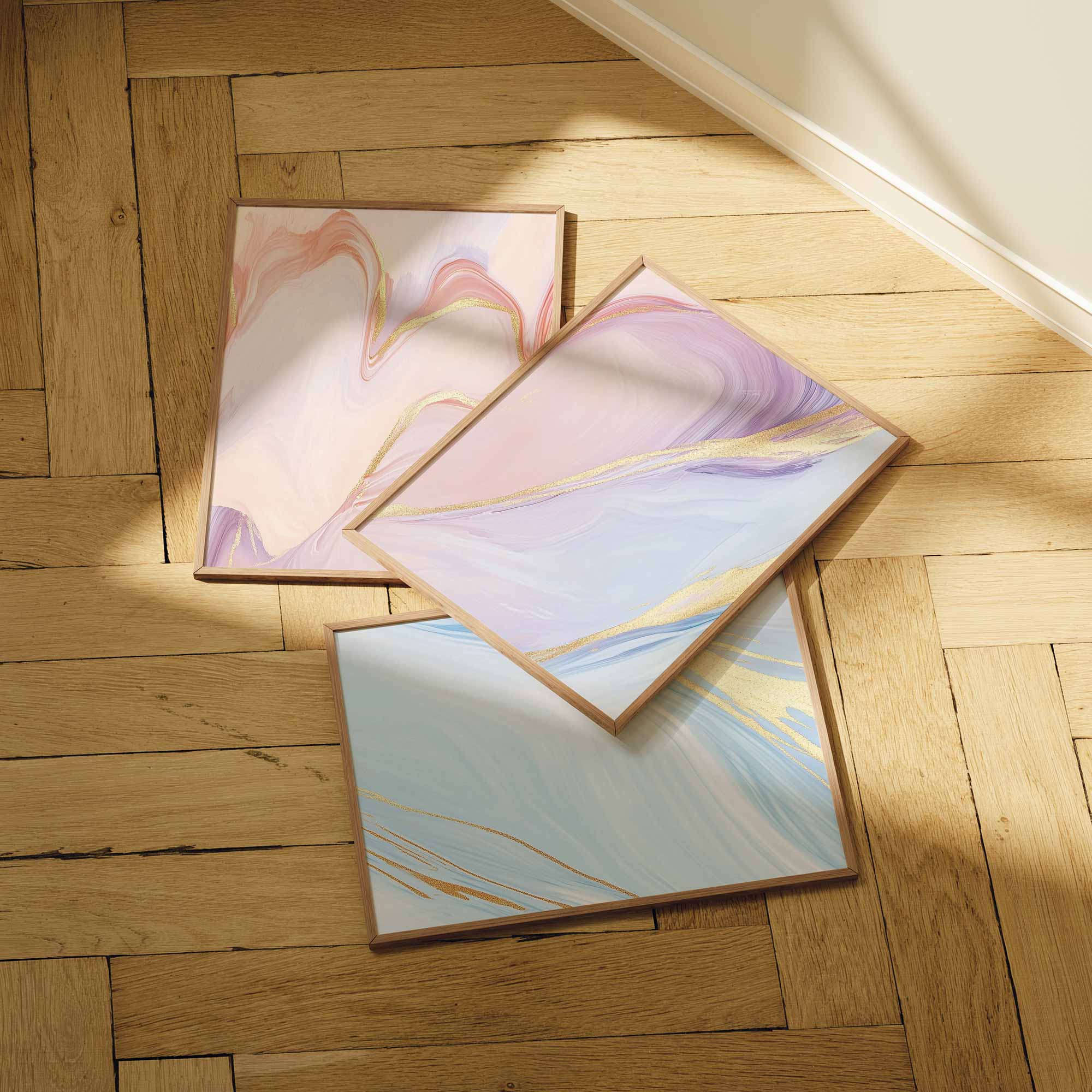 Marmeren Droom: Roze, Blauw & Goud Abstracte Elegantie