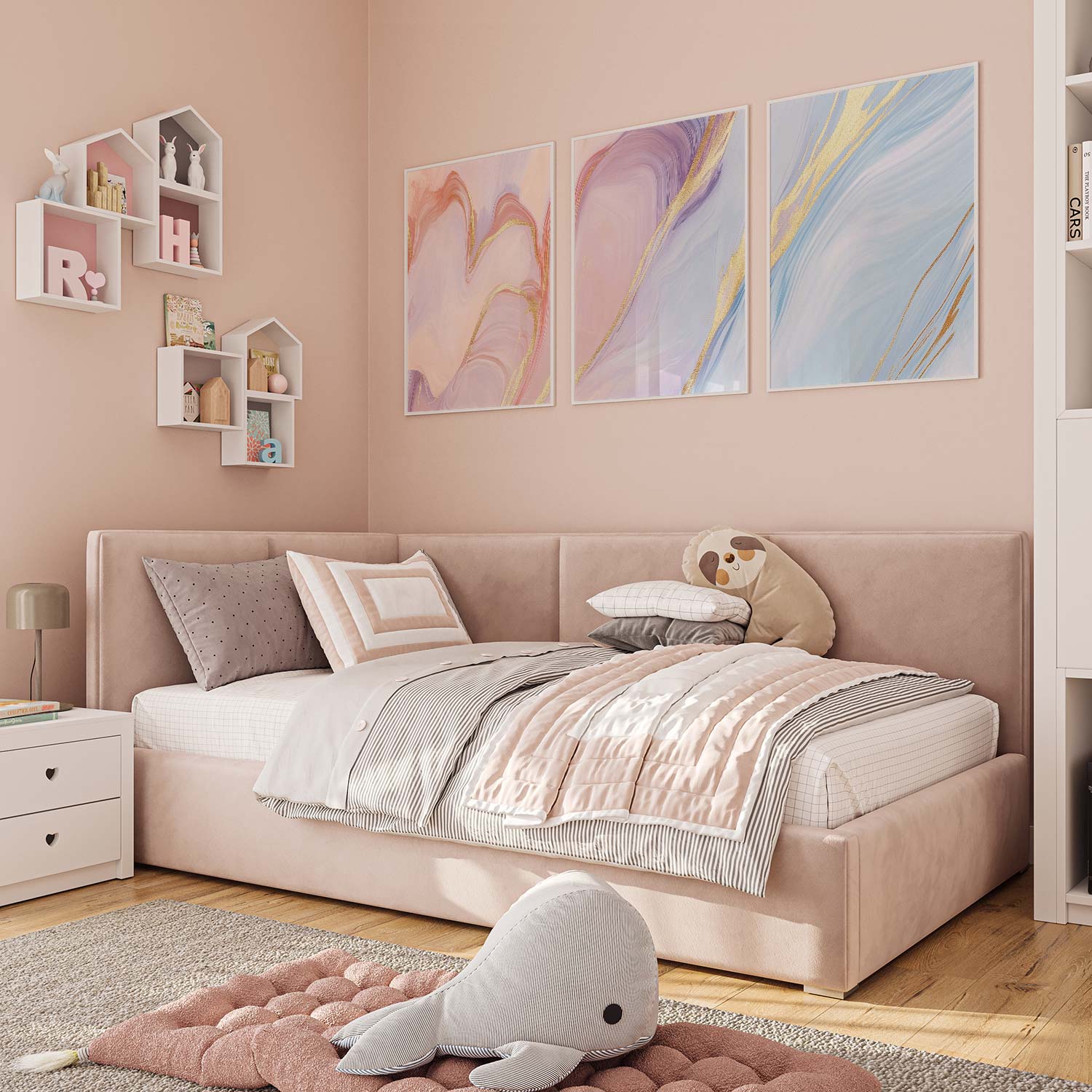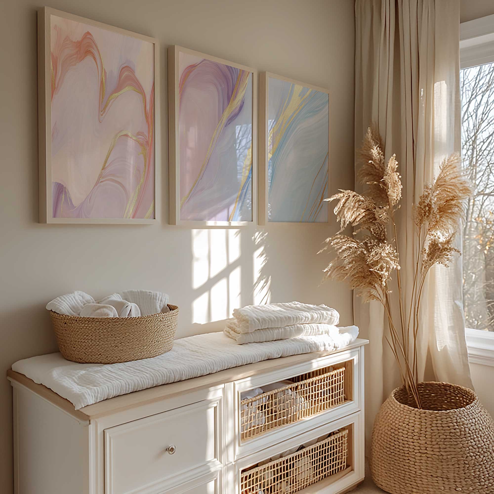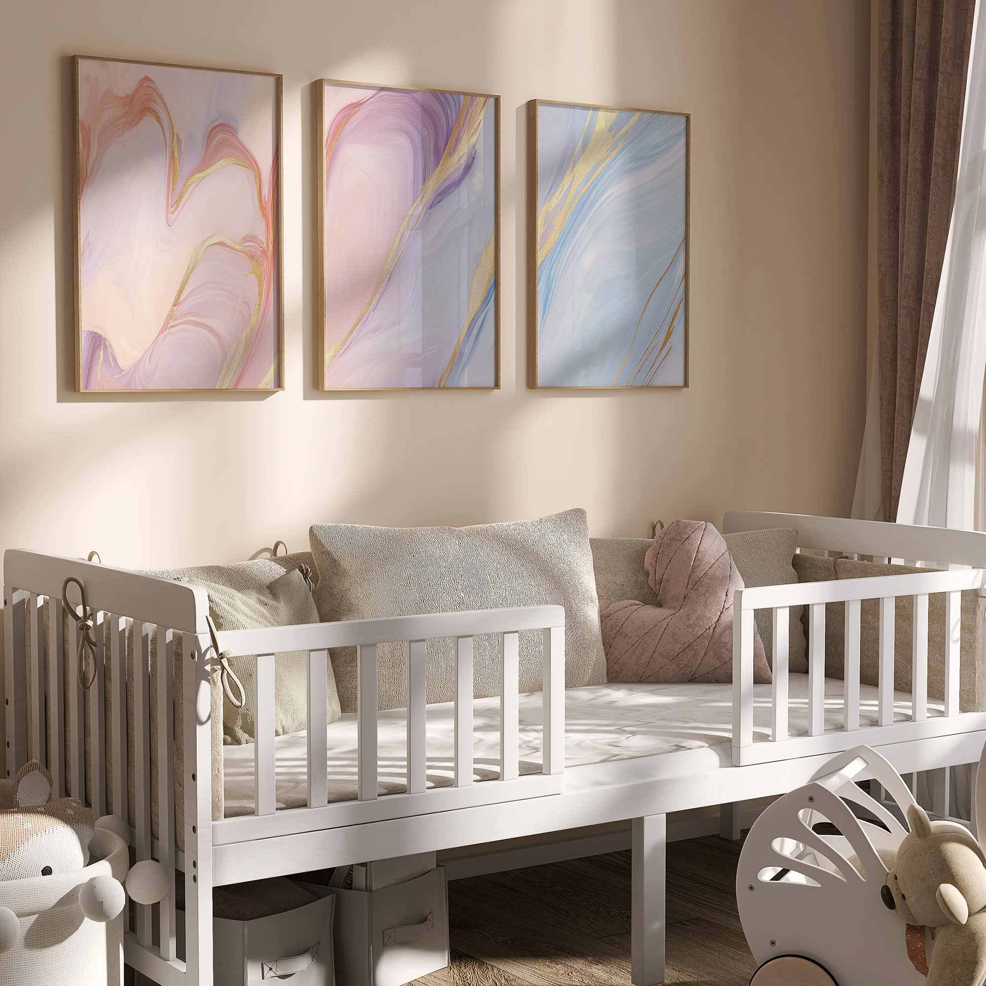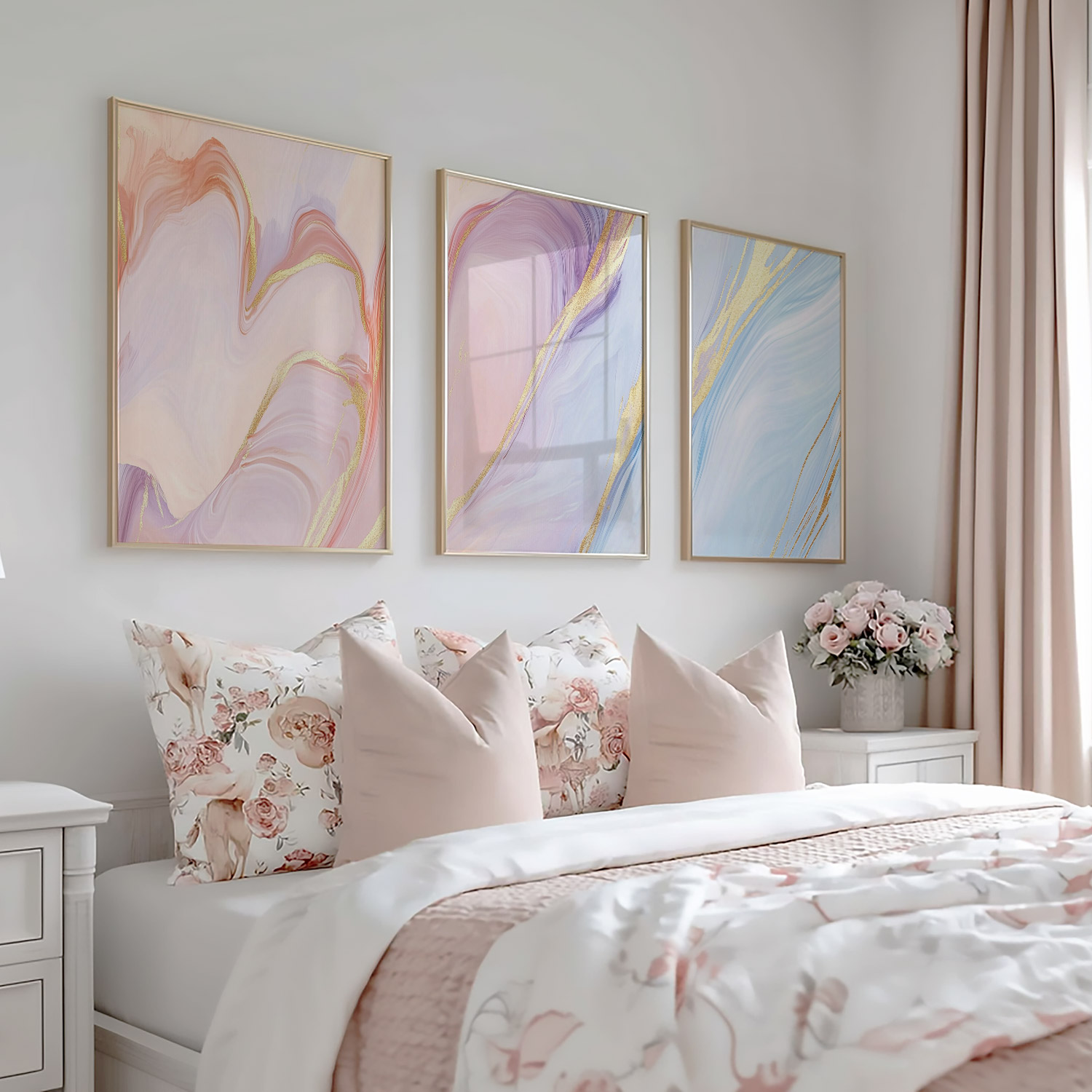 Marmeren Droom: Roze, Blauw & Goud Abstracte Elegantie