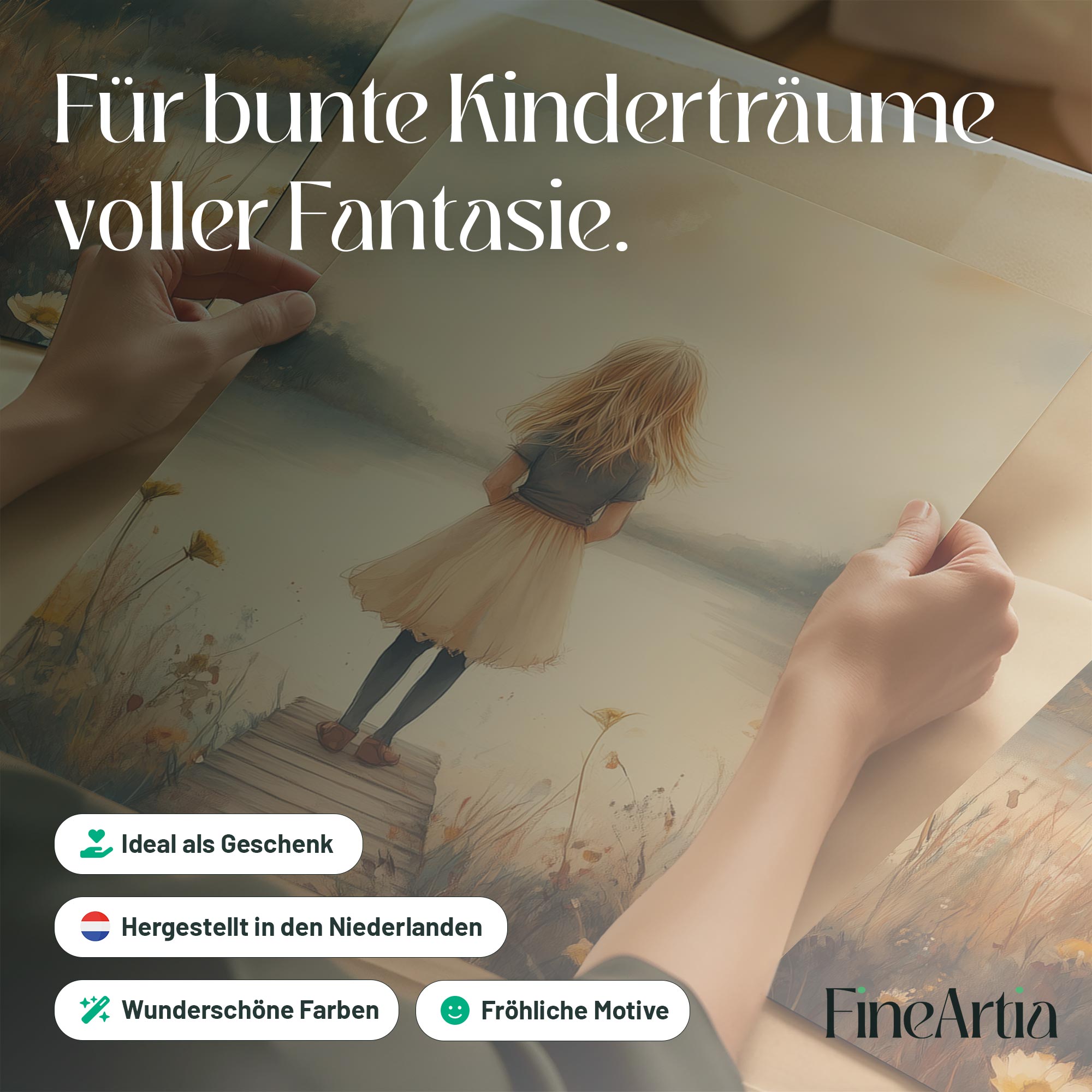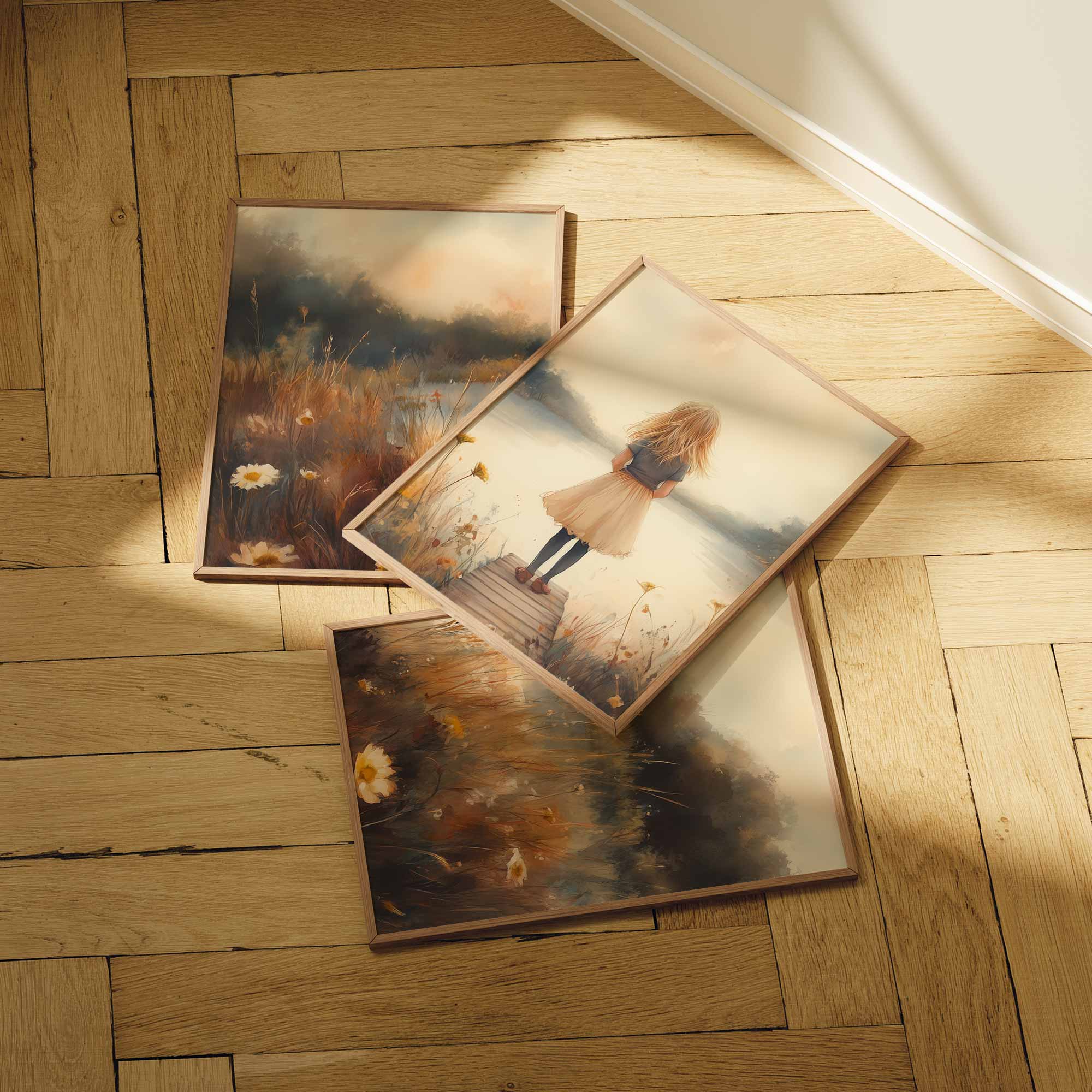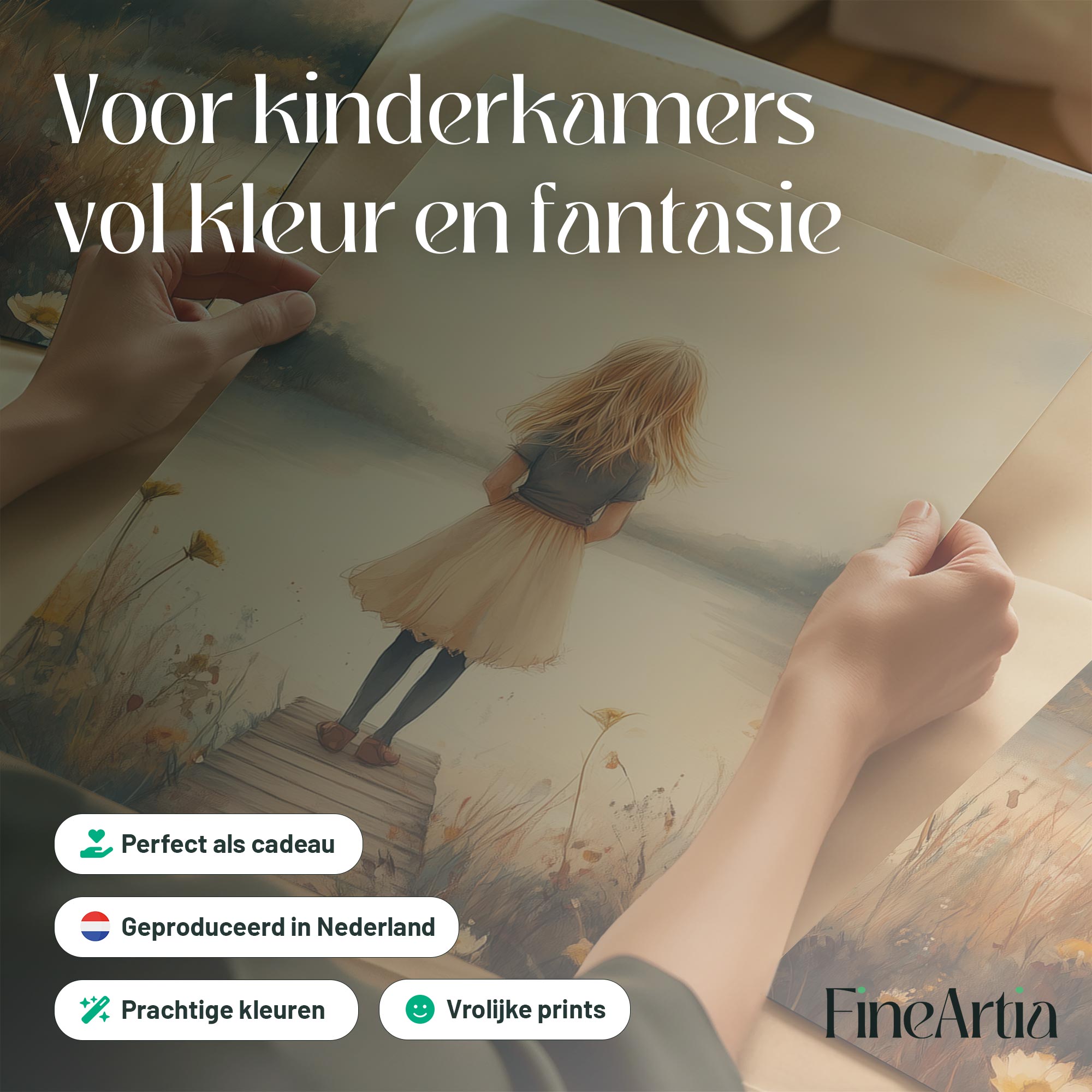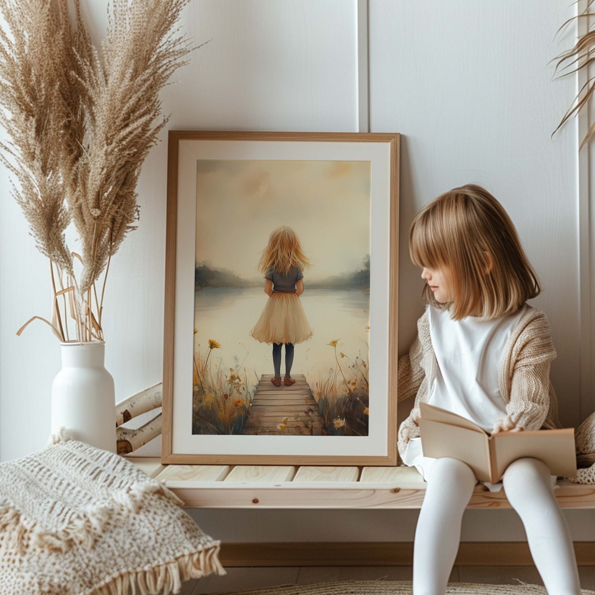 Terug naar collectie Posters Meisje aan het water – Pastel bloemenpier