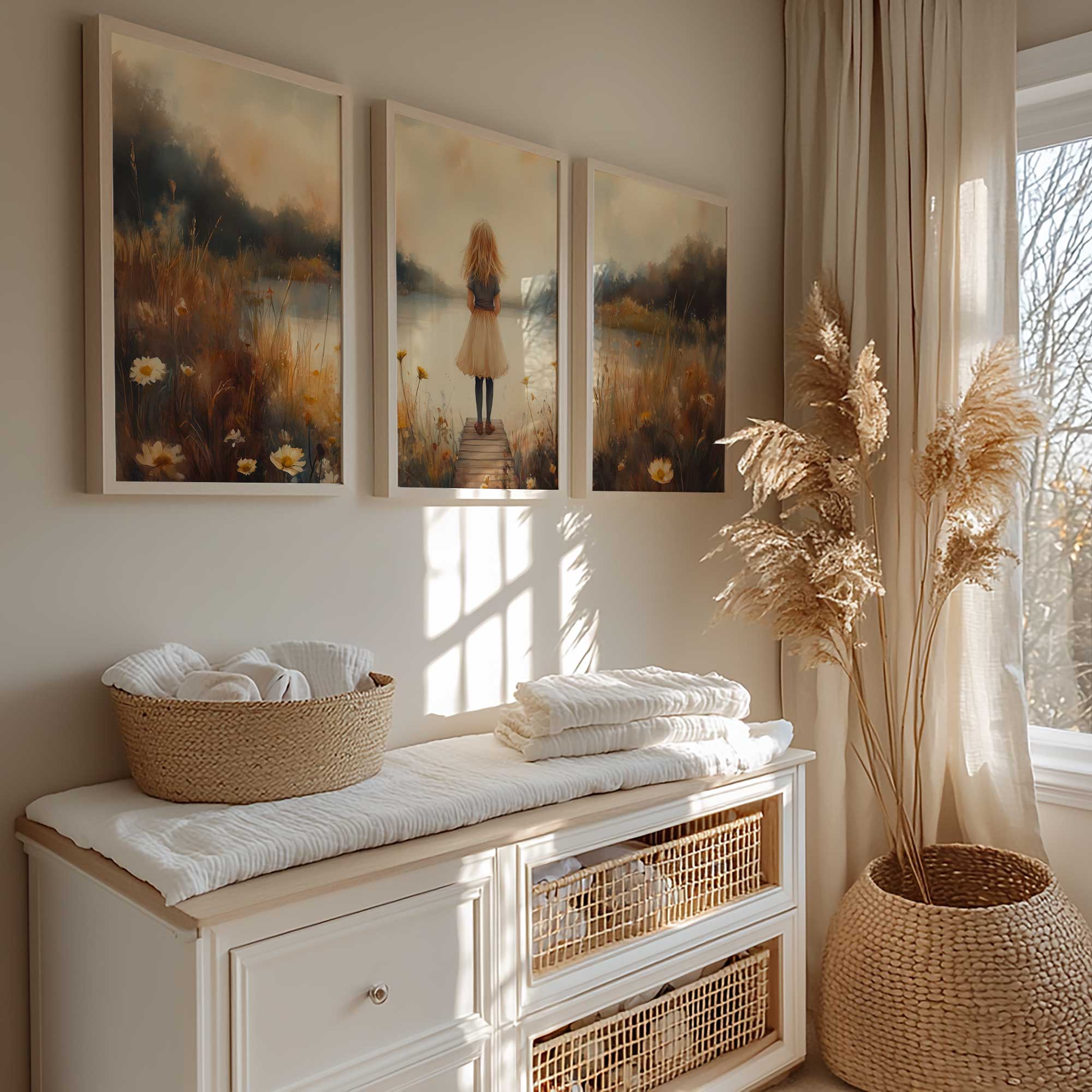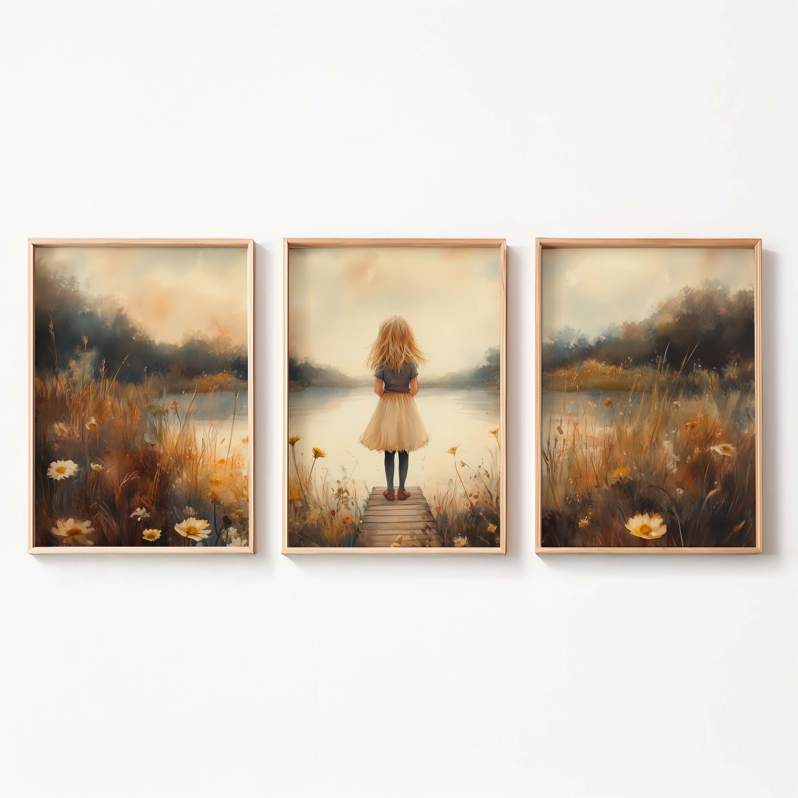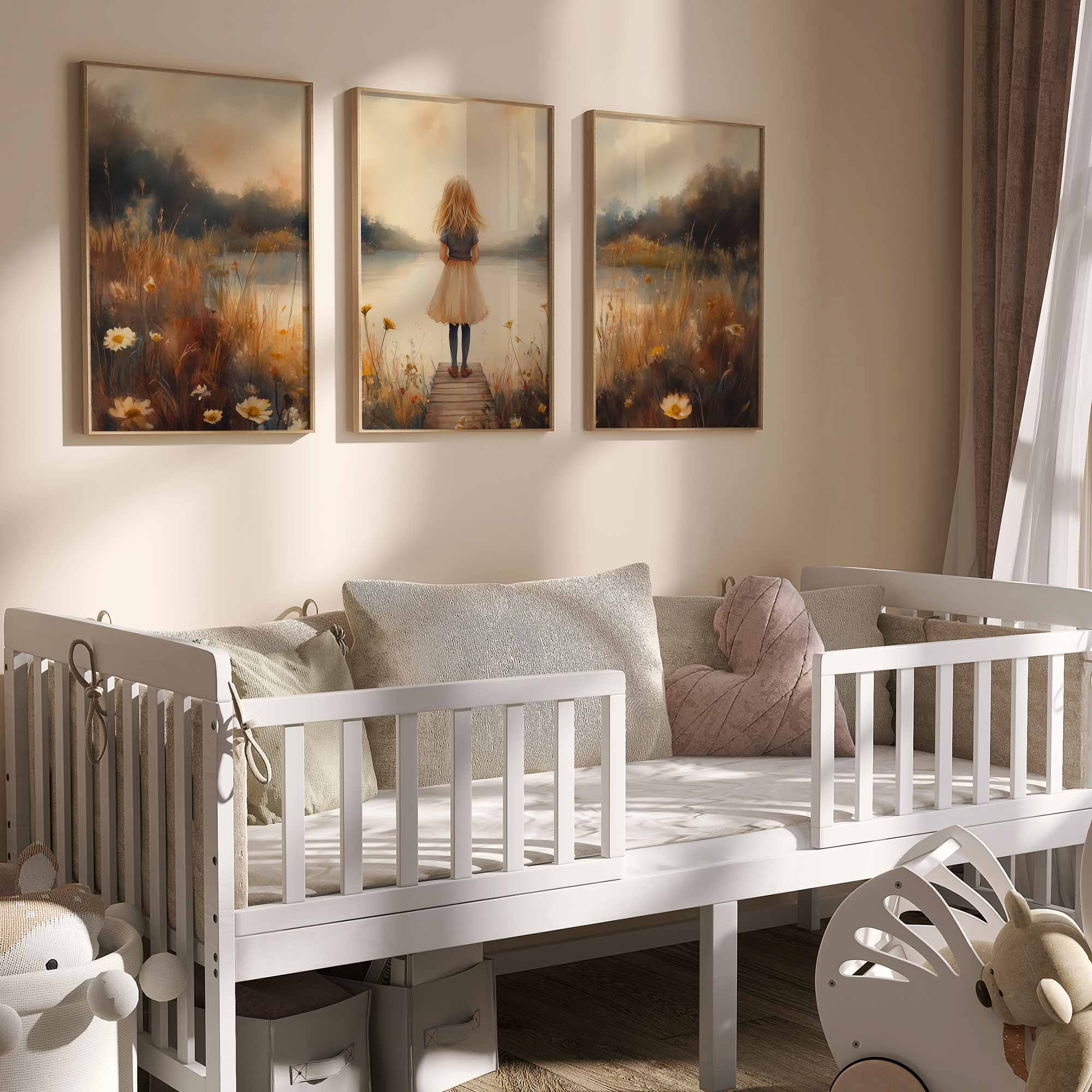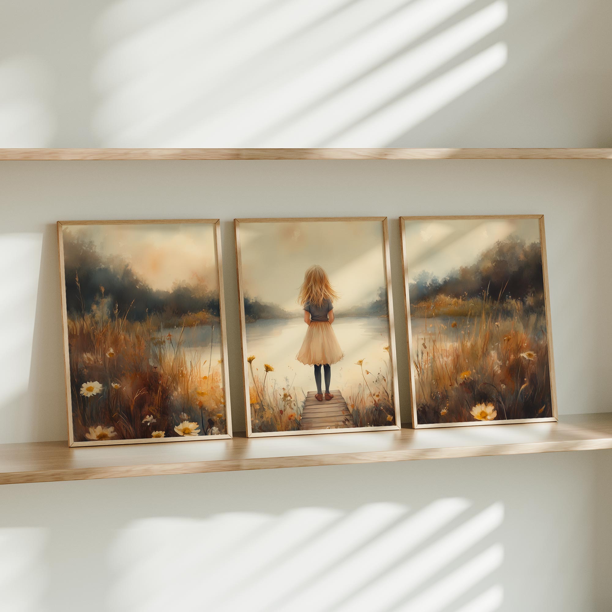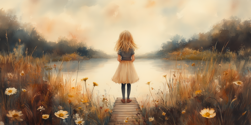 Terug naar collectie Posters Meisje aan het water – Pastel bloemenpier