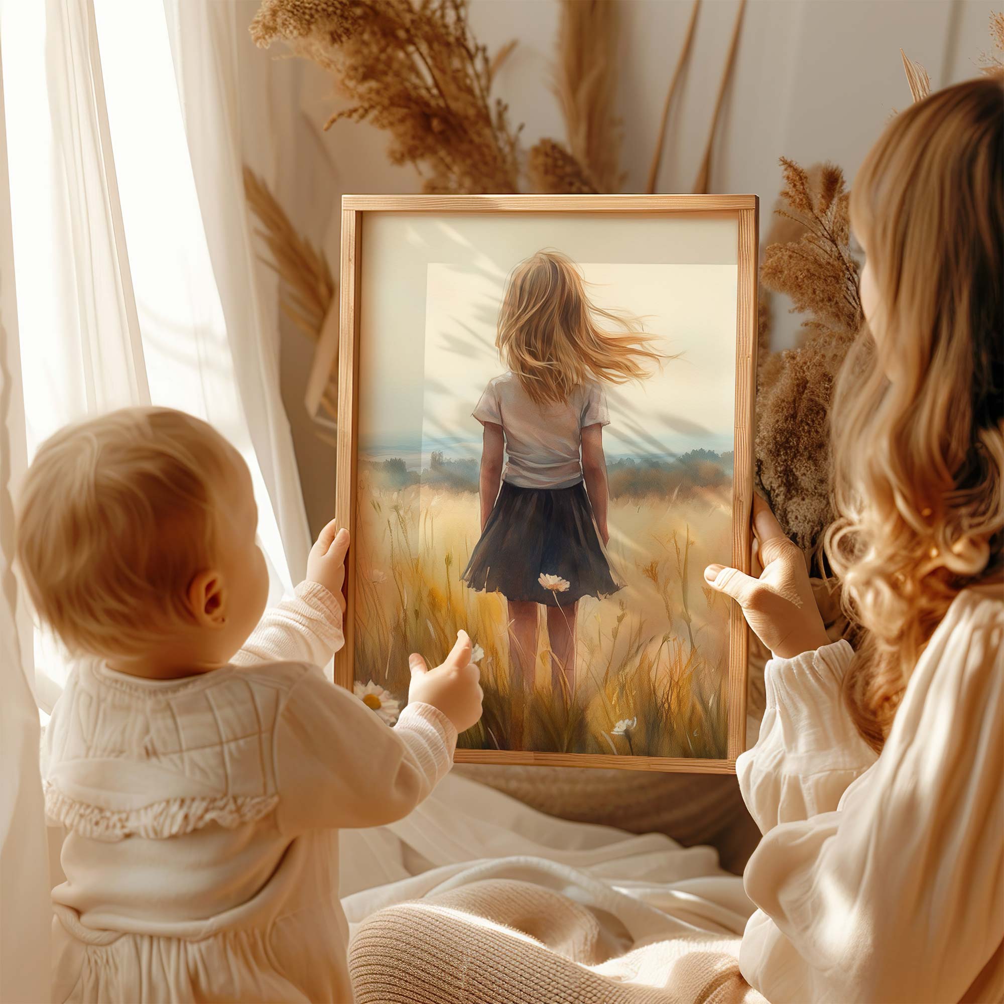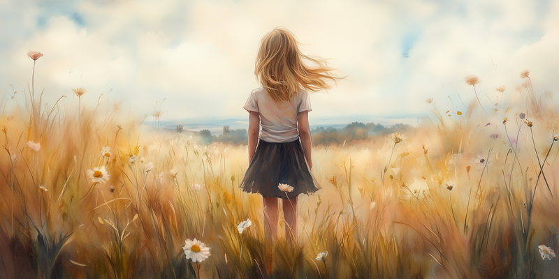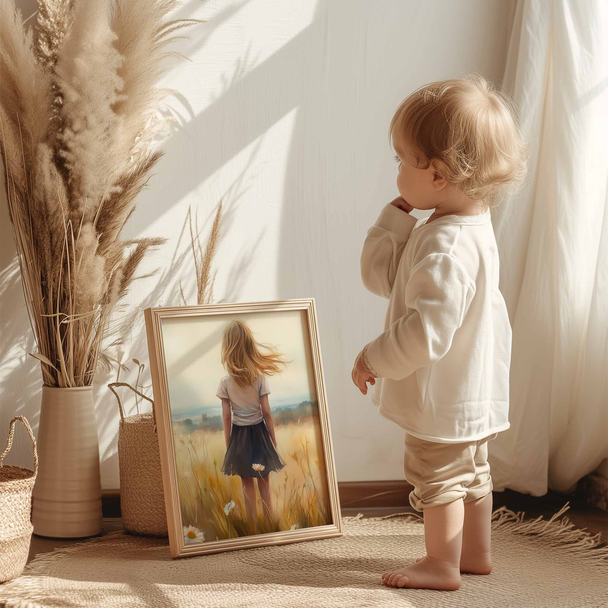 Meisje in Bloemenveld – Dromerige Kindertijd