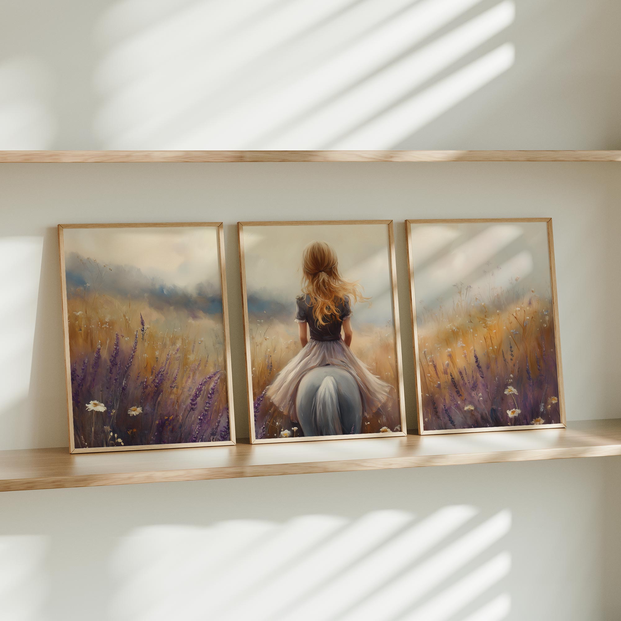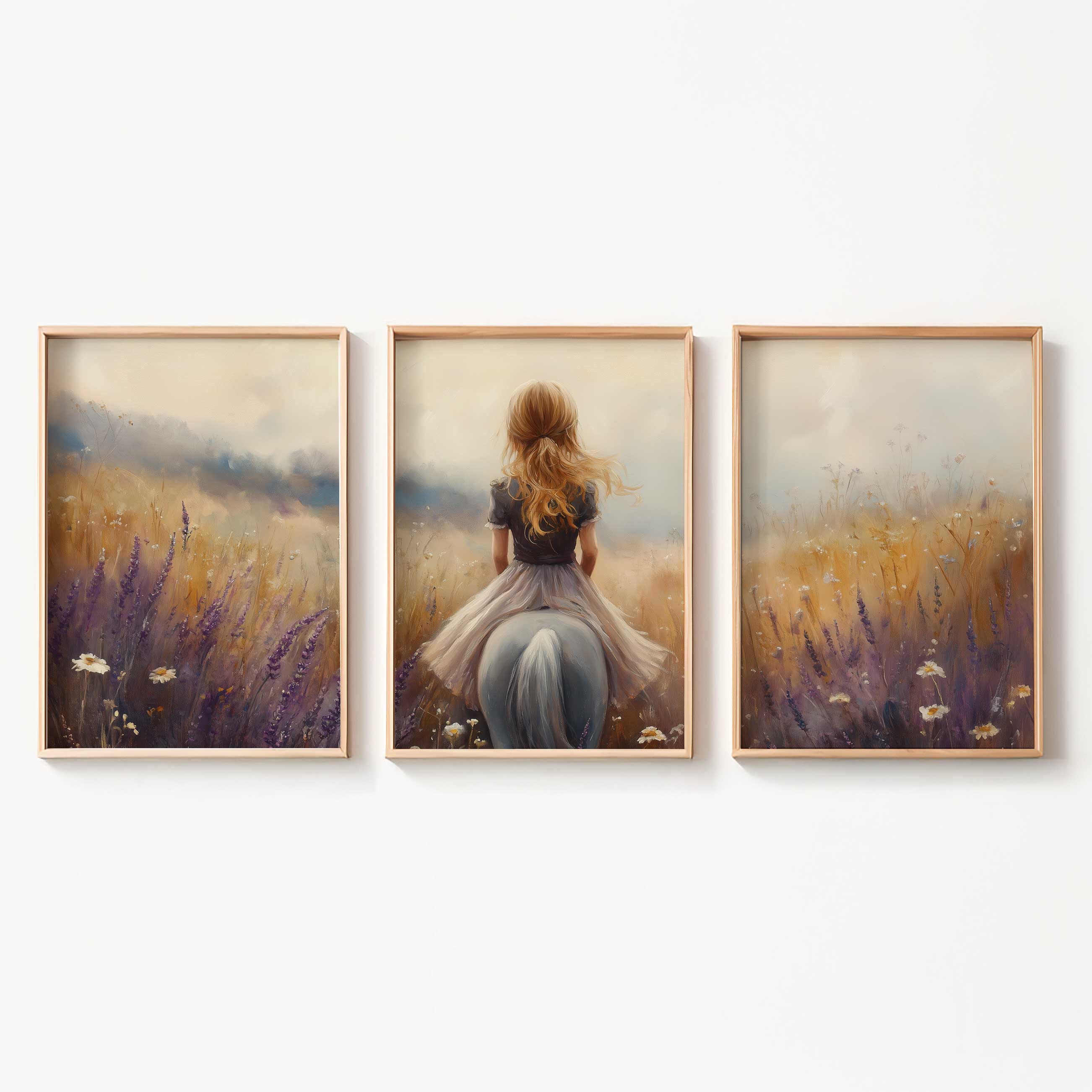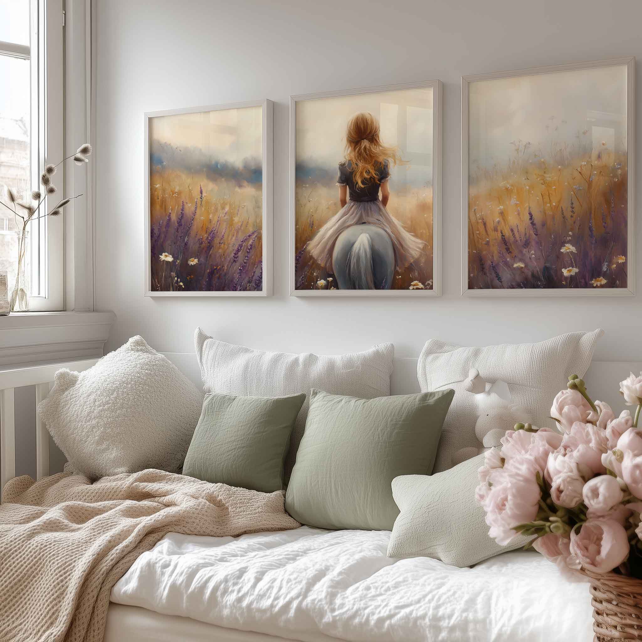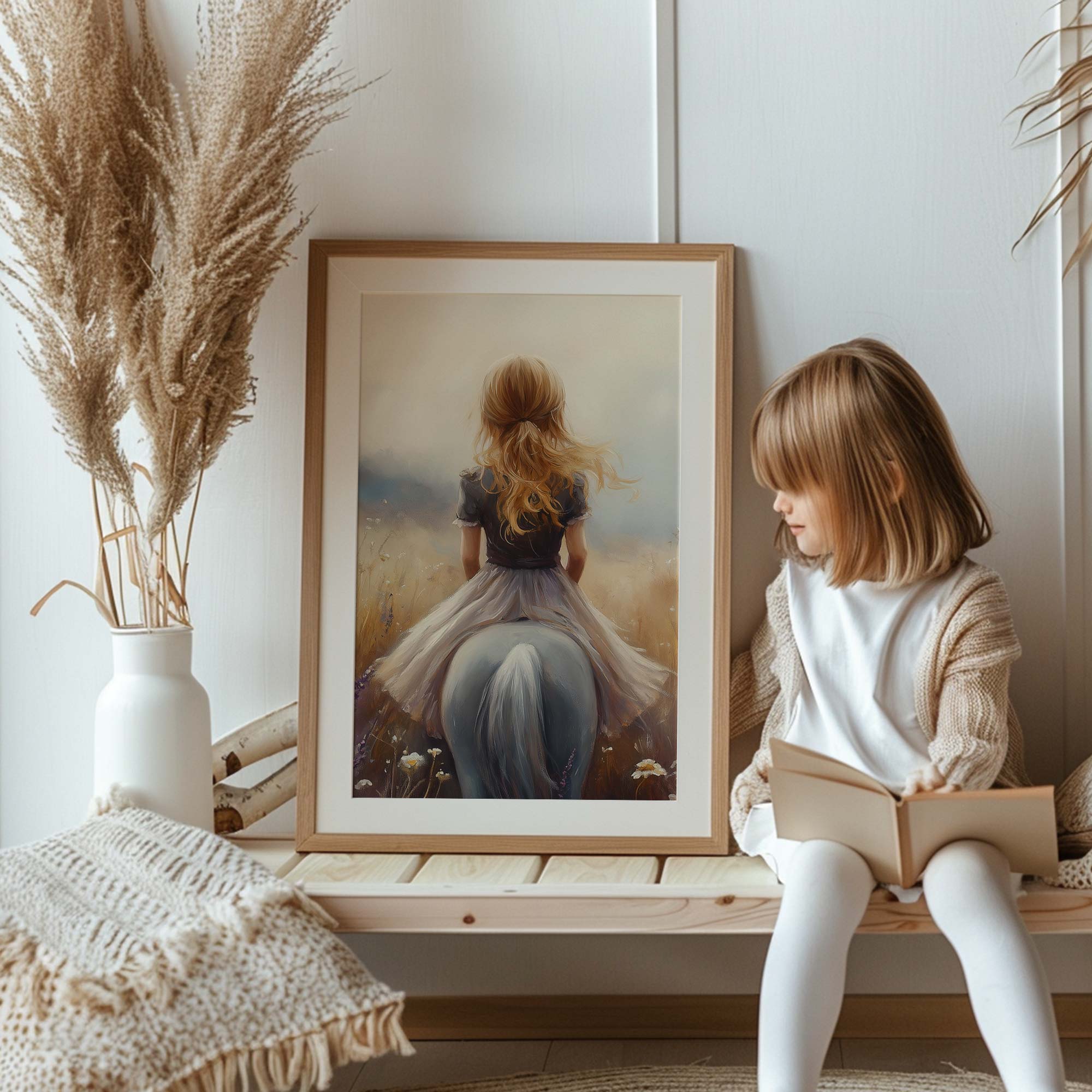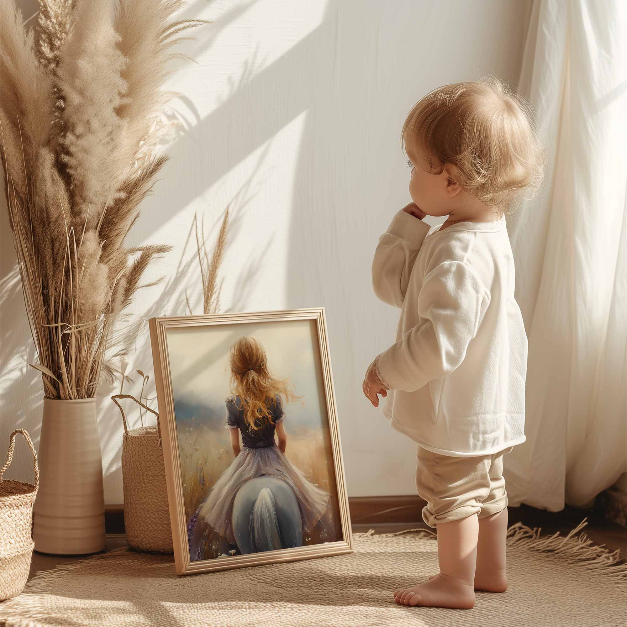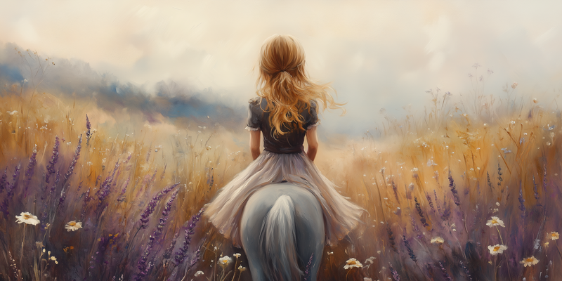 Terug naar collectie Posters Meisje op Paard in Bloemenveld – Dromerig Sprookje
