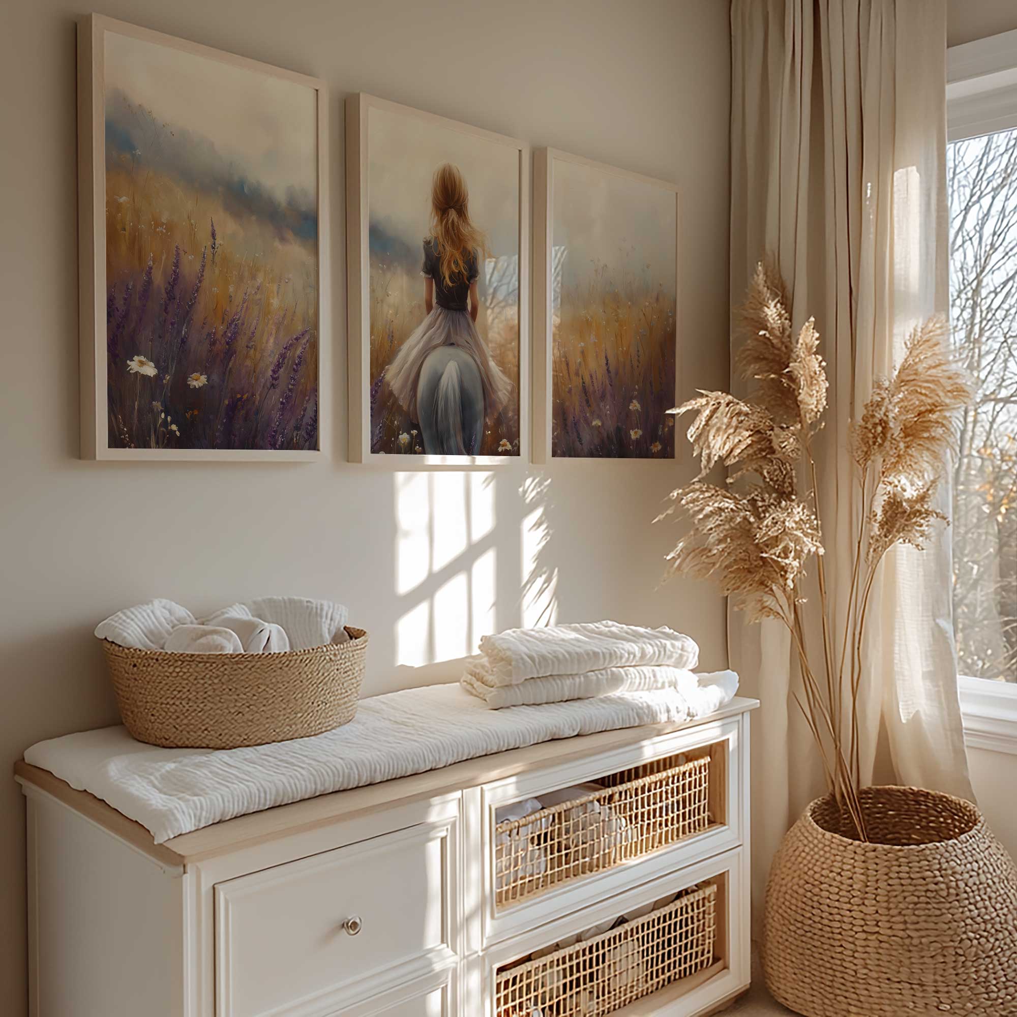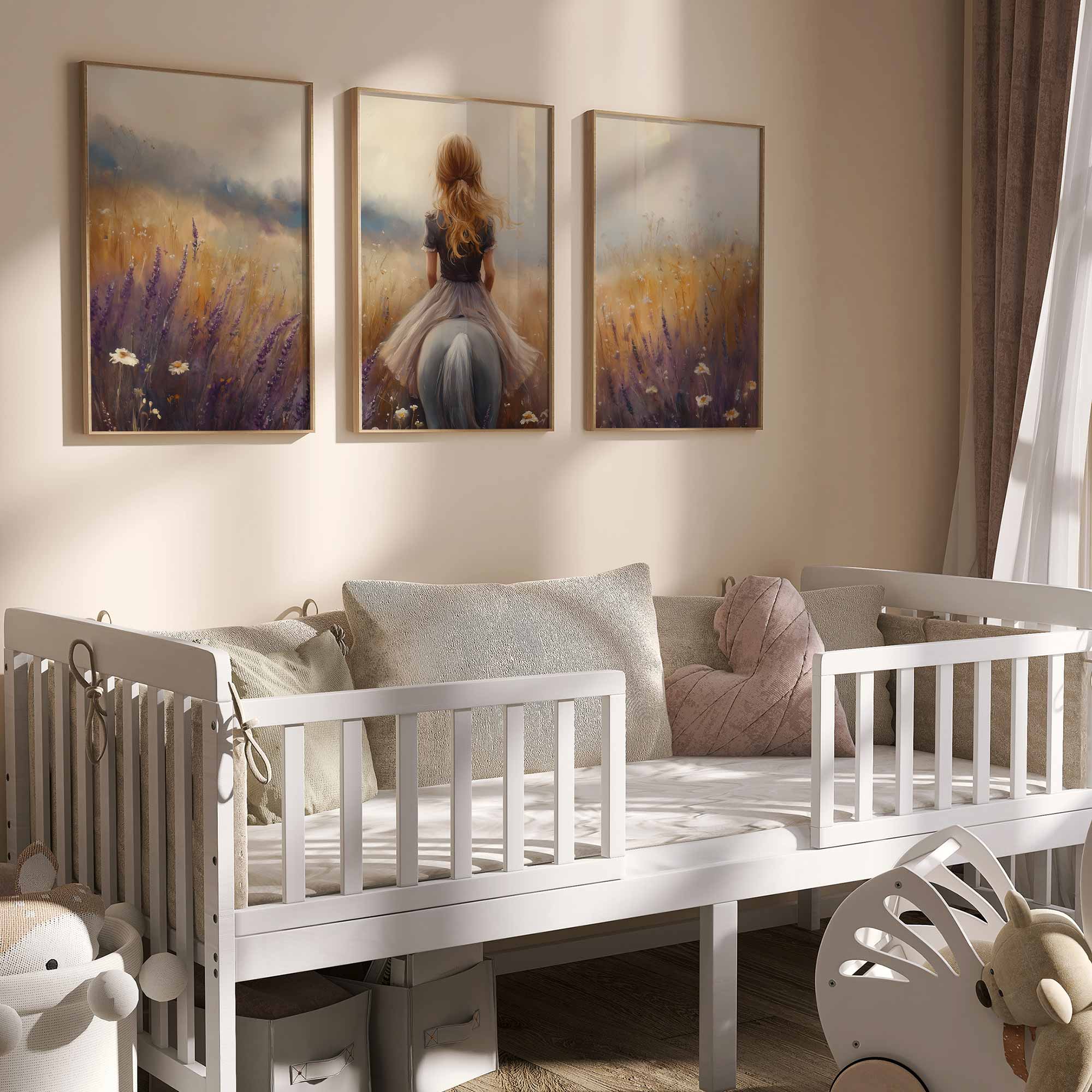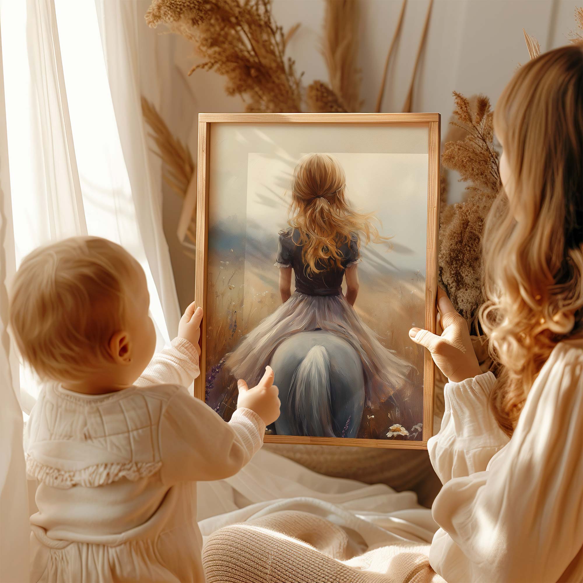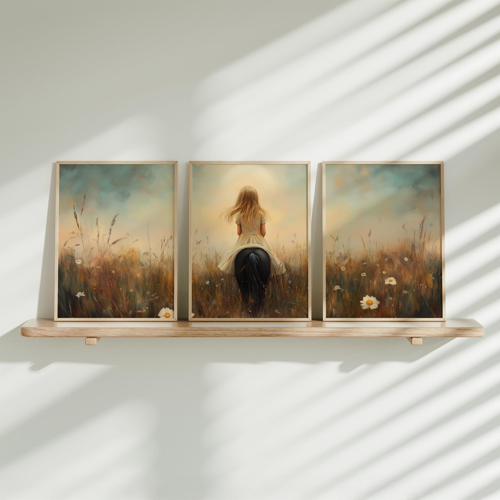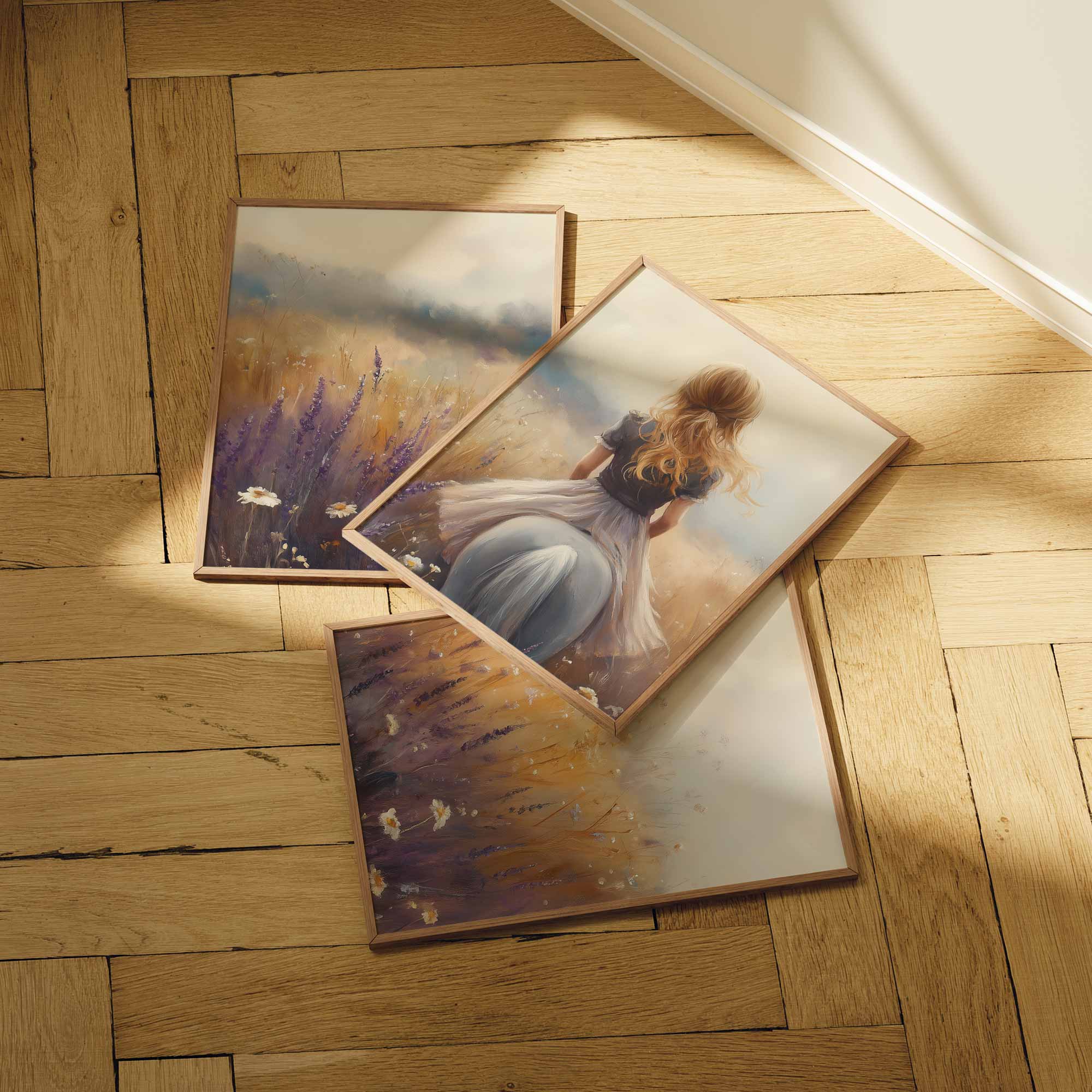 Terug naar collectie Posters Meisje op Paard in Bloemenveld – Dromerig Sprookje