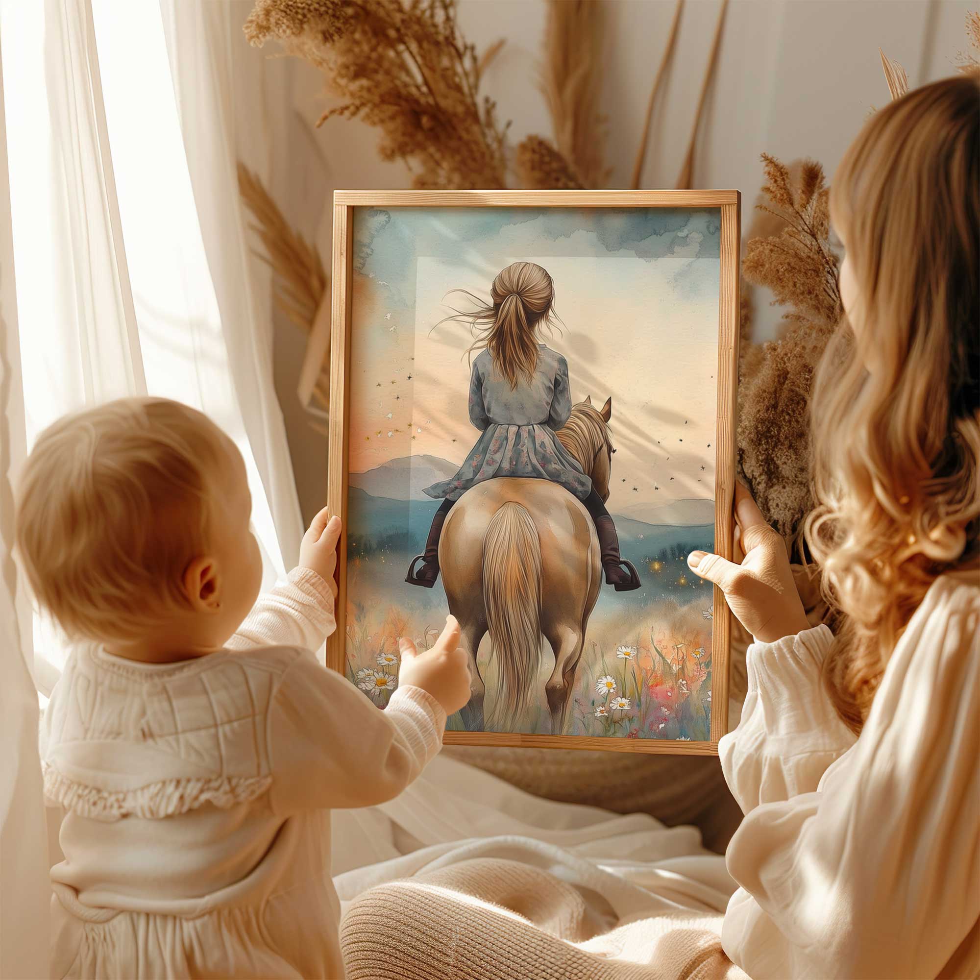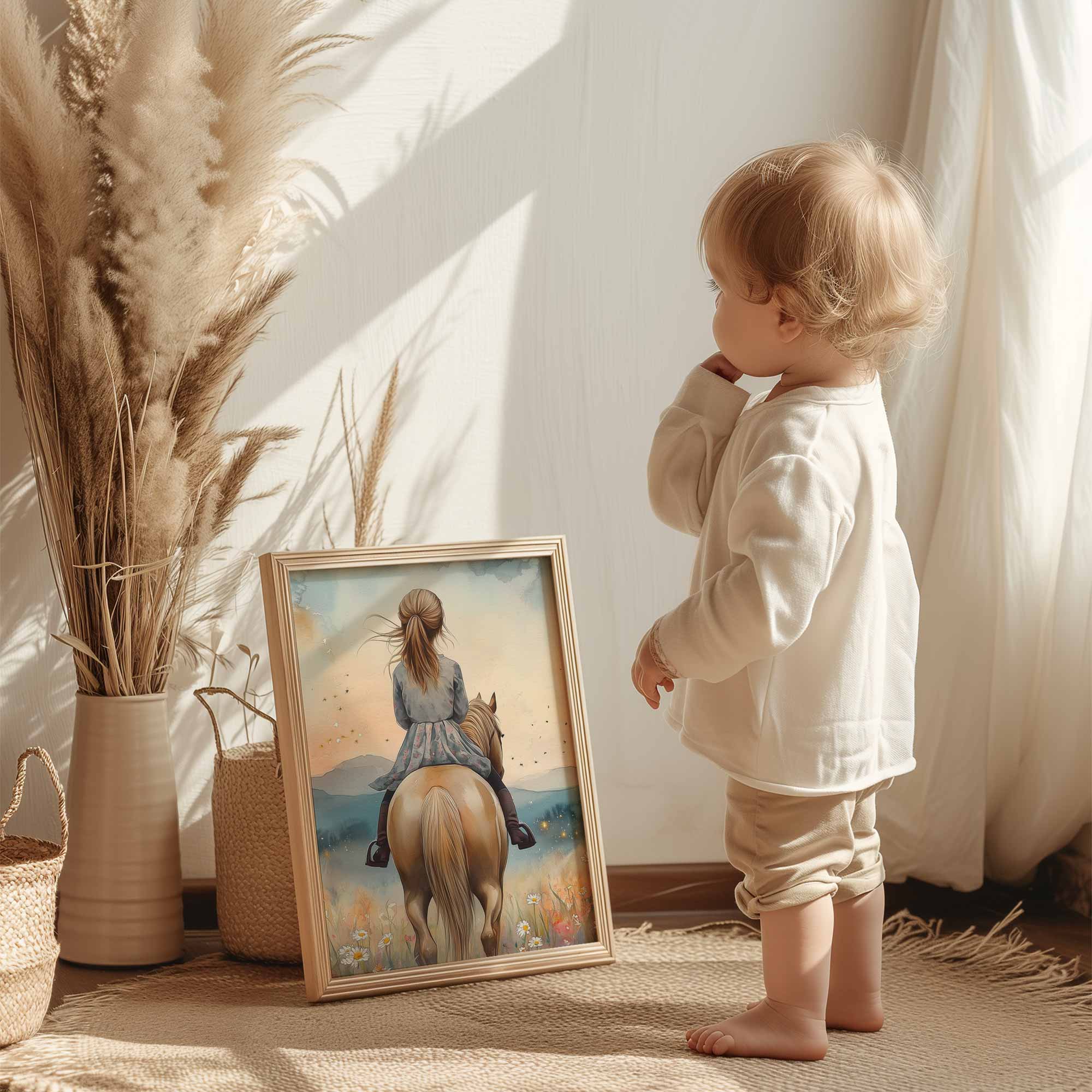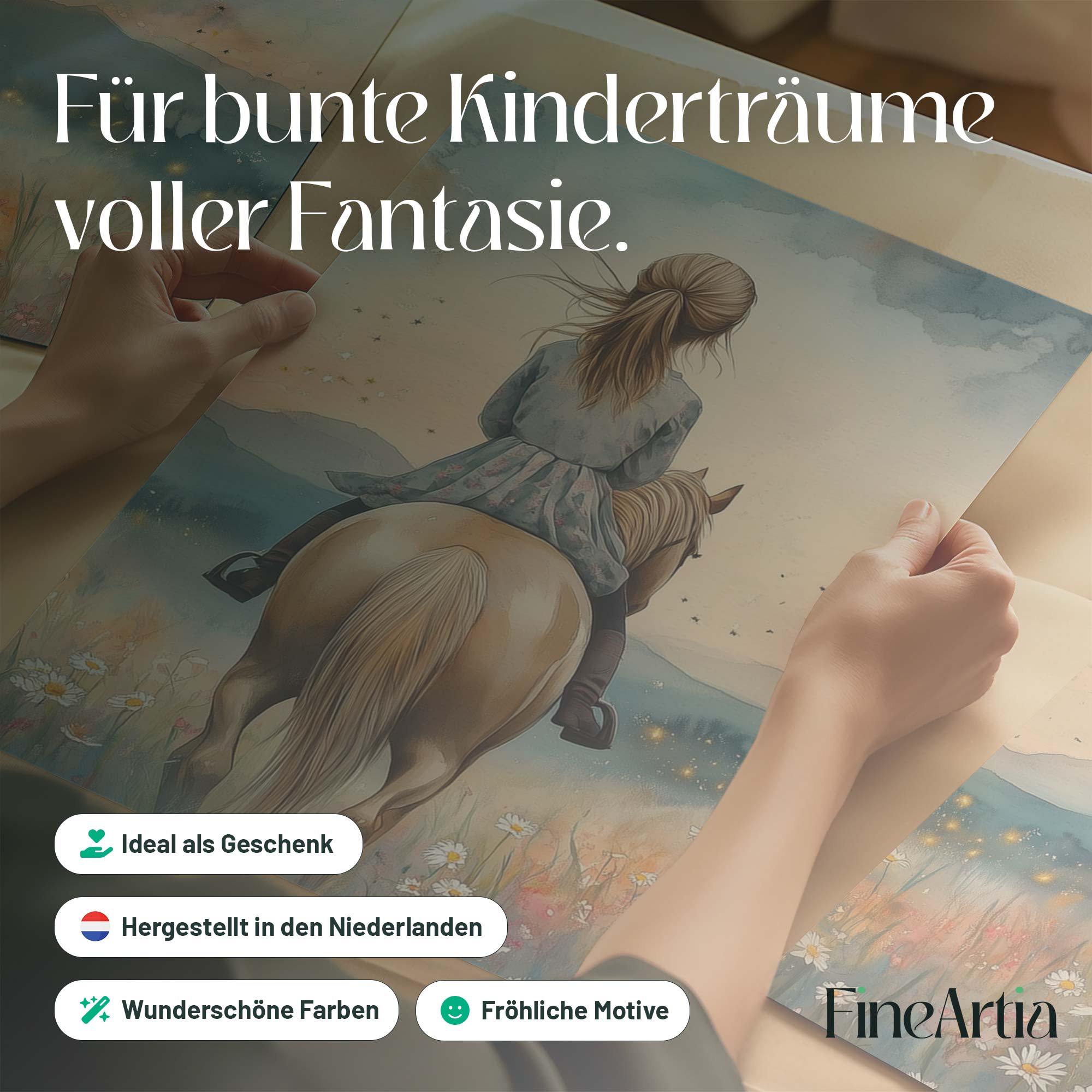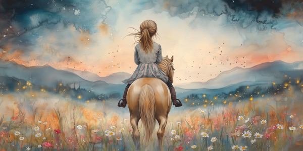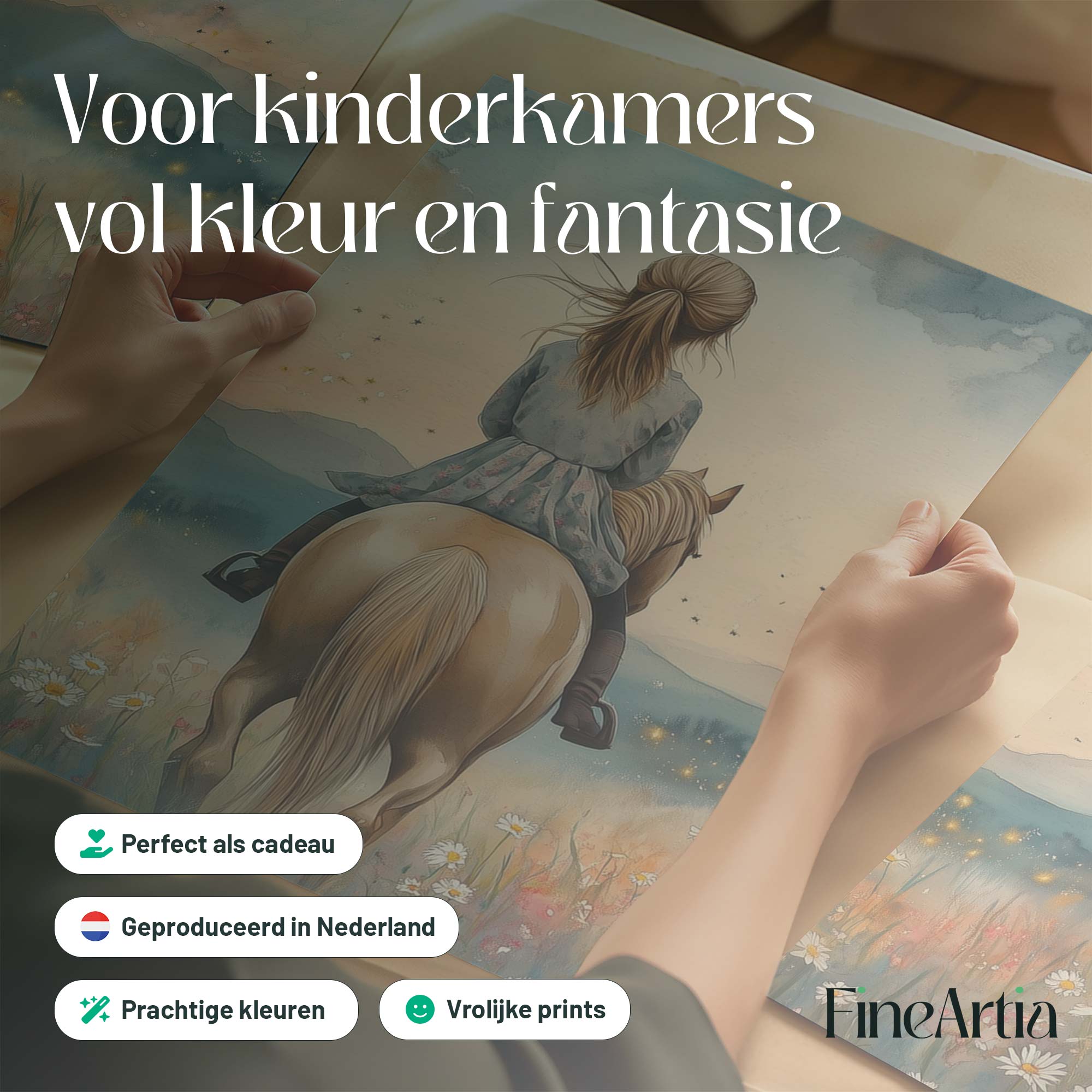 Meisje op Paard in Bloemenveld – Droomlandschap