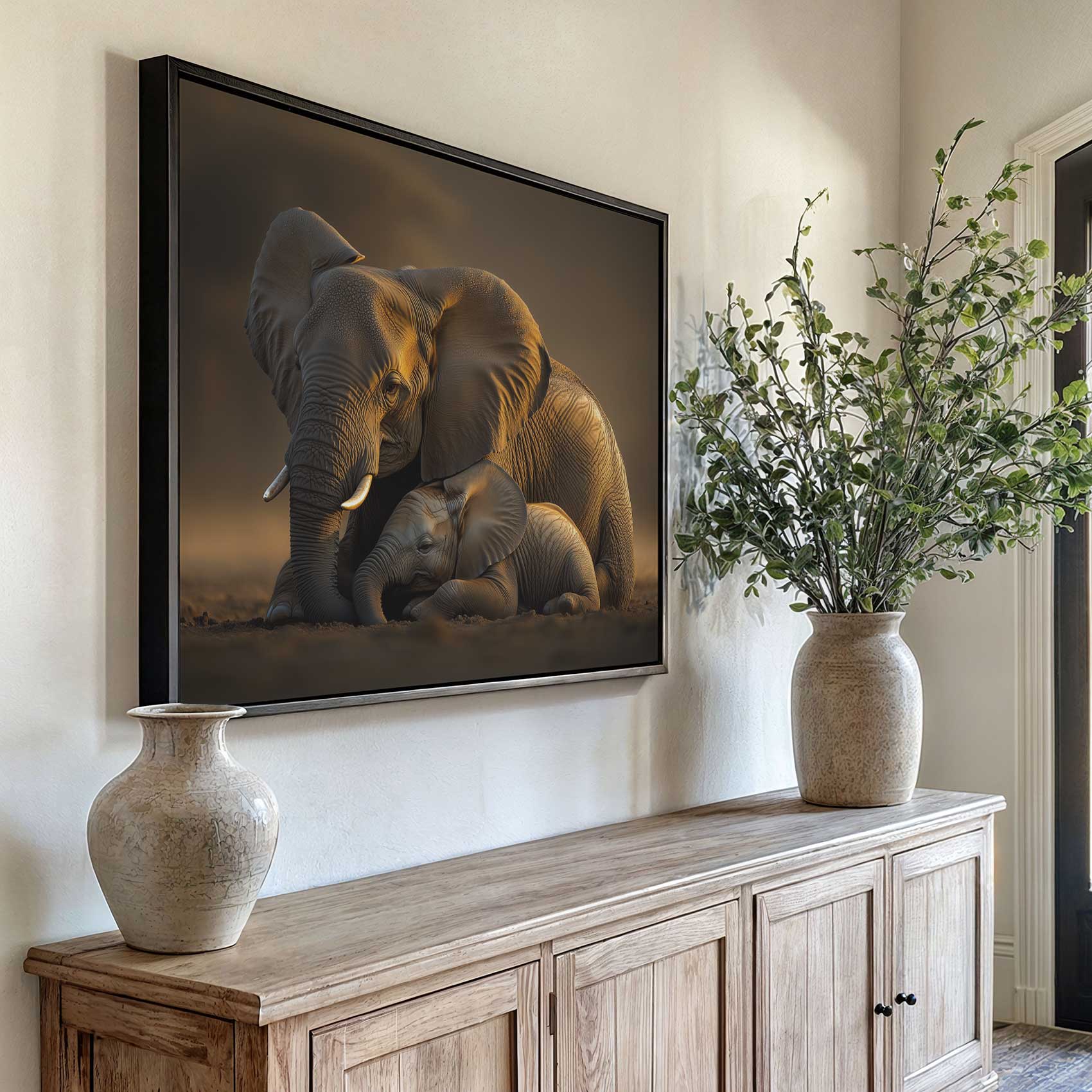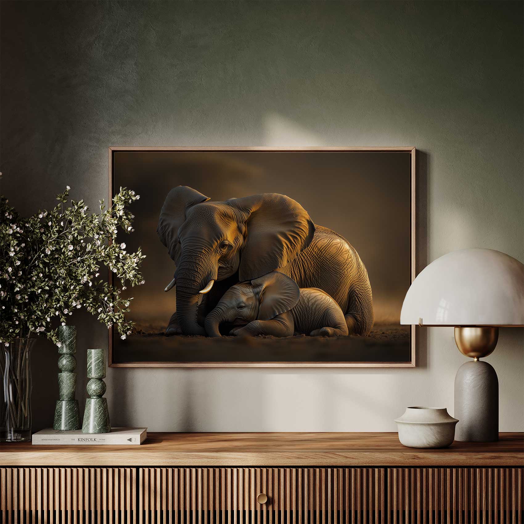 Moeder en baby olifant moment